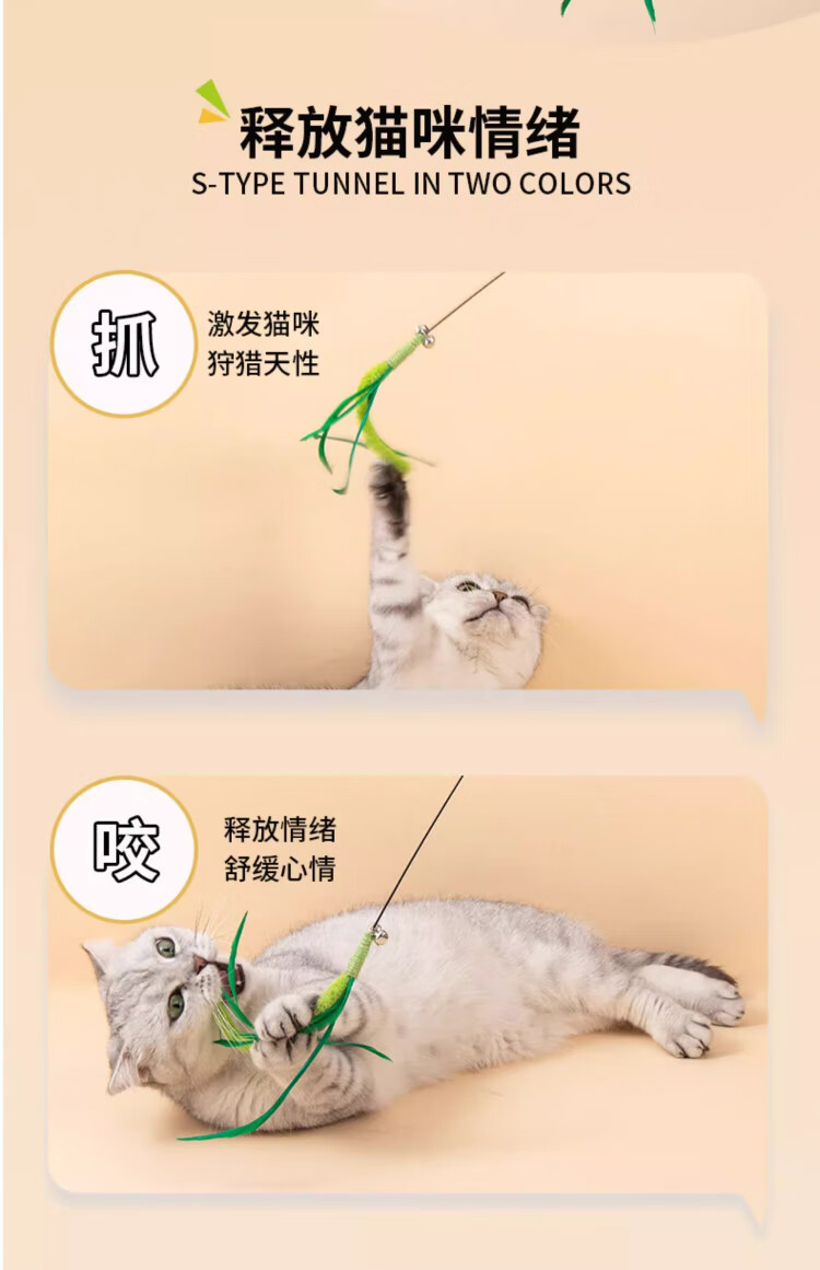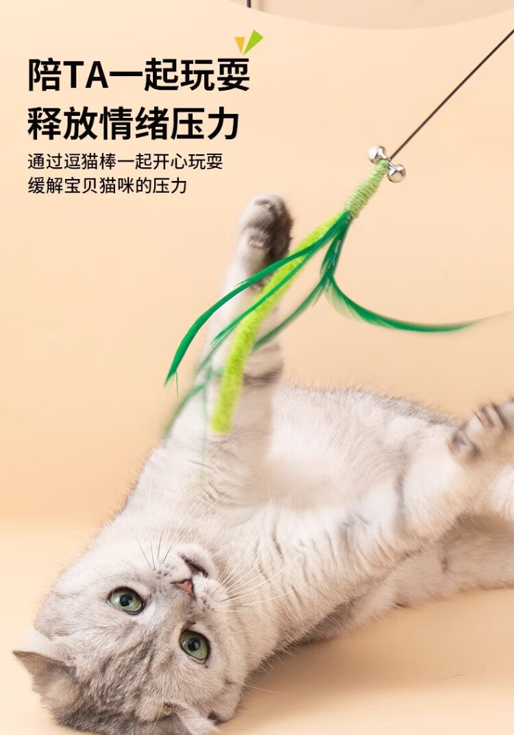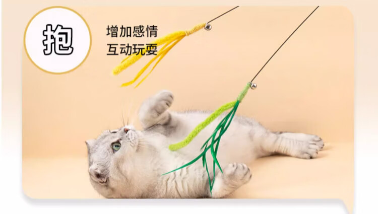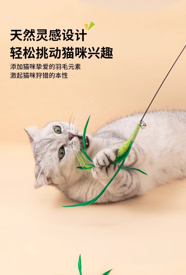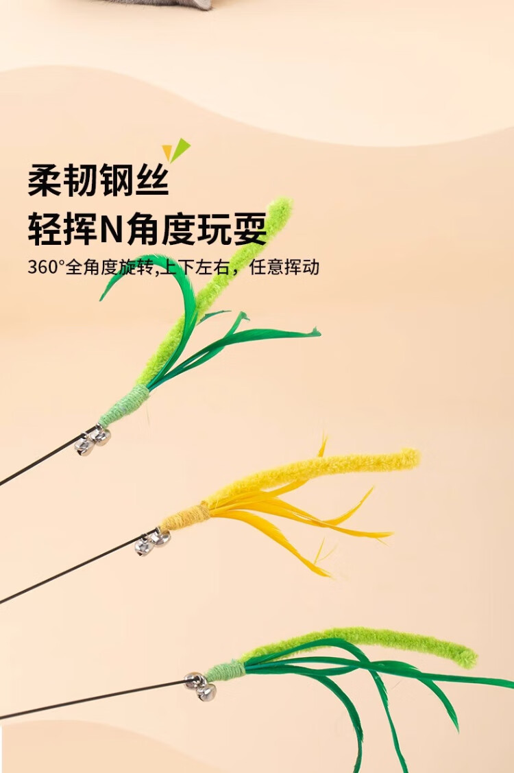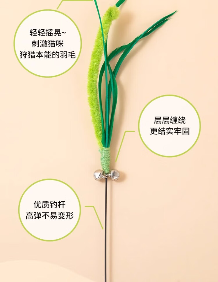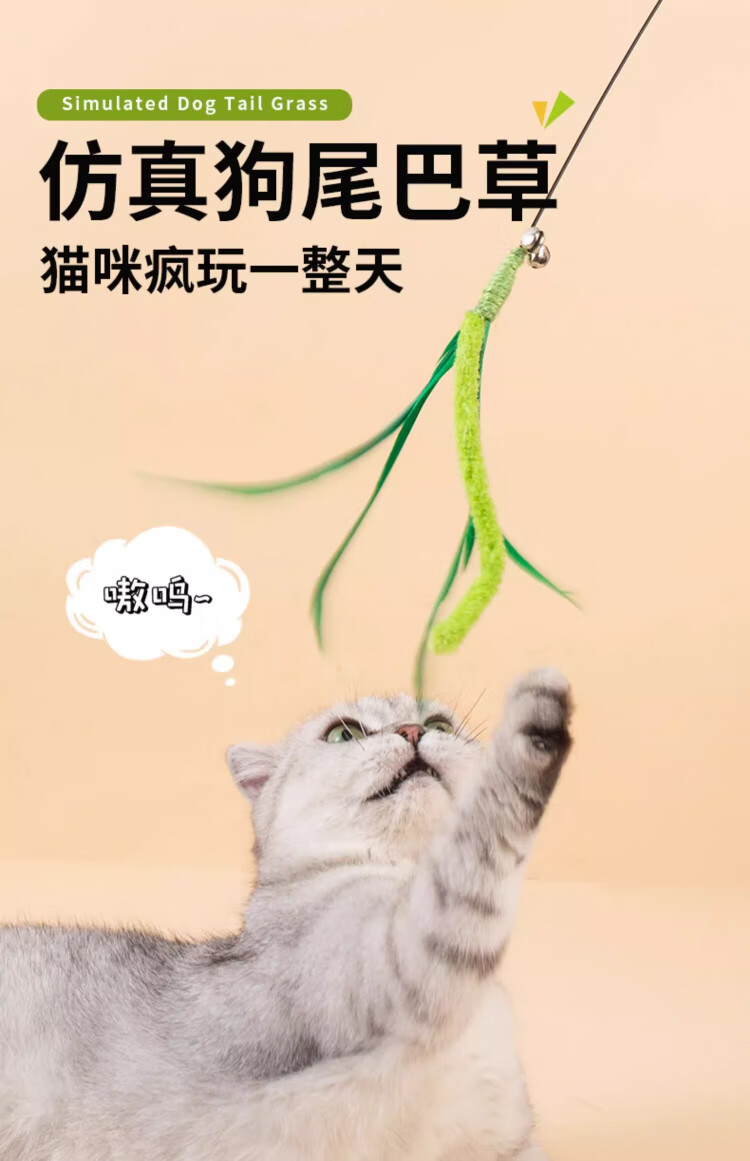 Dog tail grass cat teasing stick, long pole, bite-resistant cat toy, self-stimulating and relieving boredom, handheld cat toy, kitten teasing tool, upgraded bell style - longer and thicker, one pack, green