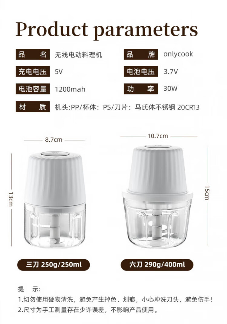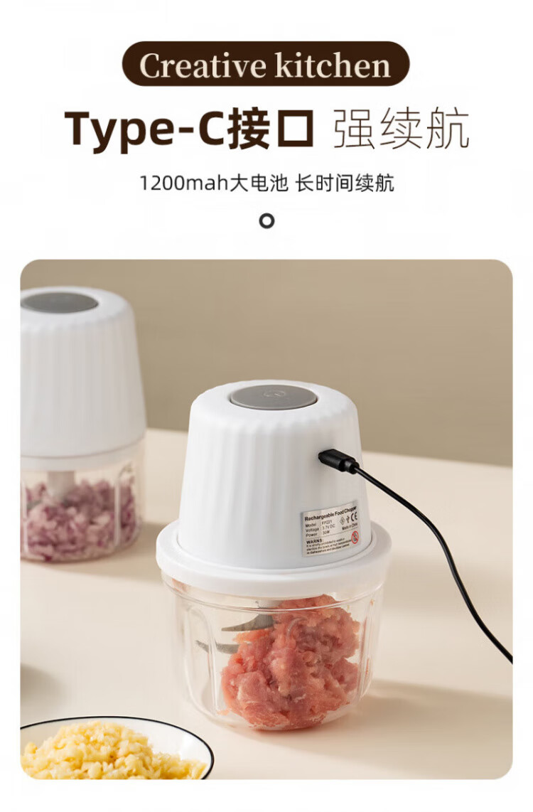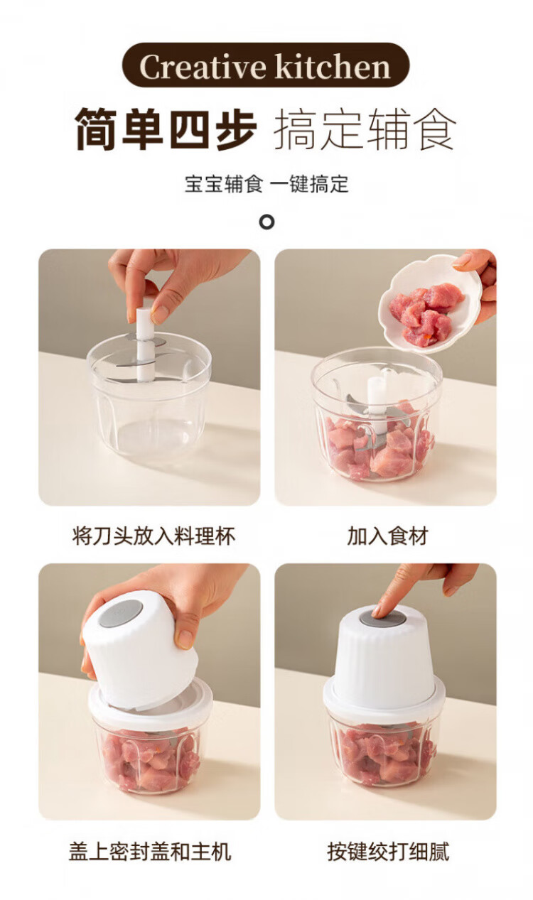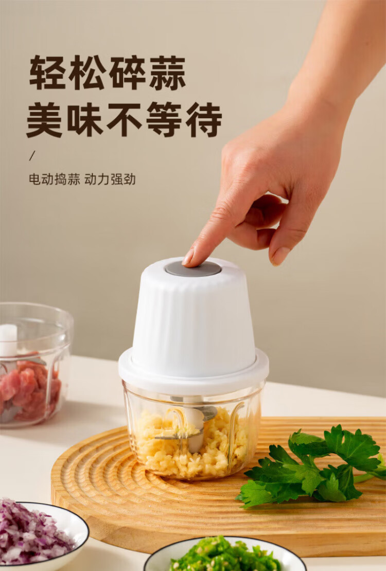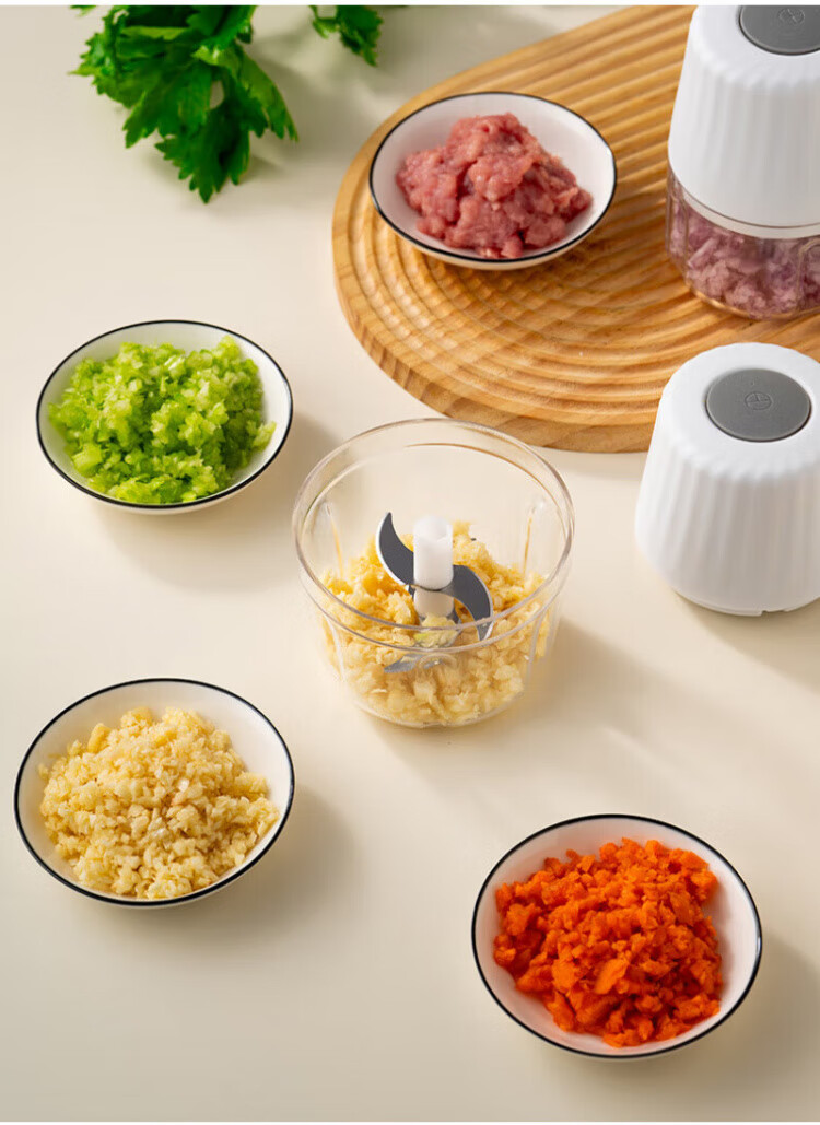 QCSK German electric garlic machine garlic pounder meat grinder household fully automatic multi-functional small baby food supplement cooking machine garlic machine-3-blade knife 250ml