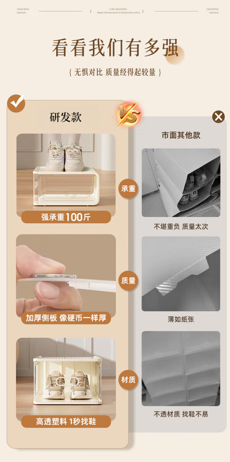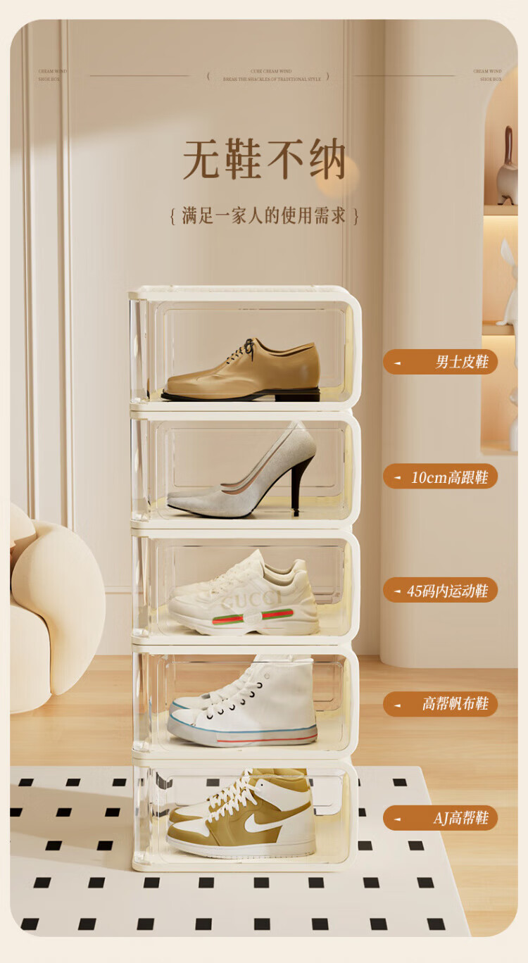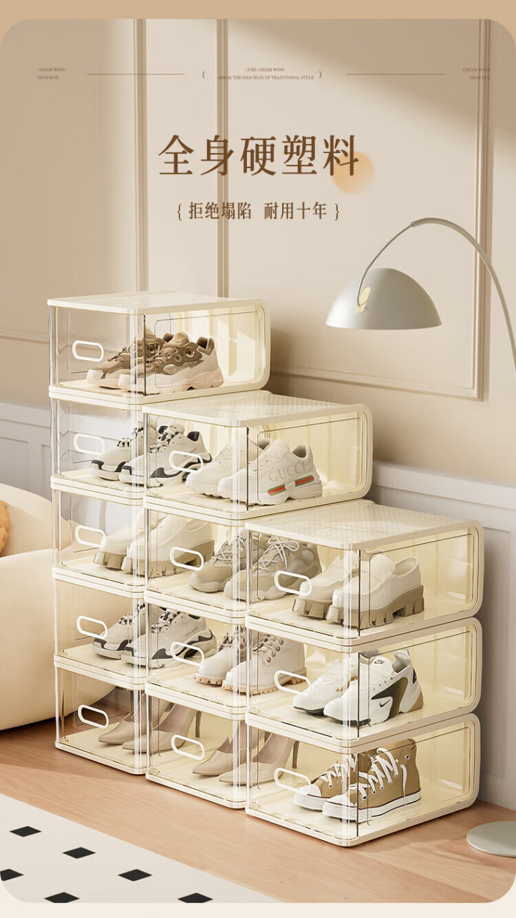 WCZ German hard plastic transparent shoe box shoe cabinet shoe storage artifact organizing shoe rack dust-proof thickened household acrylic 8 pieces - light luxury green - medium size