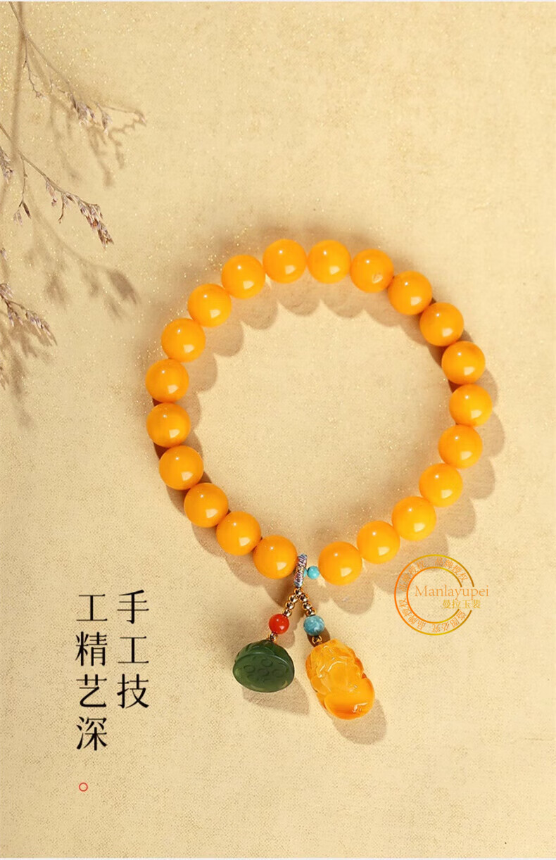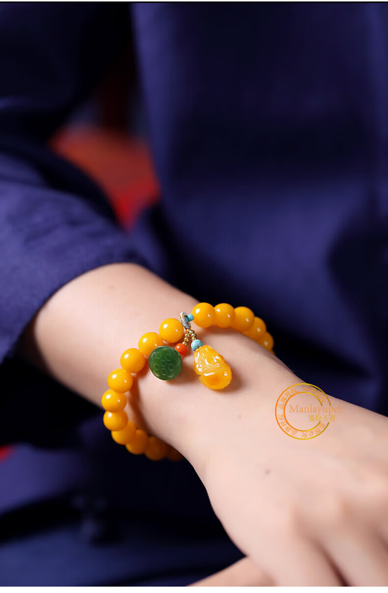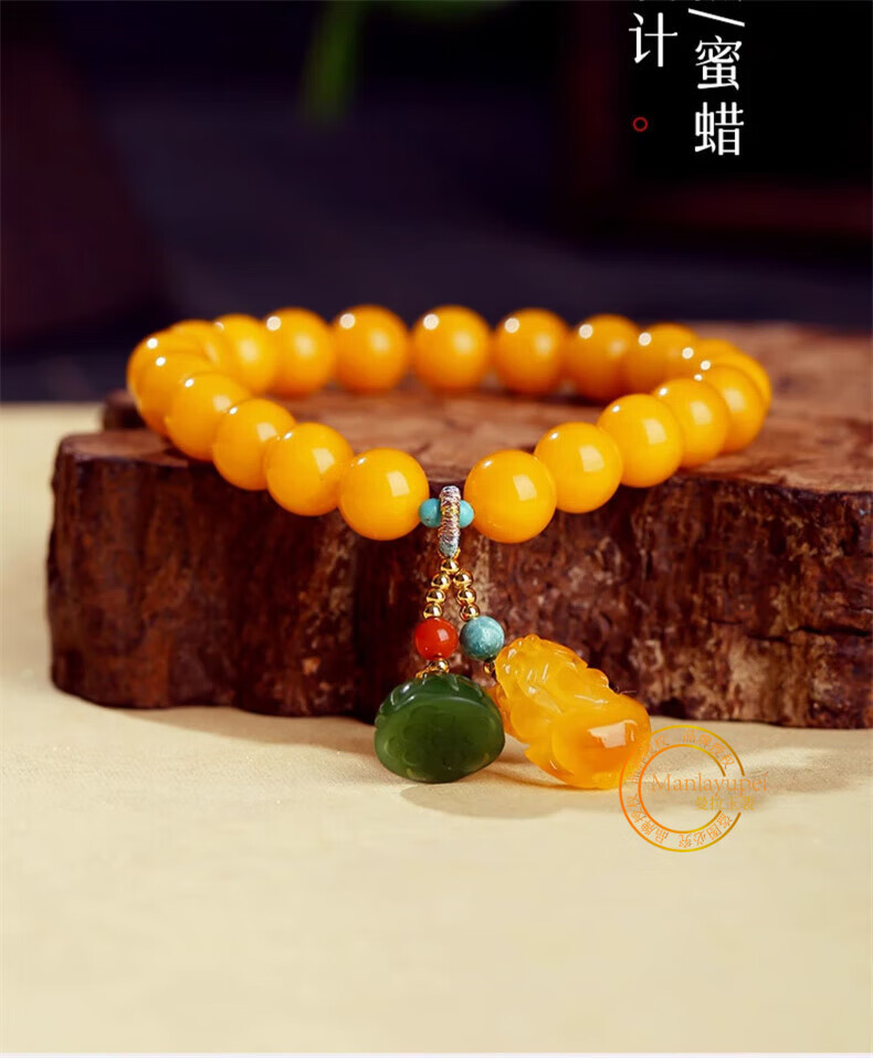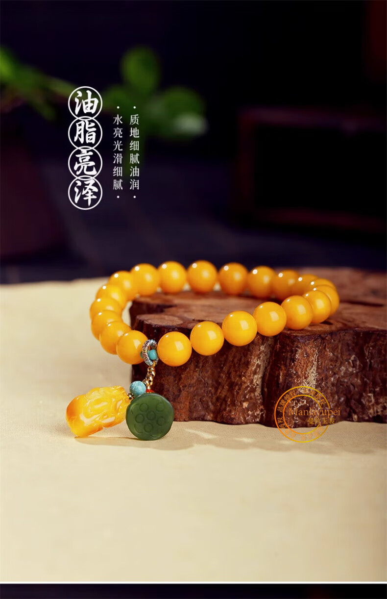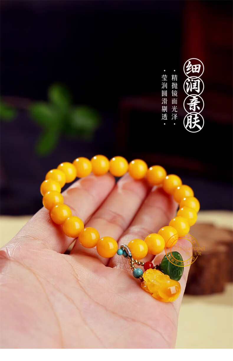 Manla Jade Natural Beeswax Bracelet Female Chicken Oil Yellow Bracelet Old Honey Amber DIY Small Pixiu Jade Beads 9mm Beeswax Beads 8mm 21pcs