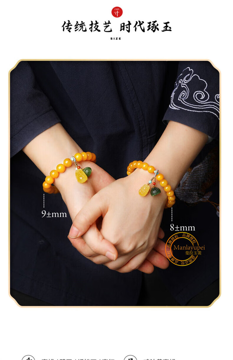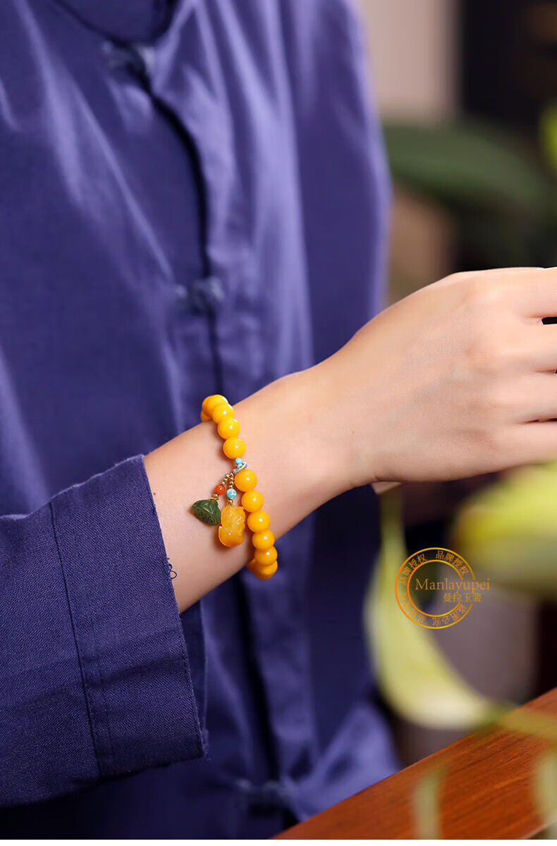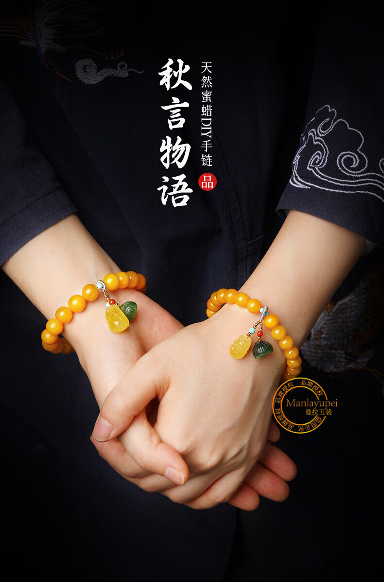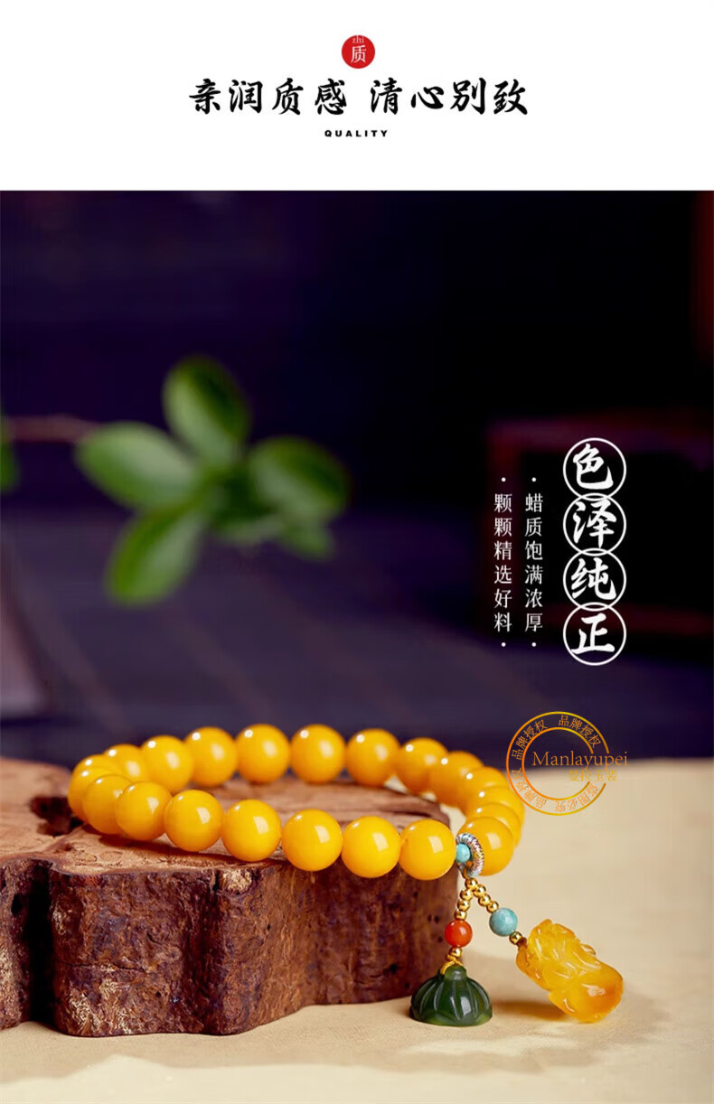 Manla Jade Natural Beeswax Bracelet Female Chicken Oil Yellow Bracelet Old Honey Amber DIY Small Pixiu Jade Beads 9mm Beeswax Beads 8mm 21pcs