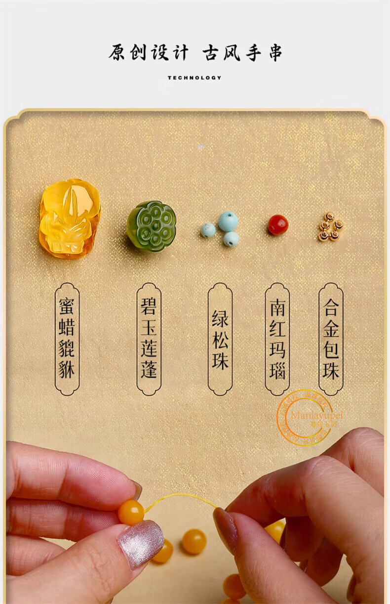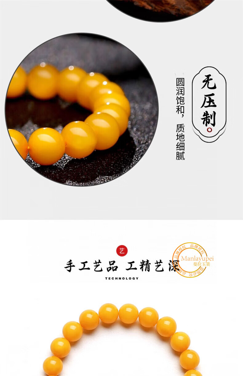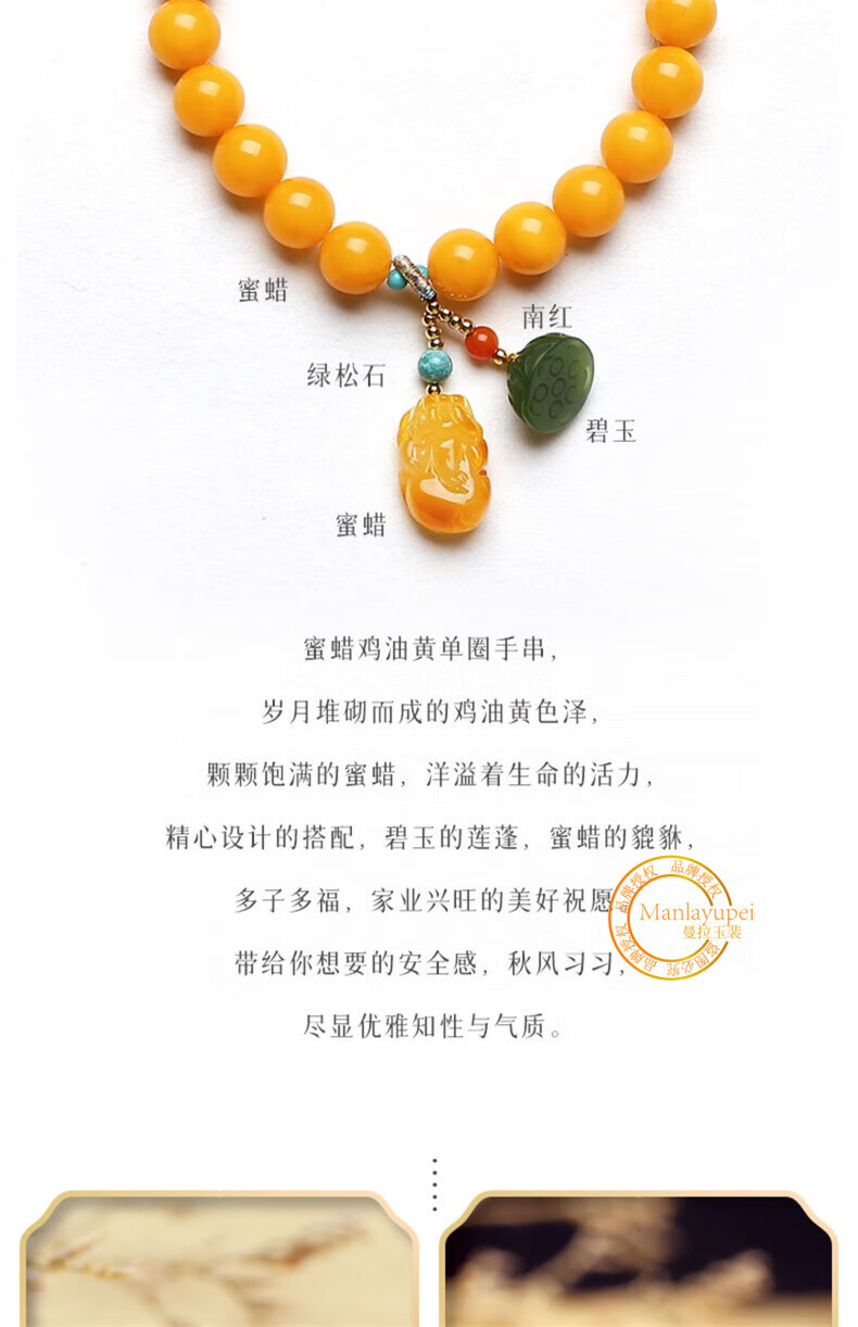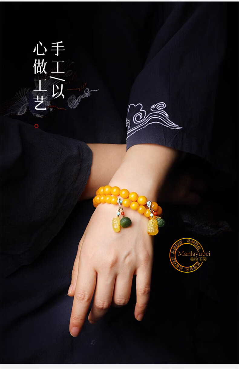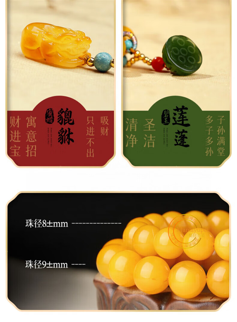 Manla Jade Natural Beeswax Bracelet Female Chicken Oil Yellow Bracelet Old Honey Amber DIY Small Pixiu Jade Beads 9mm Beeswax Beads 8mm 21pcs