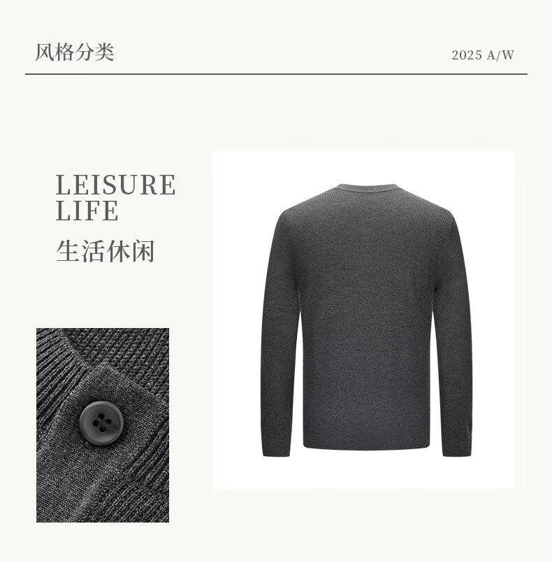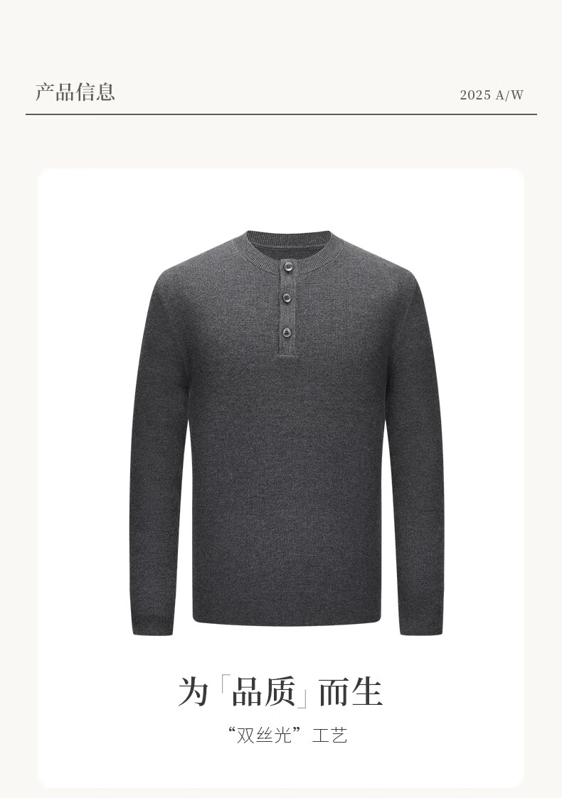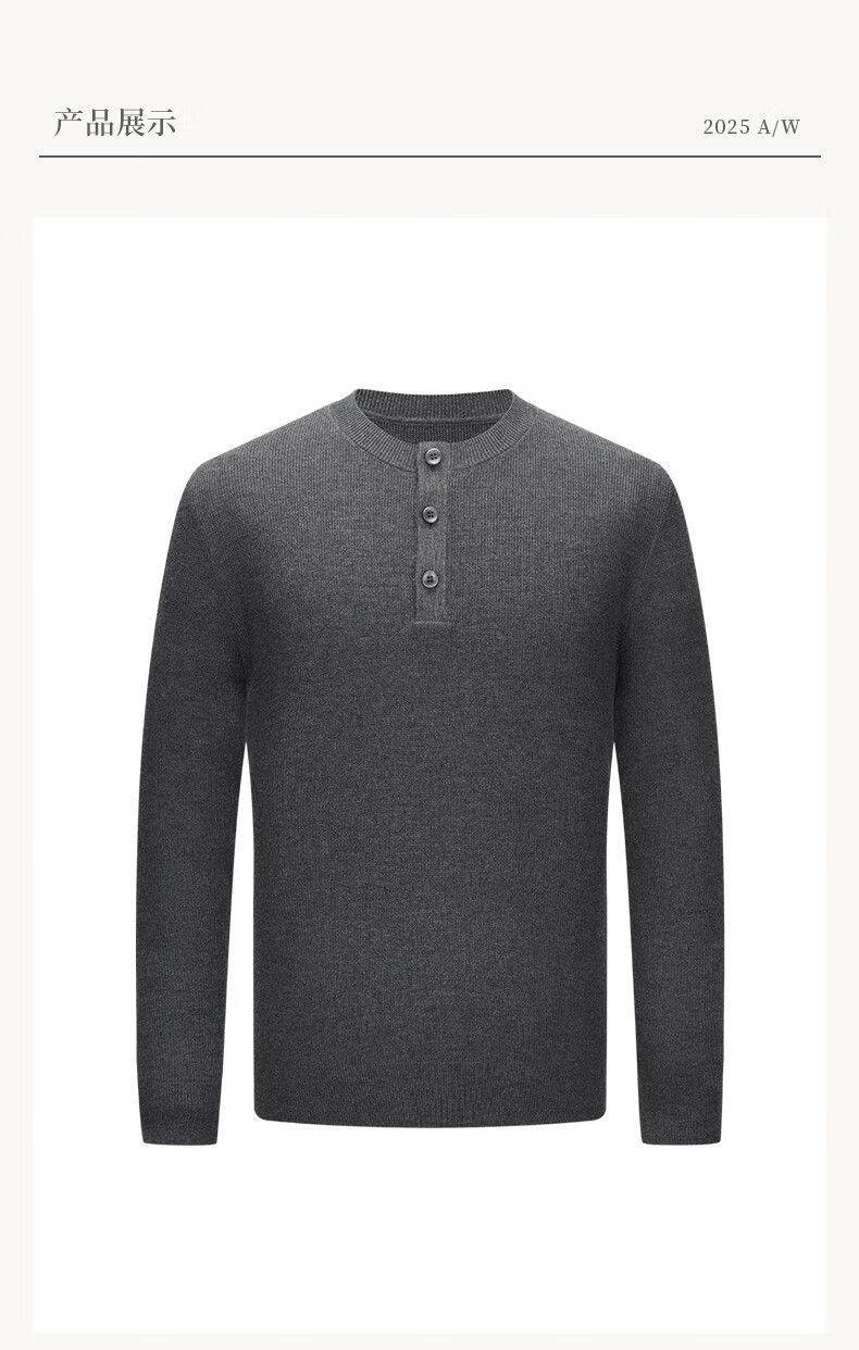 Brloote Men's Sweater Light Luxury Brand Solid Color Henley Collar Sweater Men's Autumn and Winter New Casual Warm Pullover Sweater Gray 2XL (185/104A)