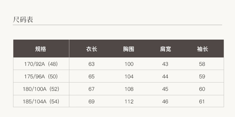 China (cm) 160-165/84-86 165-170 / 88-90 167-172 / 92-96 168-173 / 98-102 170-176 / 106-110