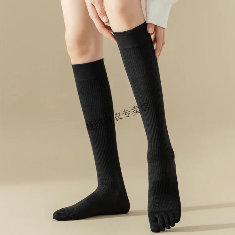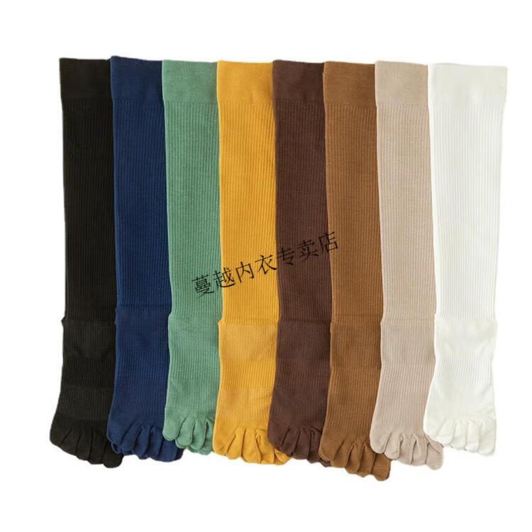 Modal cotton long toe socks for men and women, tall toe socks, mid-length toe socks, vertical pattern, five toe calf socks, navy blue, one size fits all, unisex, cotton vertical pattern, below-the-knee long tube