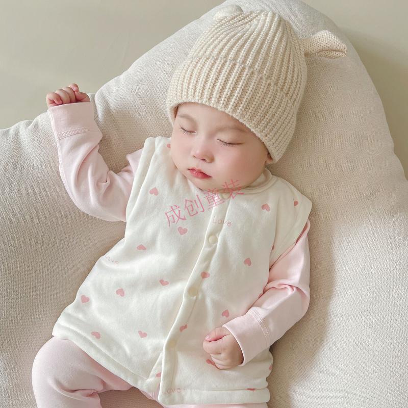 Disney (Disney) Spring and Autumn Baby Cotton Vest Four Seasons Newborn Padded Vest for Boys and Girls Warm Waistcoat Top Jacket Pink Pink Heart Vest 73 cm