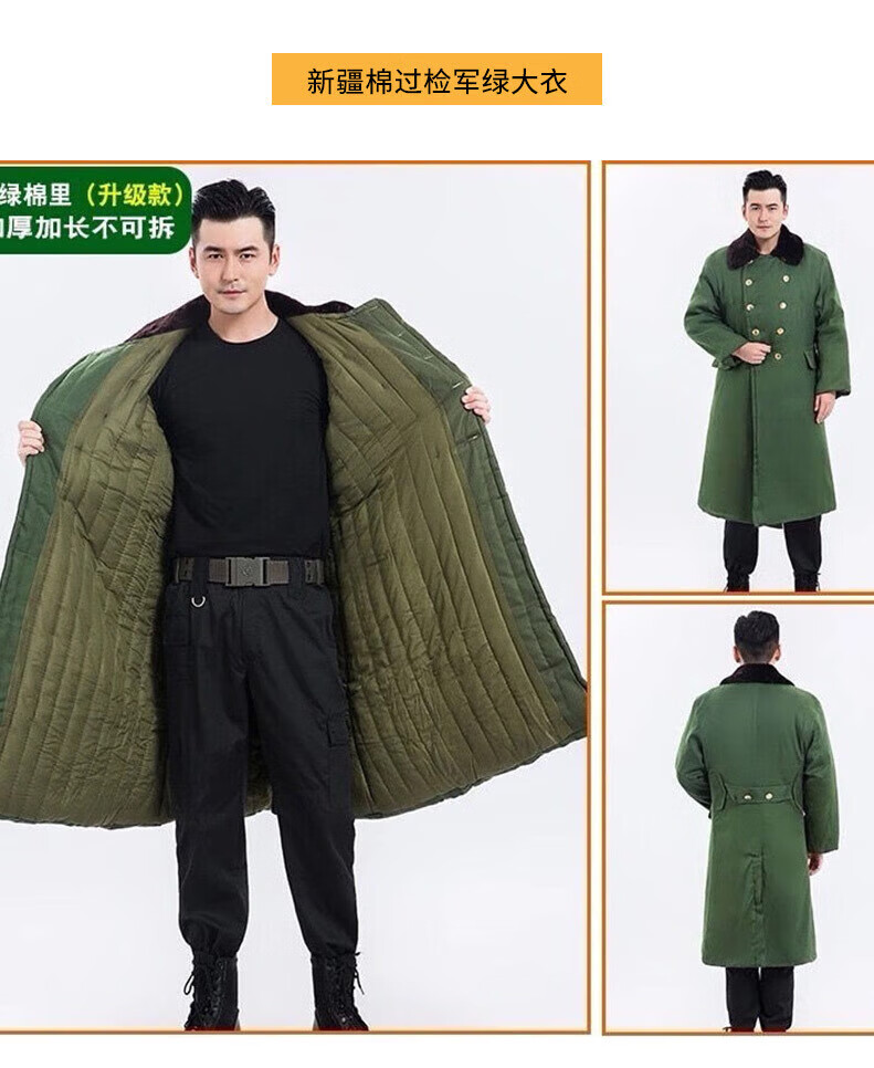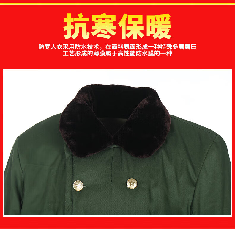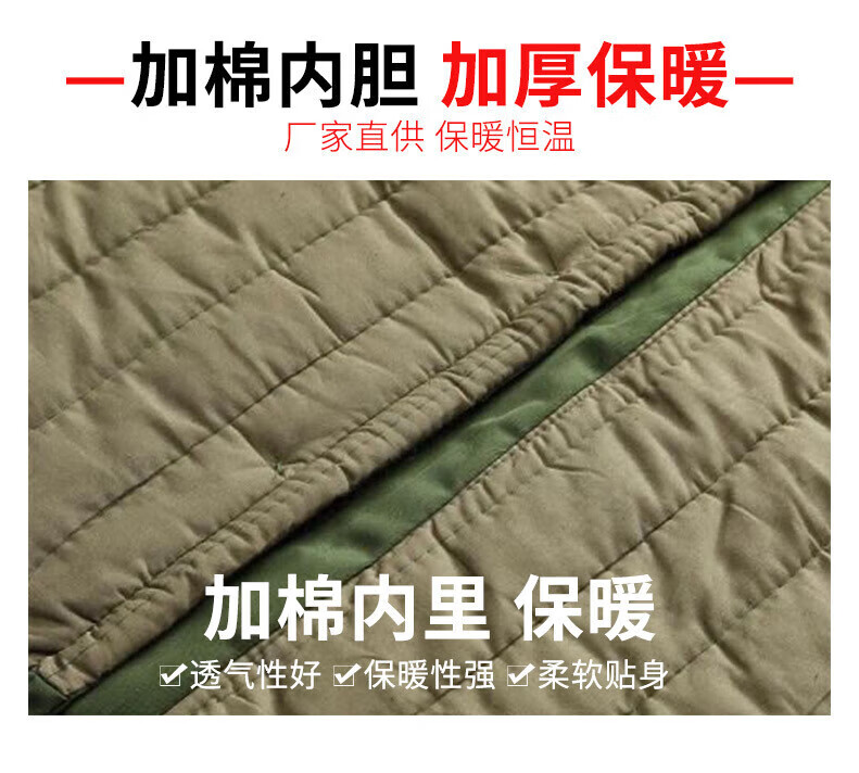Jihua 3565 military coat winter plus velvet thickened windproof warm green old-fashioned cotton coat men's labor protection cold storage cold-proof clothing green velvet lining zipper detachable