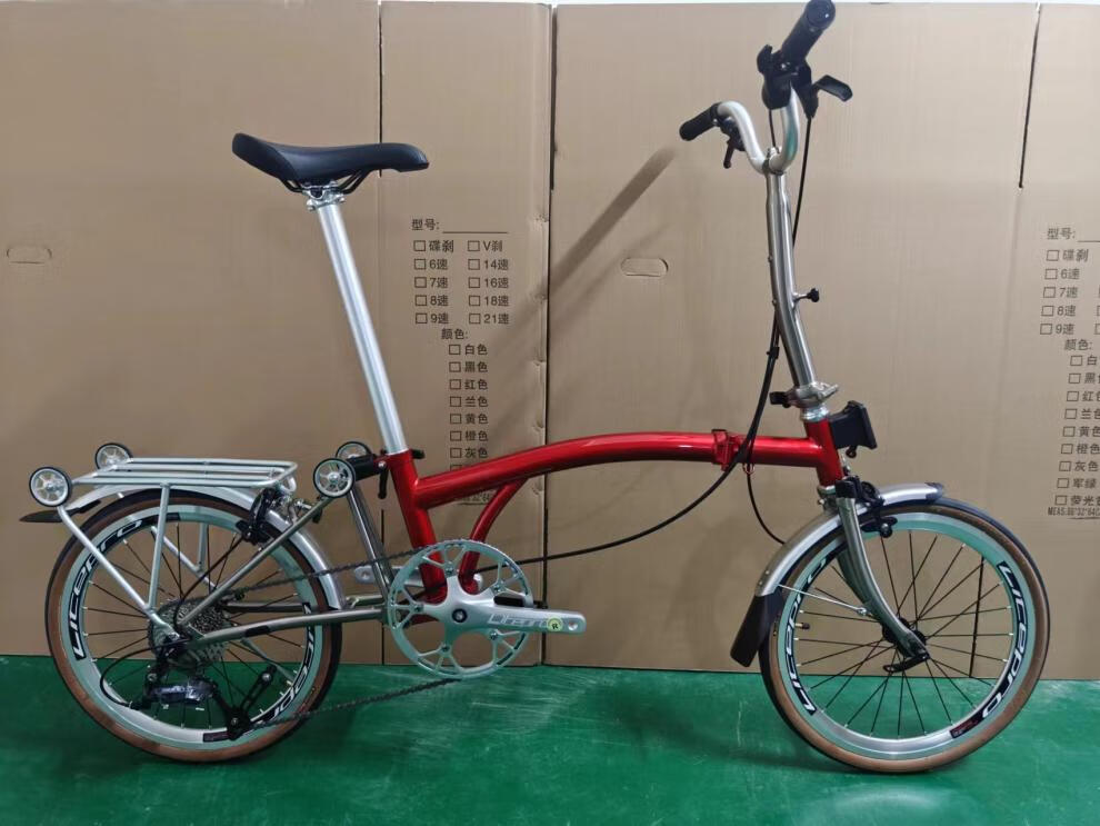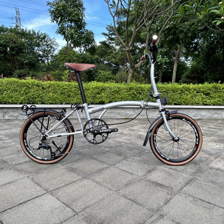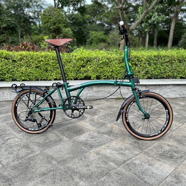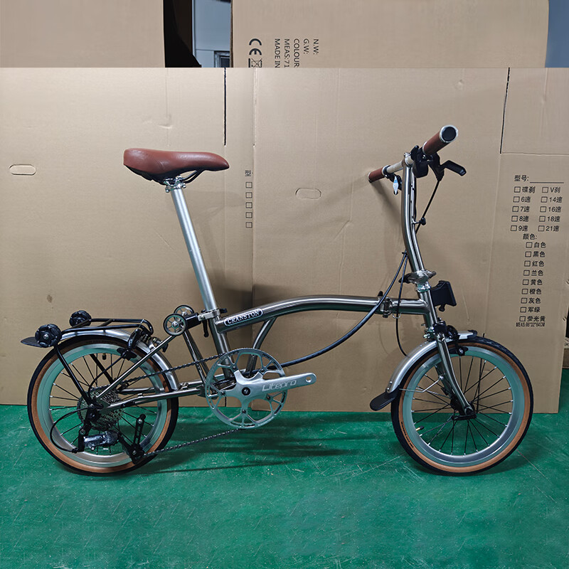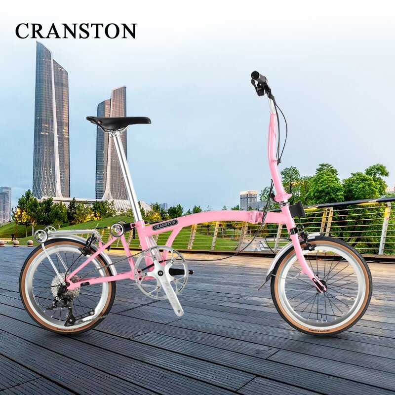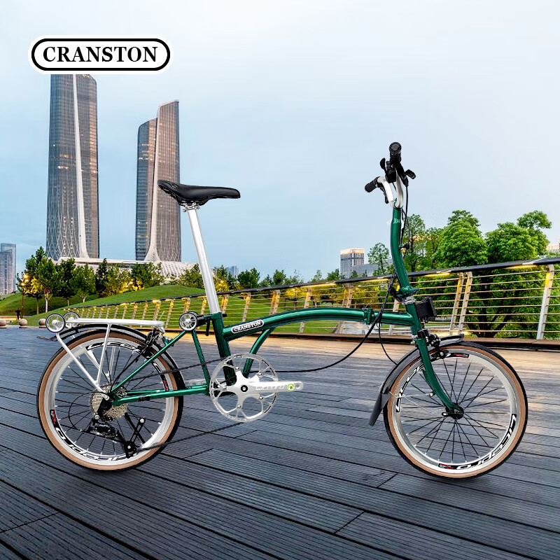 CRANSTON 20-inch small cloth 9-speed three-folding bicycle portable retro ultra-light women's variable-speed bicycle 20 inches _ Postal Green Silver with casual version plus universal wheels