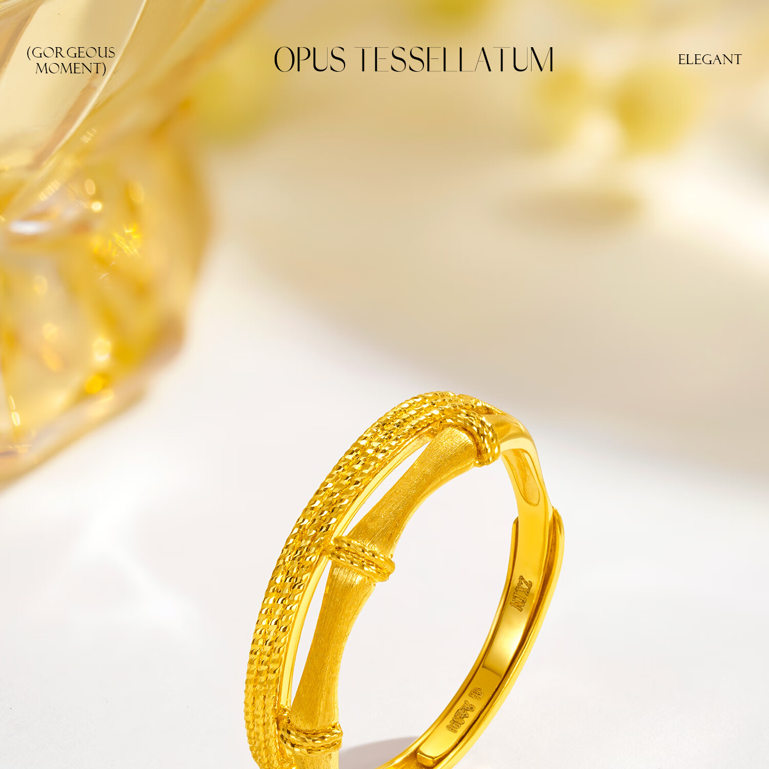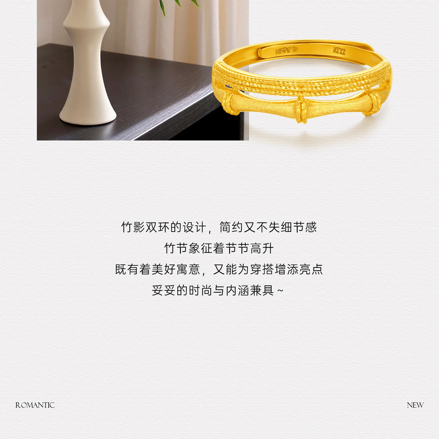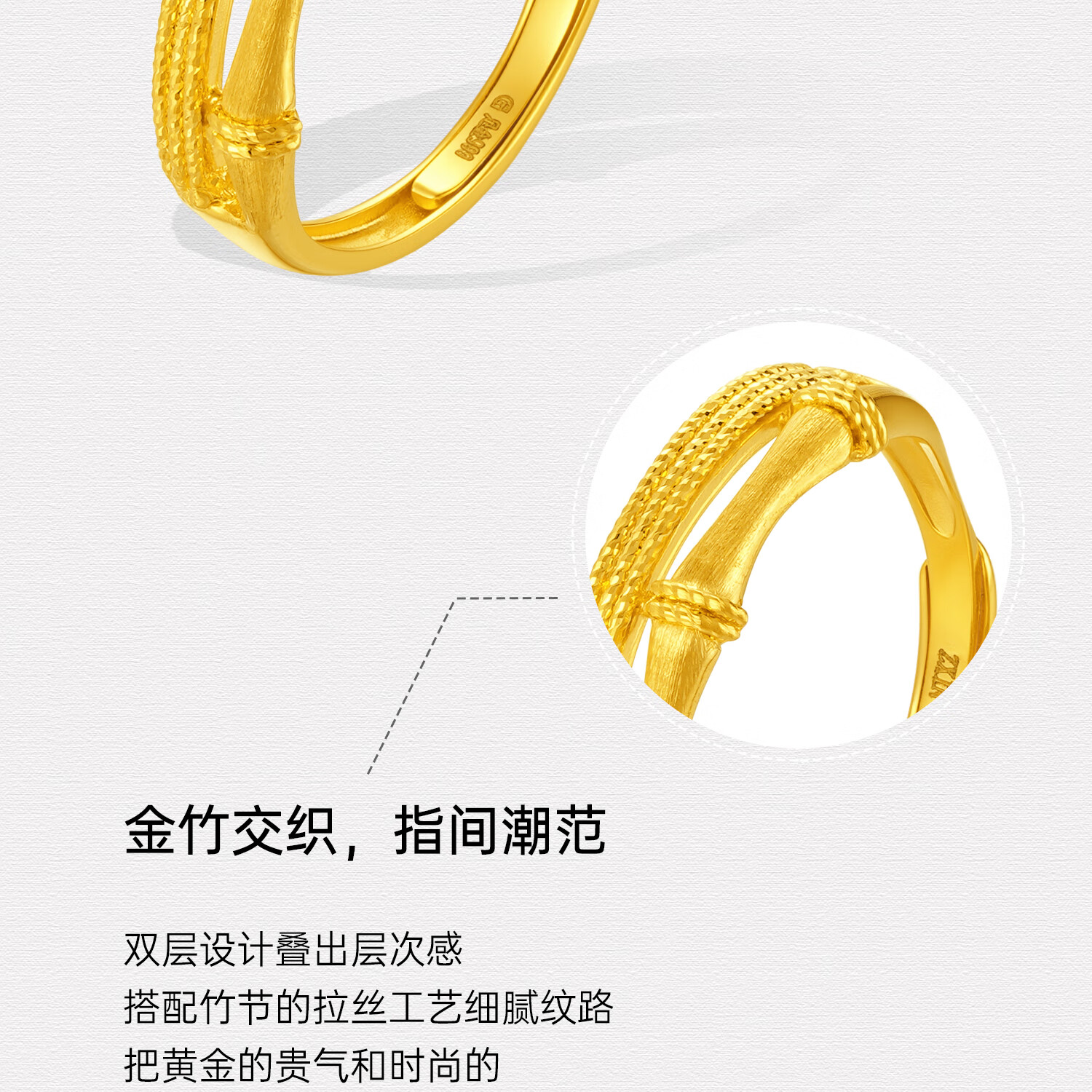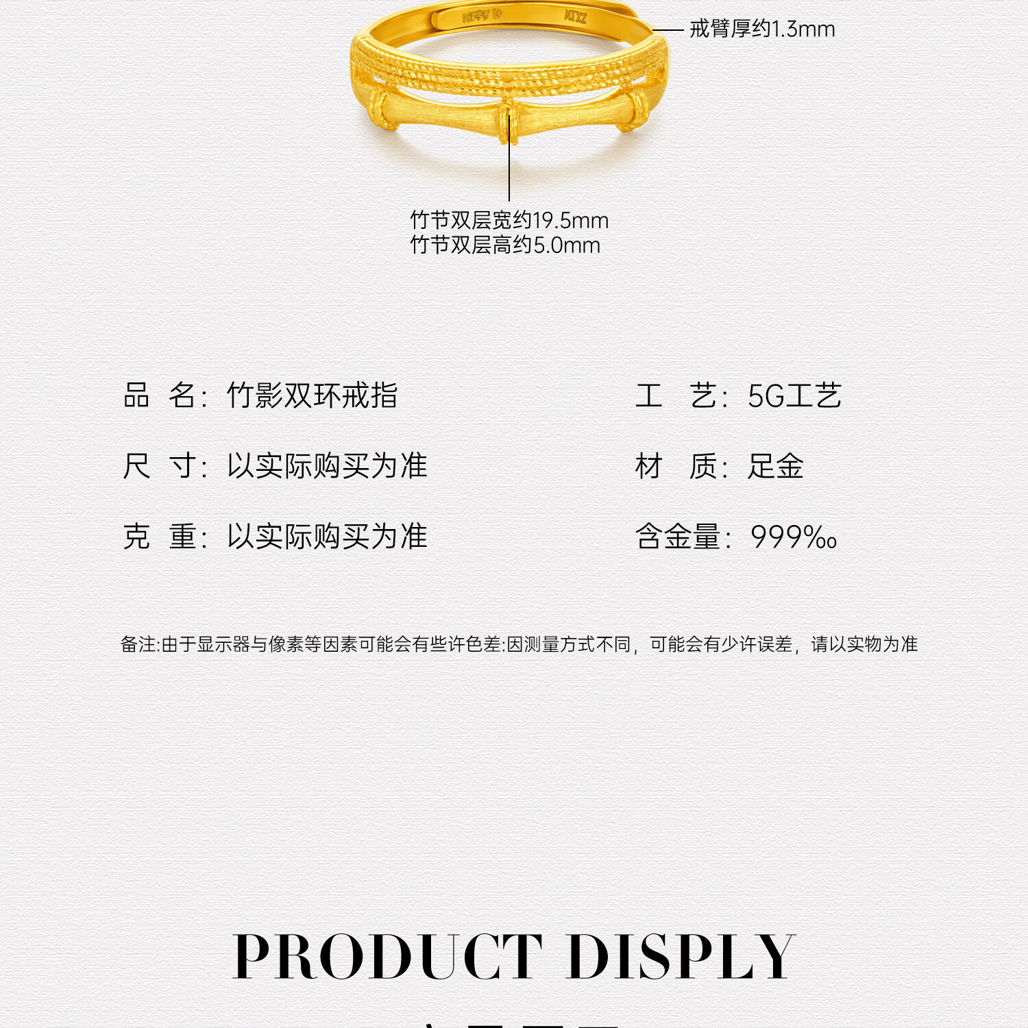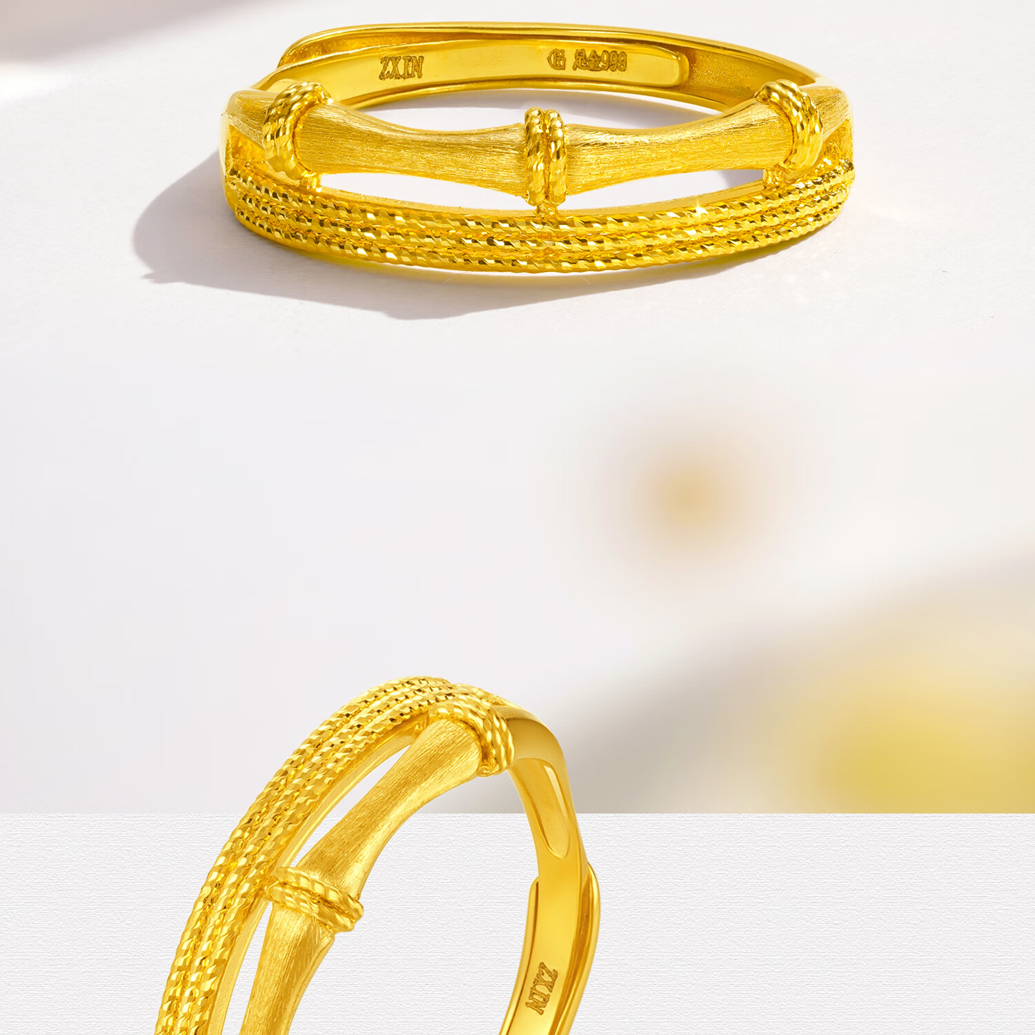 Zhongxin Jewelry 5G Craft Bamboo Gold Ring Women's Gift Pure Gold 999 Double Ring Ring Jewelry 2.87g