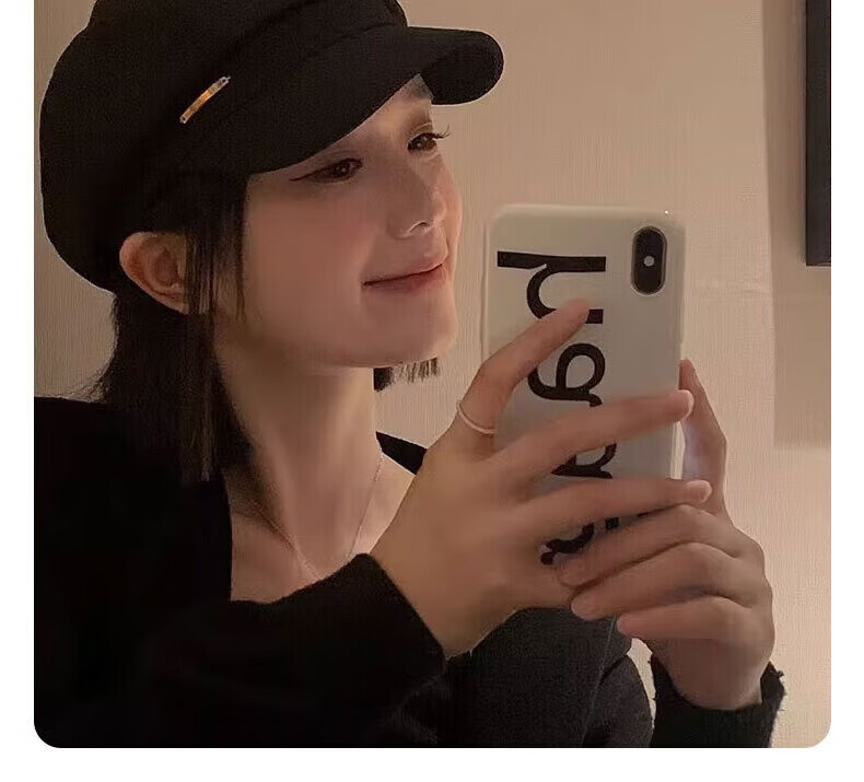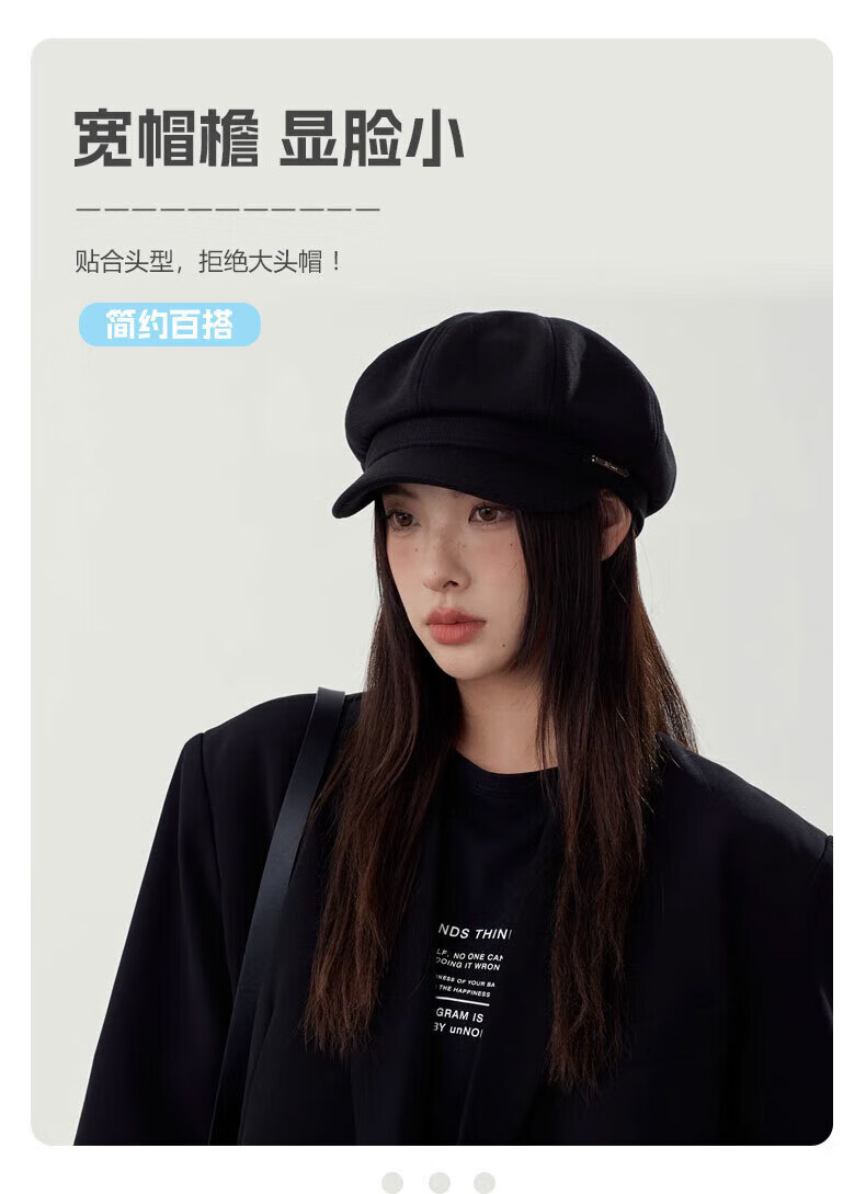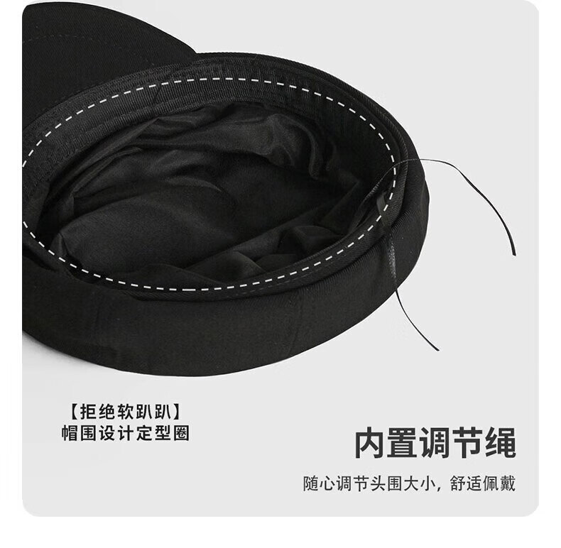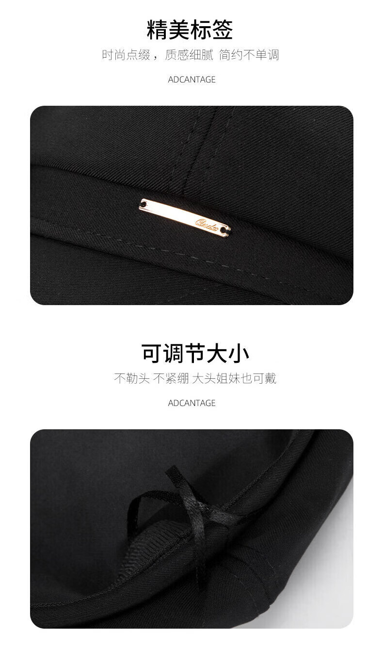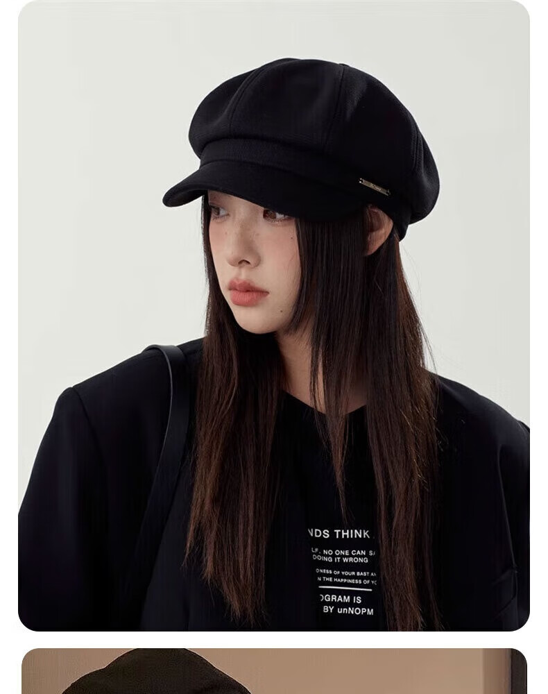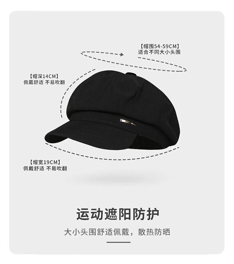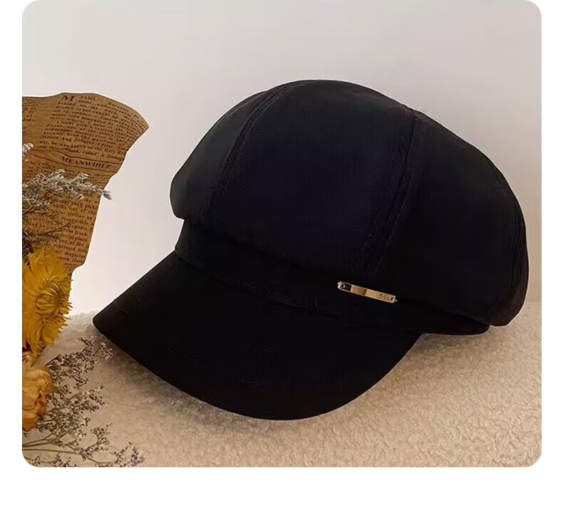 Yunpo beret women's spring and summer octagonal hat with large head circumference, new peaked cap, art painter hat, small face, fashionable and western style. Octagonal beret, black, adjustable, small face, one size fits all (head circumference 54-59cm)
