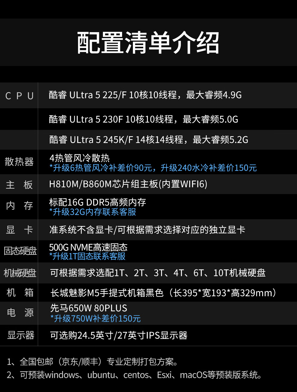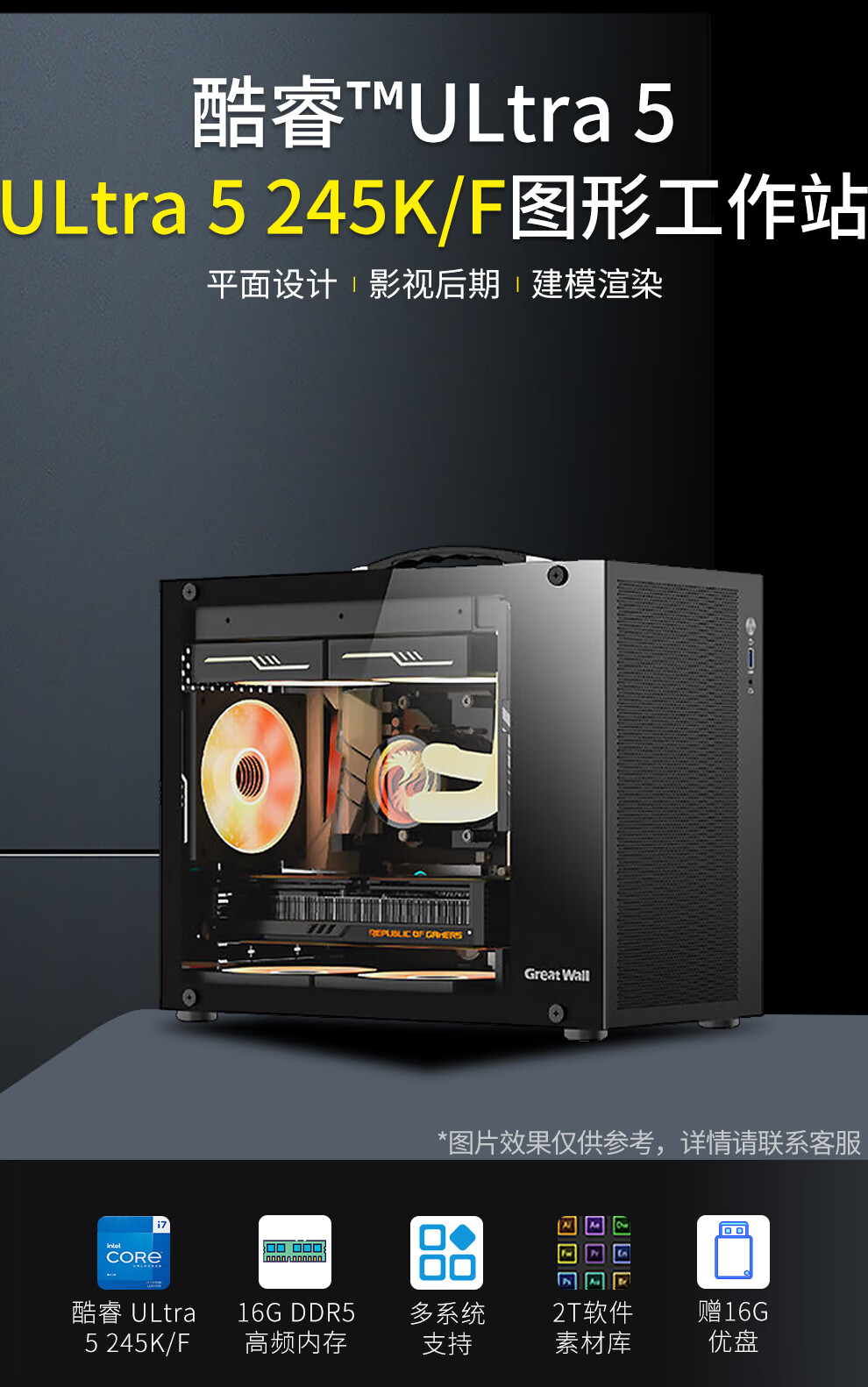 Deep Graphics Core Ultra 5 245K/RTX5060TI designer rendering modeling editing business home office assembly desktop DIY graphics workstation computer host complete set NVIDIA T1000 8G professional graphics card single host U5 230F+16G+500G