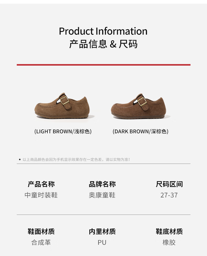 Aokang Aokang children's shoes girls' Birkenstock shoes 2025 autumn new popular little girls' shoes soft sole middle and large children's campus shoes light brown 30 suitable for feet 18.3cm long