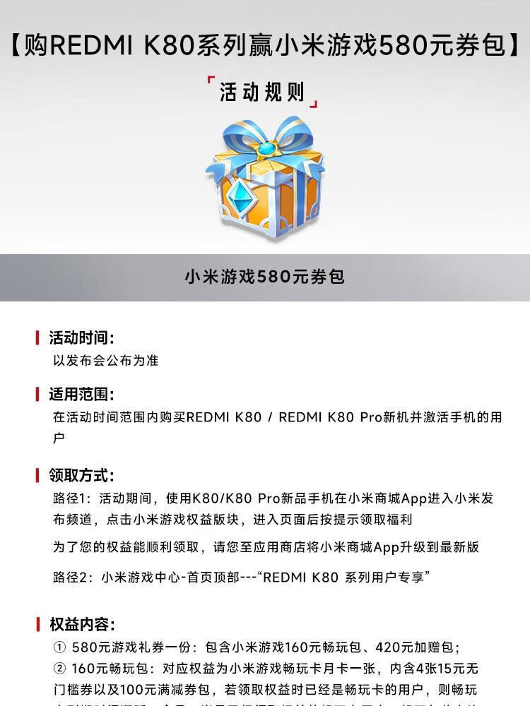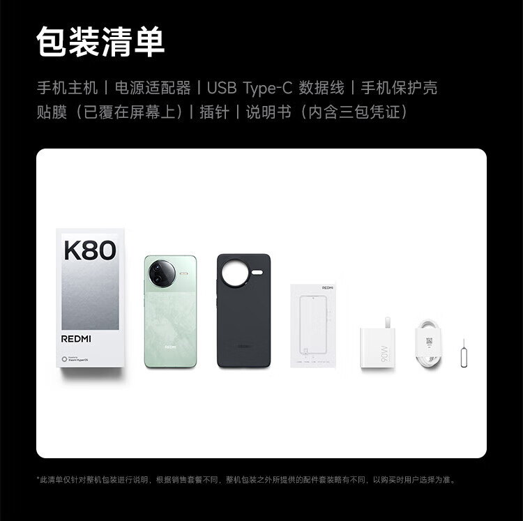 Xiaomi (MI) REDMI Redmi K80 new 5G mobile phone 3rd generation Snapdragon 8 IP68 dustproof and waterproof 6550mAh large battery Xiaomi ThePaper OS Xuan Yehei 12GB+256GB official standard configuration