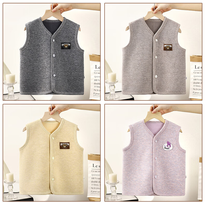 New style children's vest with velvet and thickening to keep warm for outer wear in autumn and winter for boys and girls cardigan vest 287 yellow -Xinyu vest 80 cm