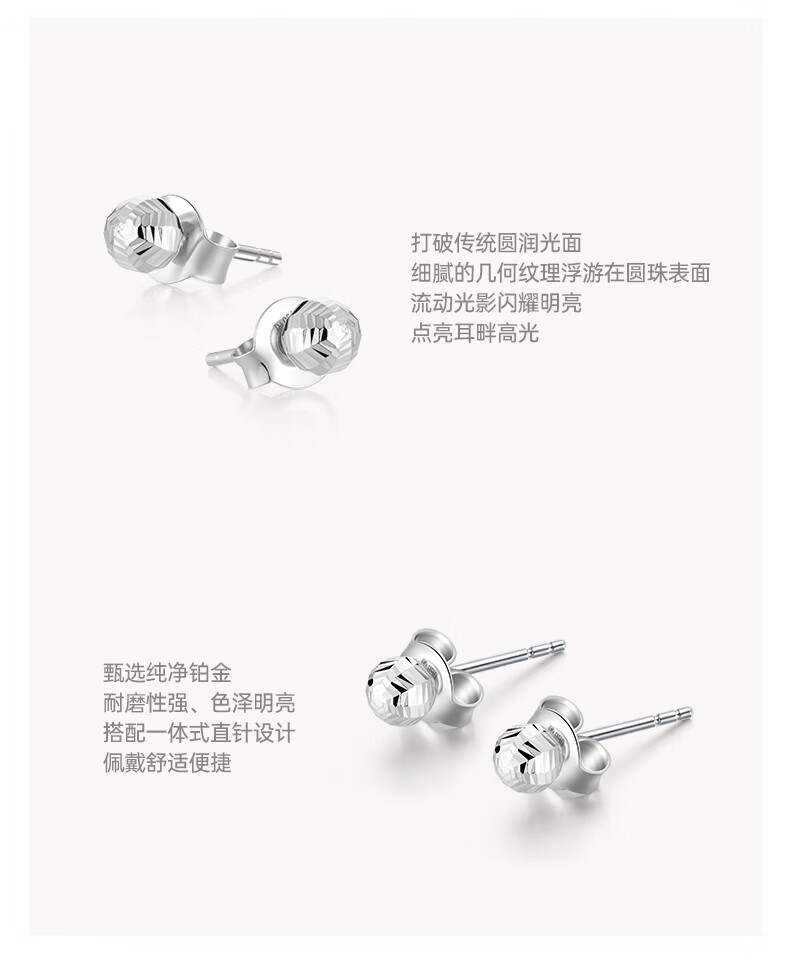 Diamond Family PT950 platinum ball earrings multi-faceted sparkling platinum earrings anniversary holiday gift classic ear piercing single piece about 0.6g