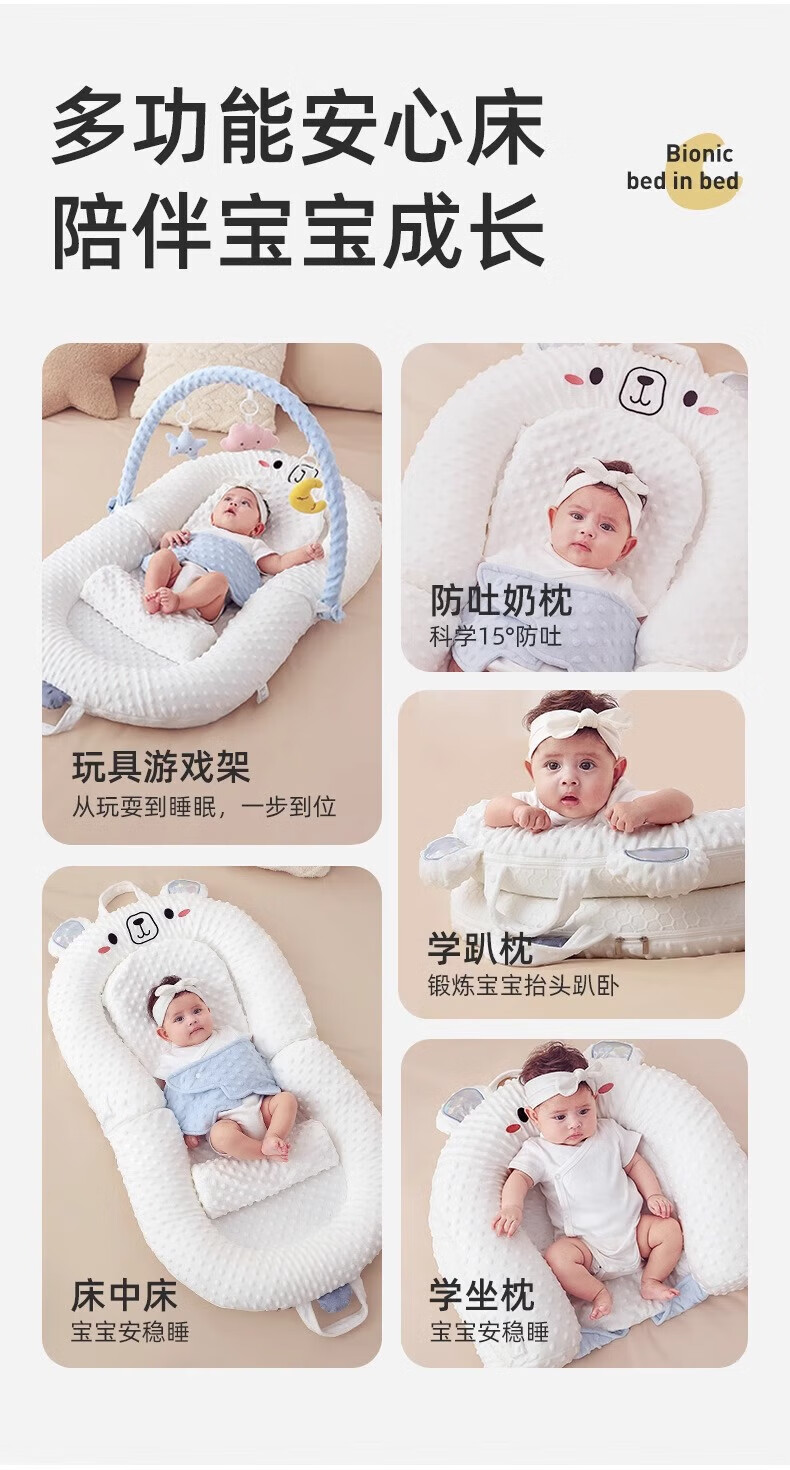 Sawang Germany's new bed-in-bed baby sleeping artifact baby multi-functional sleeping pad for newborns anti-pressure tilt little yellow chicken-AB two-sided comfort bed