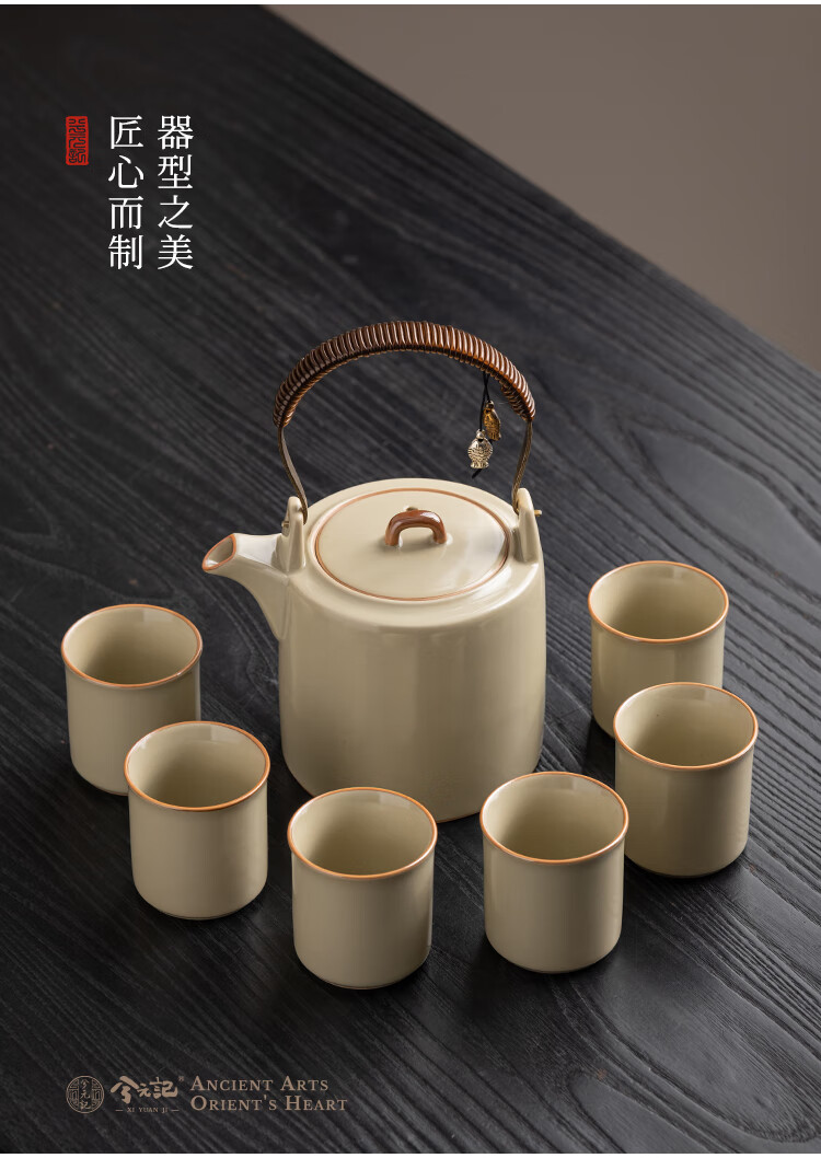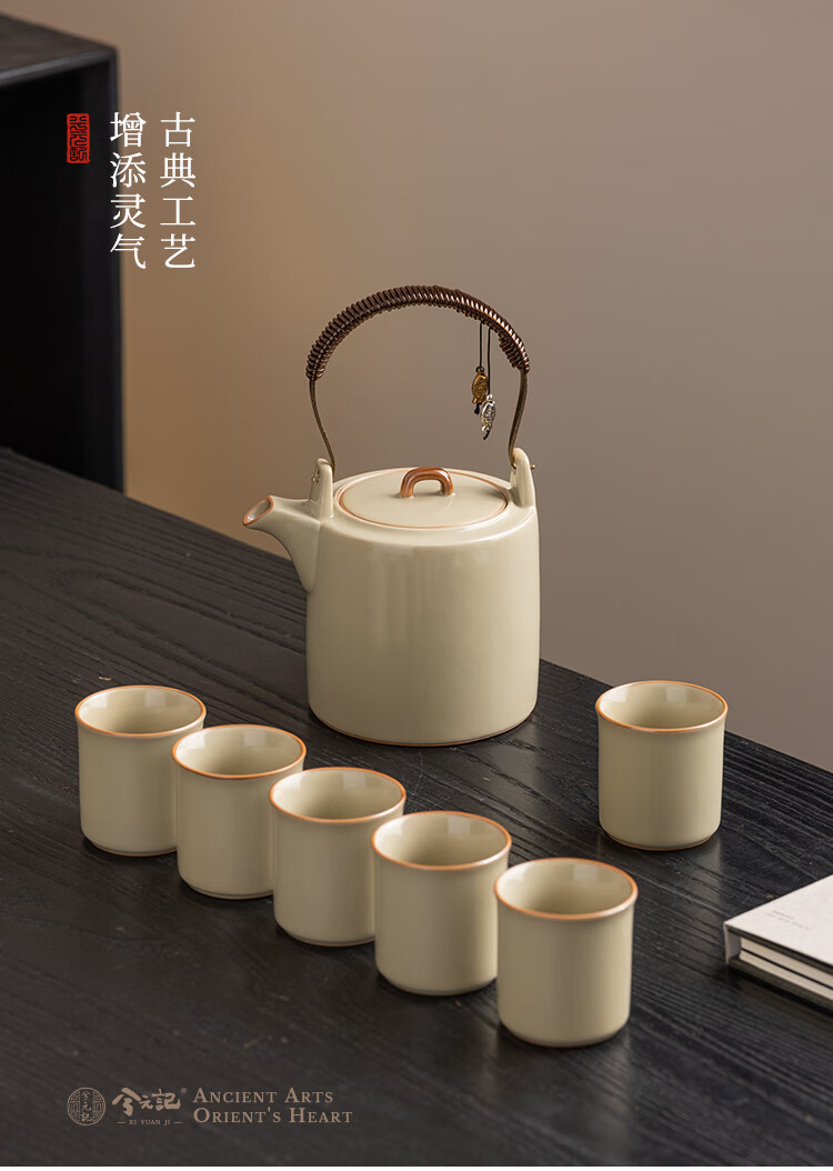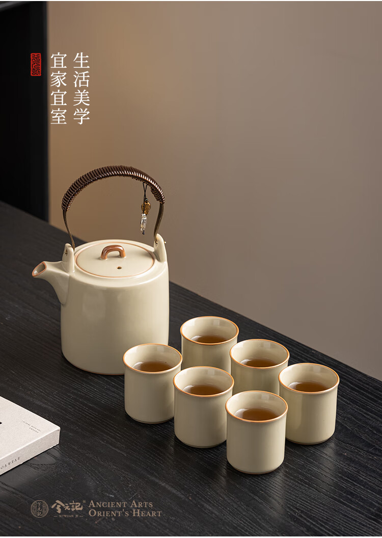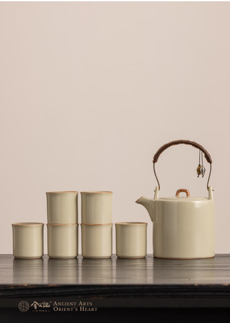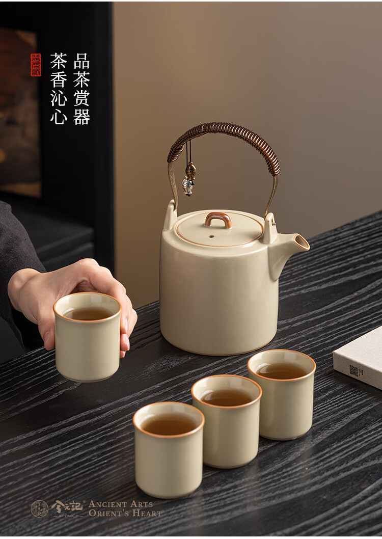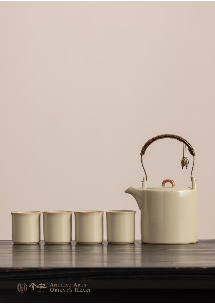 Xiyuanji plain yellow ceramic teacup tea set high-end household teapot cold kettle exquisite simple large capacity plain yellow full beam teapot one pot four cups (simple packaging)