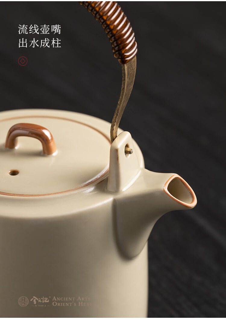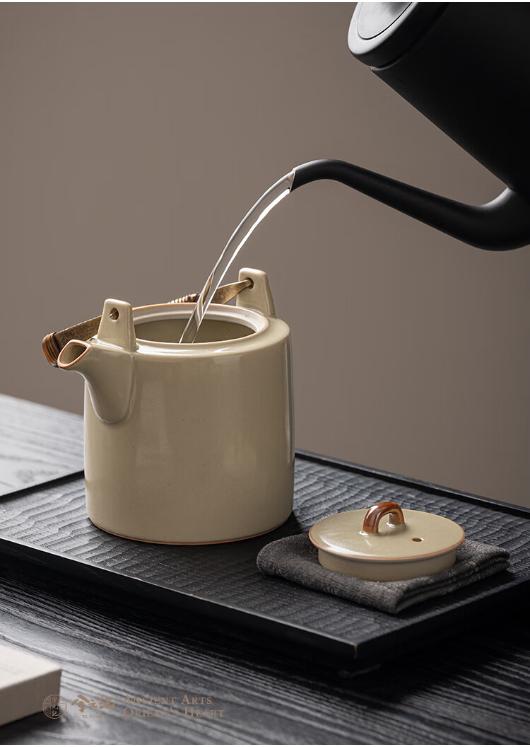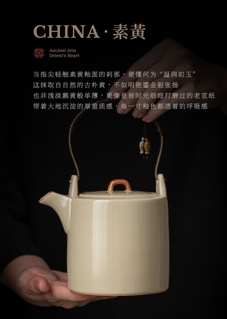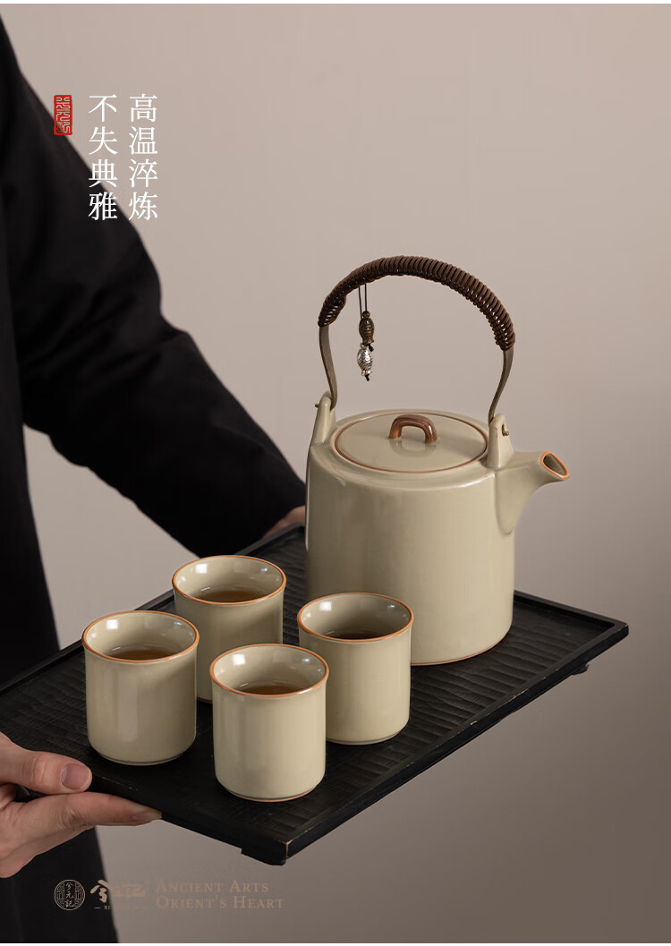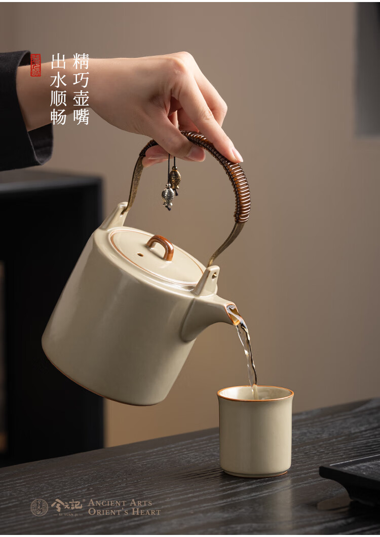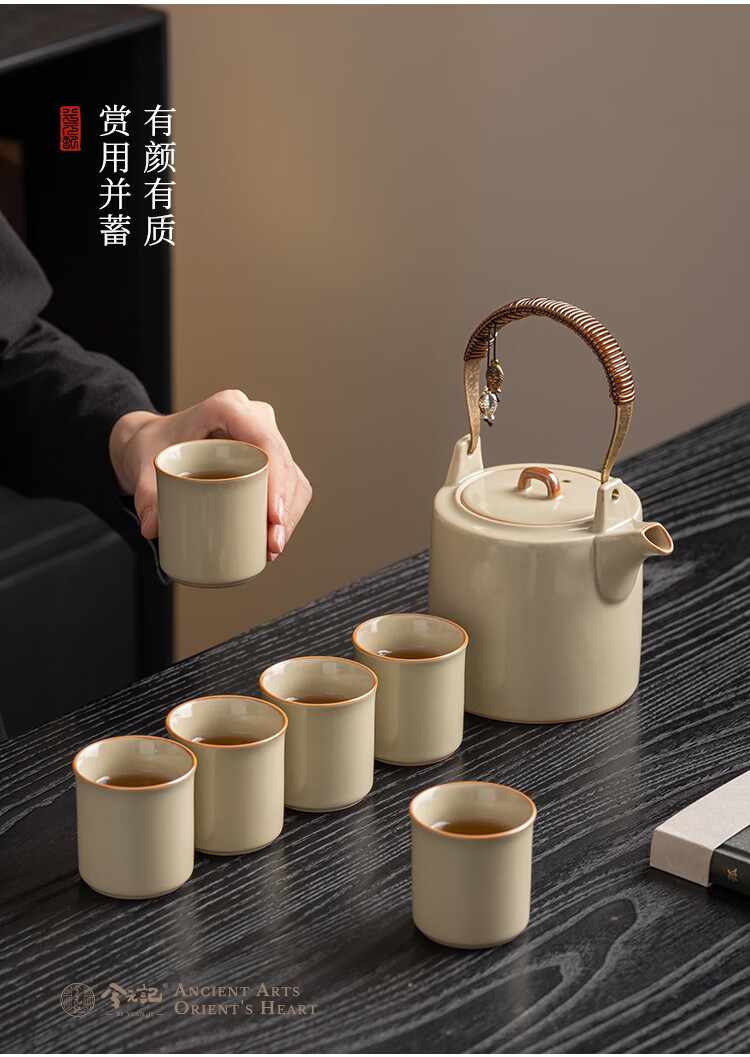 Xiyuanji plain yellow ceramic teacup tea set high-end household teapot cold kettle exquisite simple large capacity plain yellow full beam teapot one pot four cups (simple packaging)