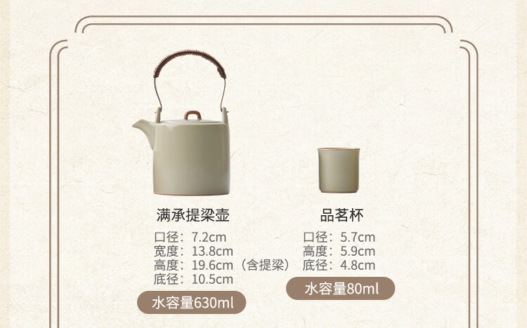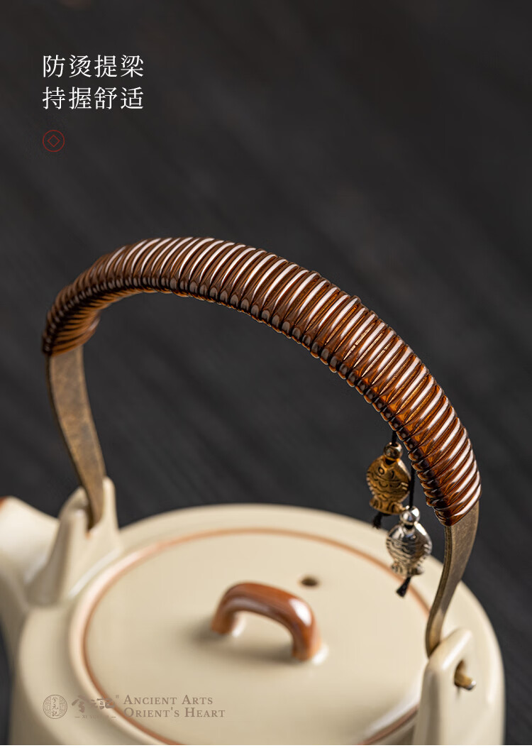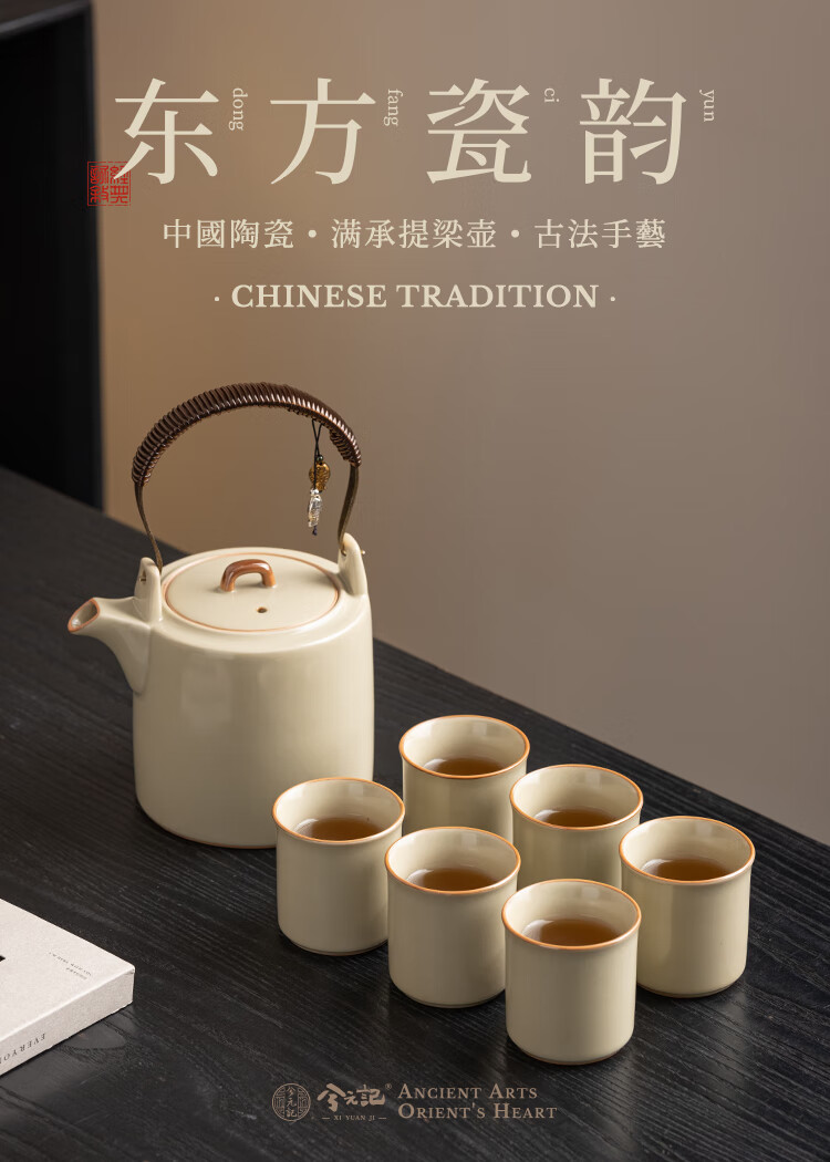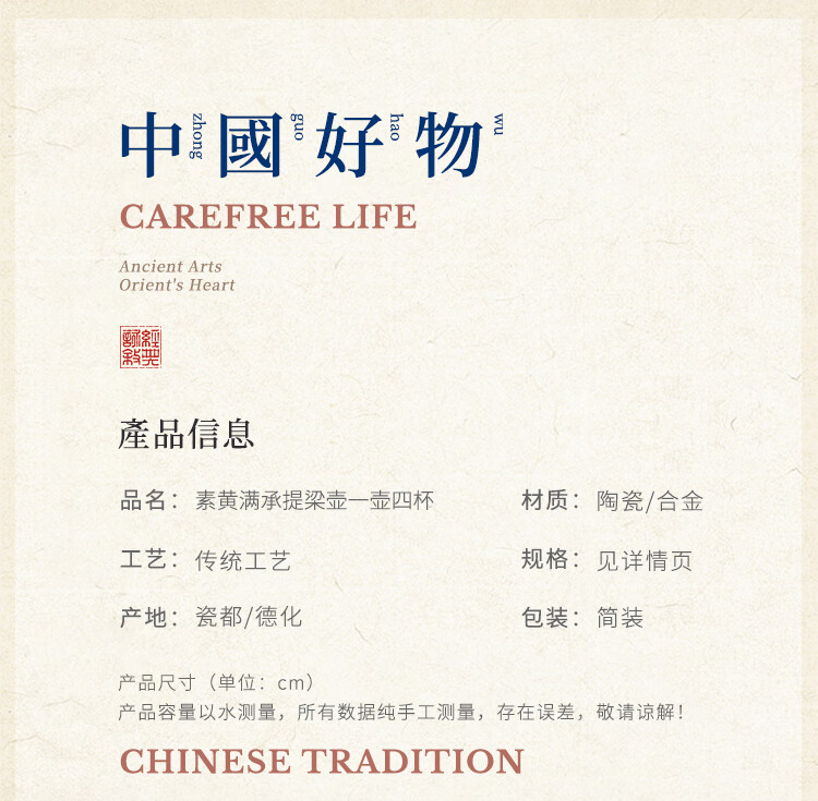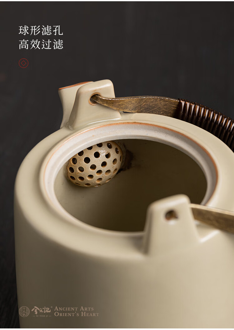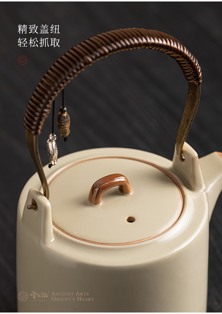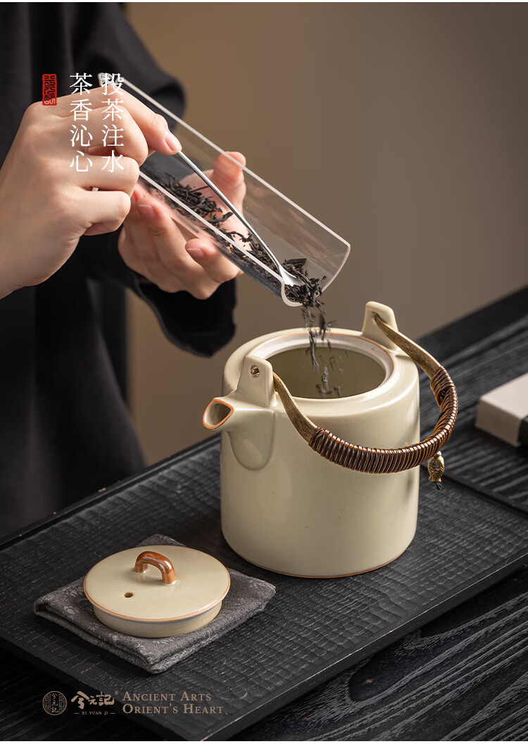 Xiyuanji plain yellow ceramic teacup tea set high-end household teapot cold kettle exquisite simple large capacity plain yellow full beam teapot one pot four cups (simple packaging)
