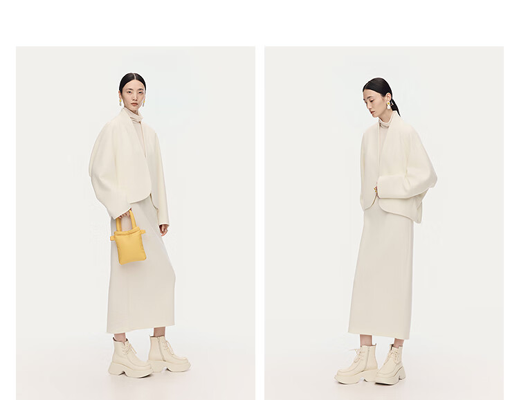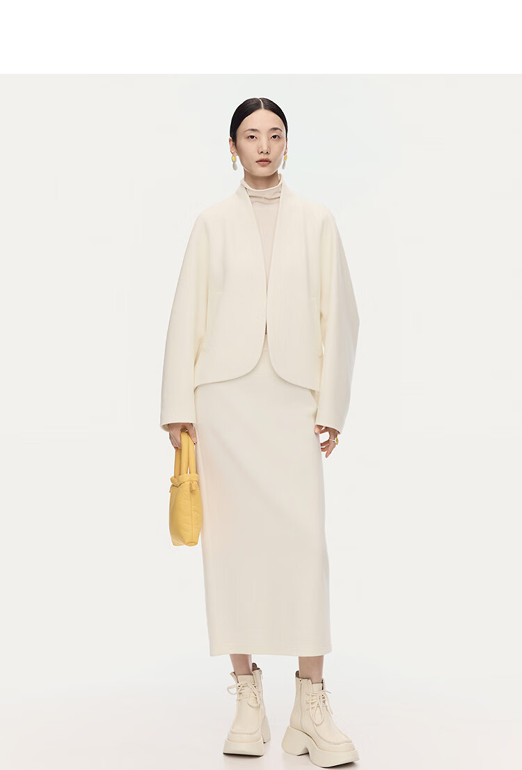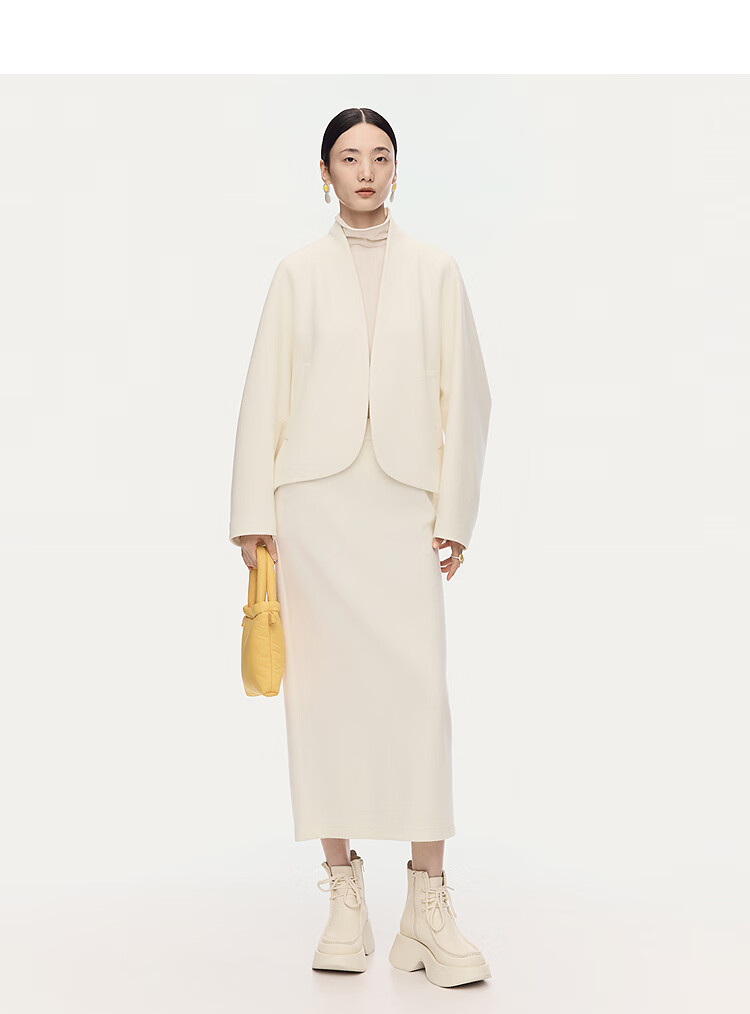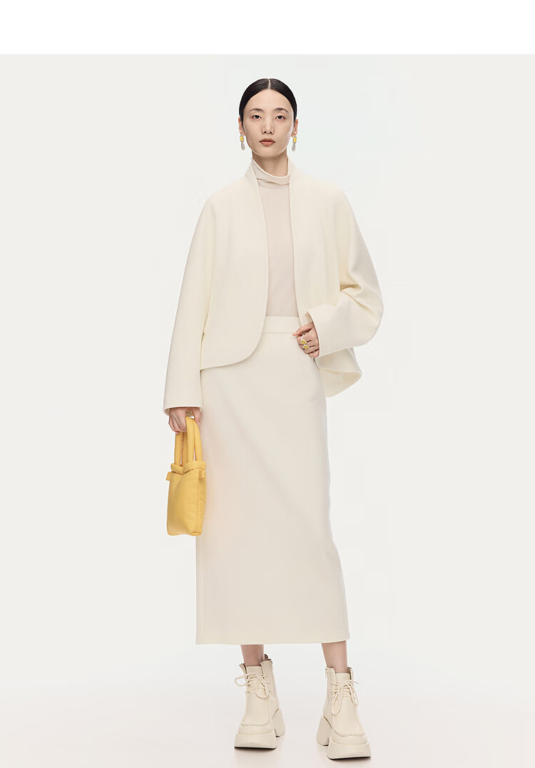 AUM Easy Suit 2025 Winter New Women's Clothing Temperament Wool Cotton Light Texture Knitted Jacket Trousers Half Skirt White Skirt S