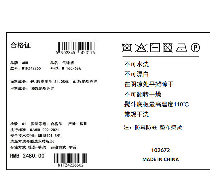China (cm) 160-165/84-86 165-170 / 88-90 167-172 / 92-96 168-173 / 98-102 170-176 / 106-110