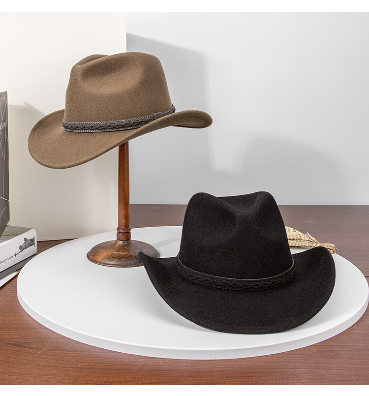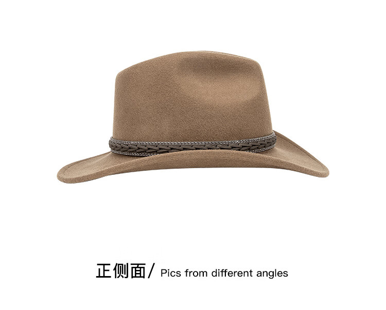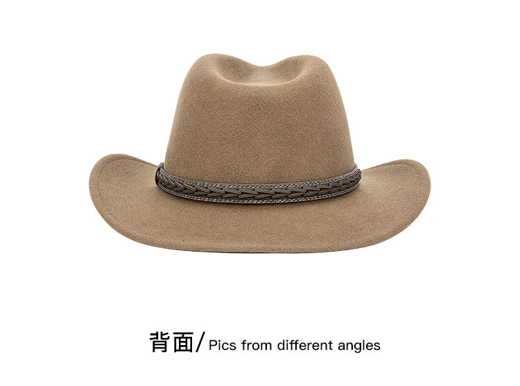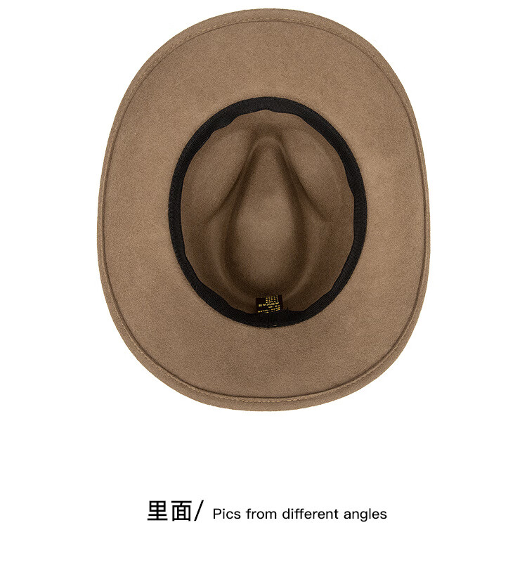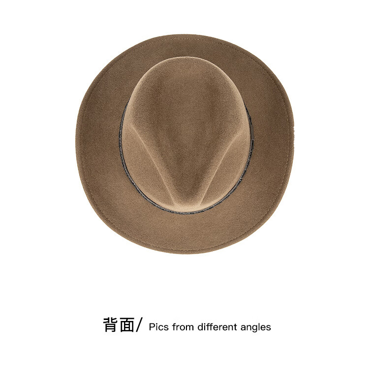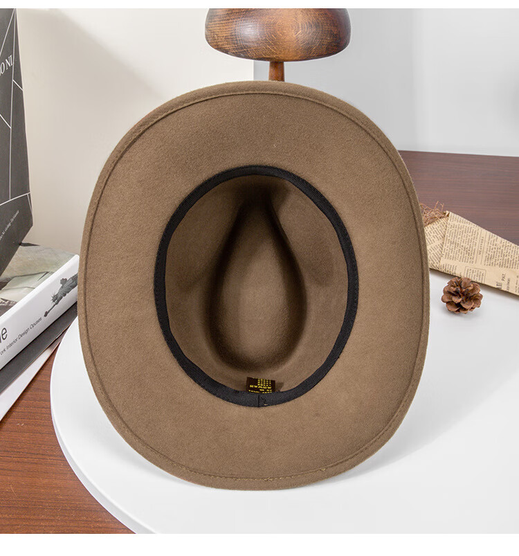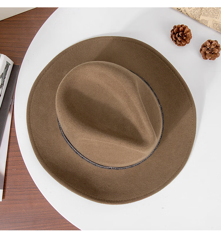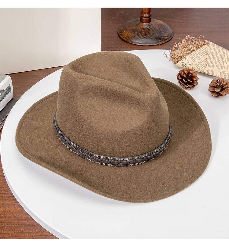 Lee dprre autumn and winter new large brim wool hat men's travel western cowboy knight hat retro European and American style bay brim jazz hat dark camel M (56-58cm)