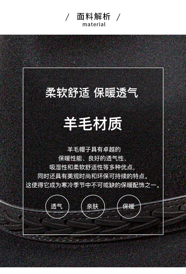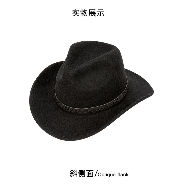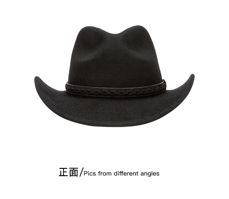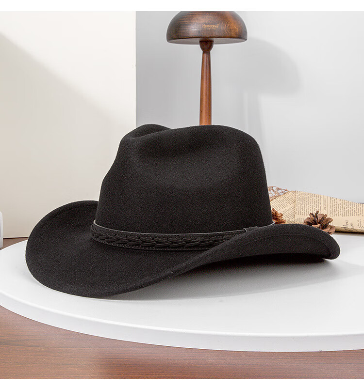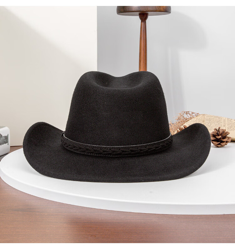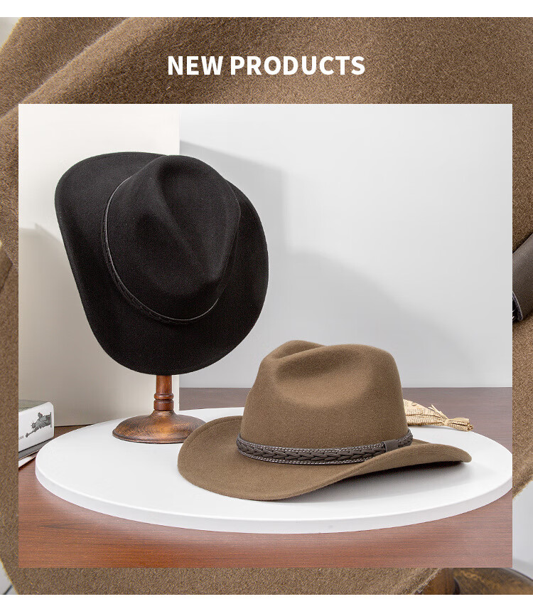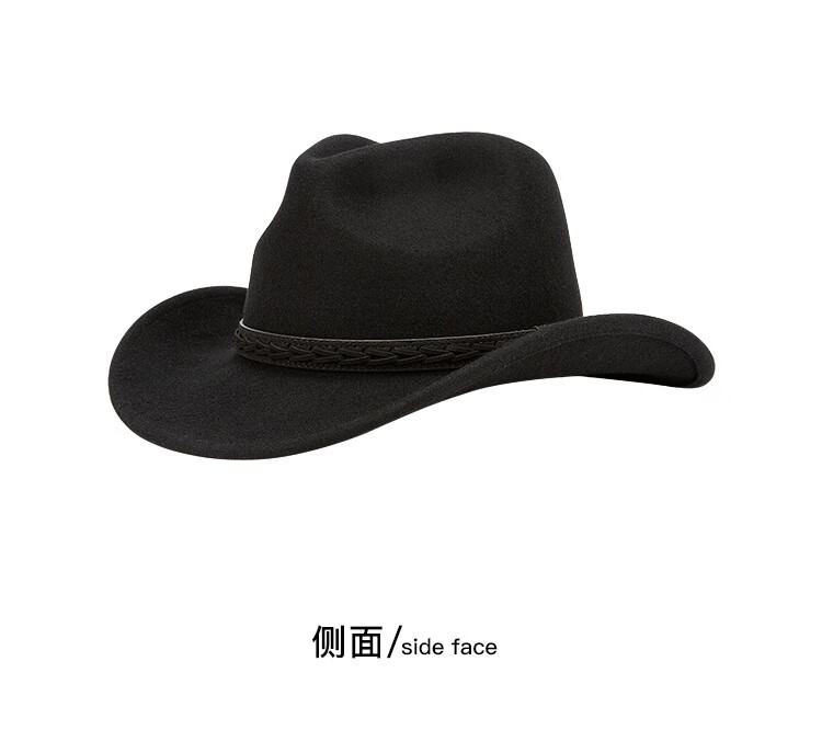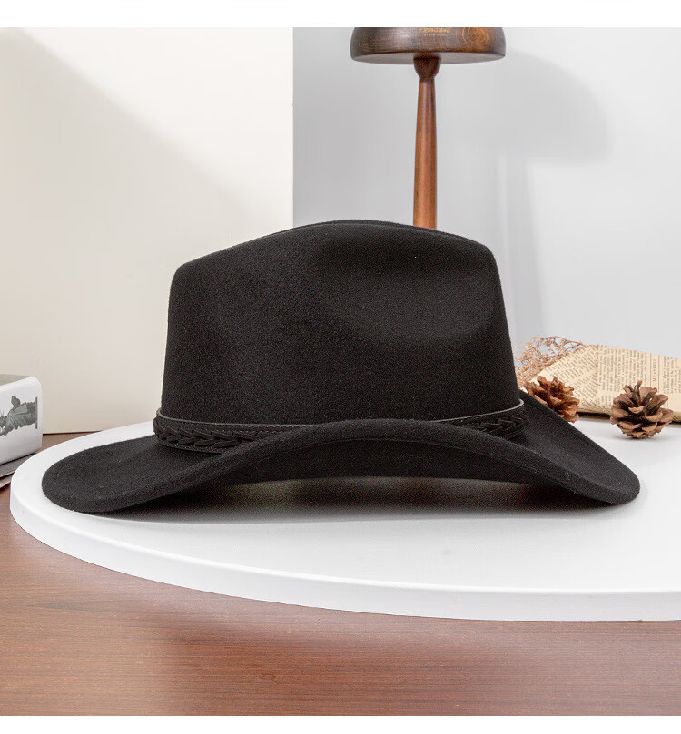 Lee dprre autumn and winter new large brim wool hat men's travel western cowboy knight hat retro European and American style bay brim jazz hat dark camel M (56-58cm)