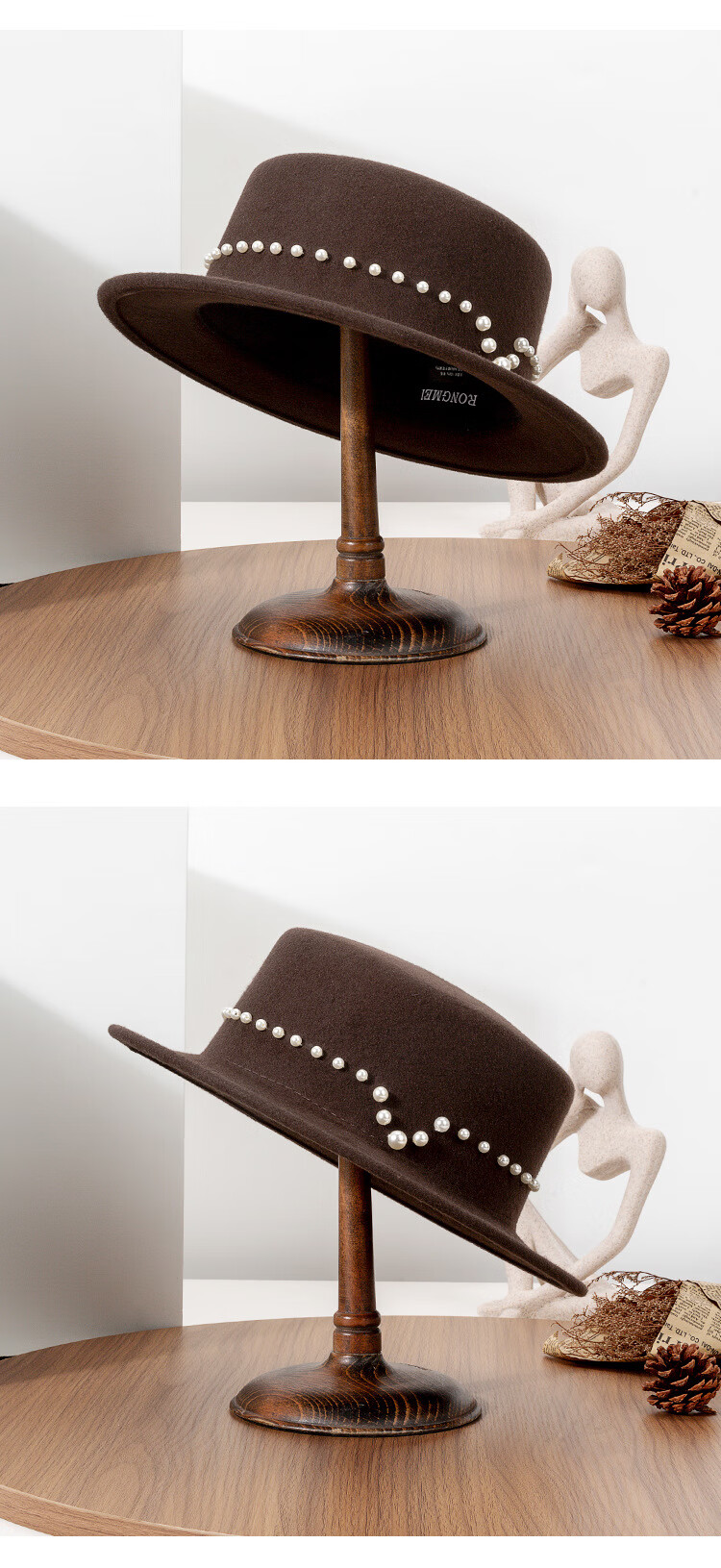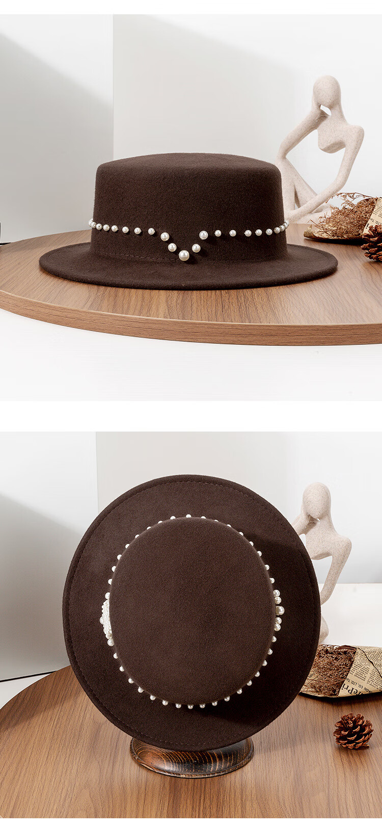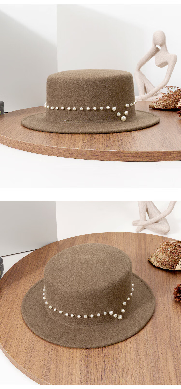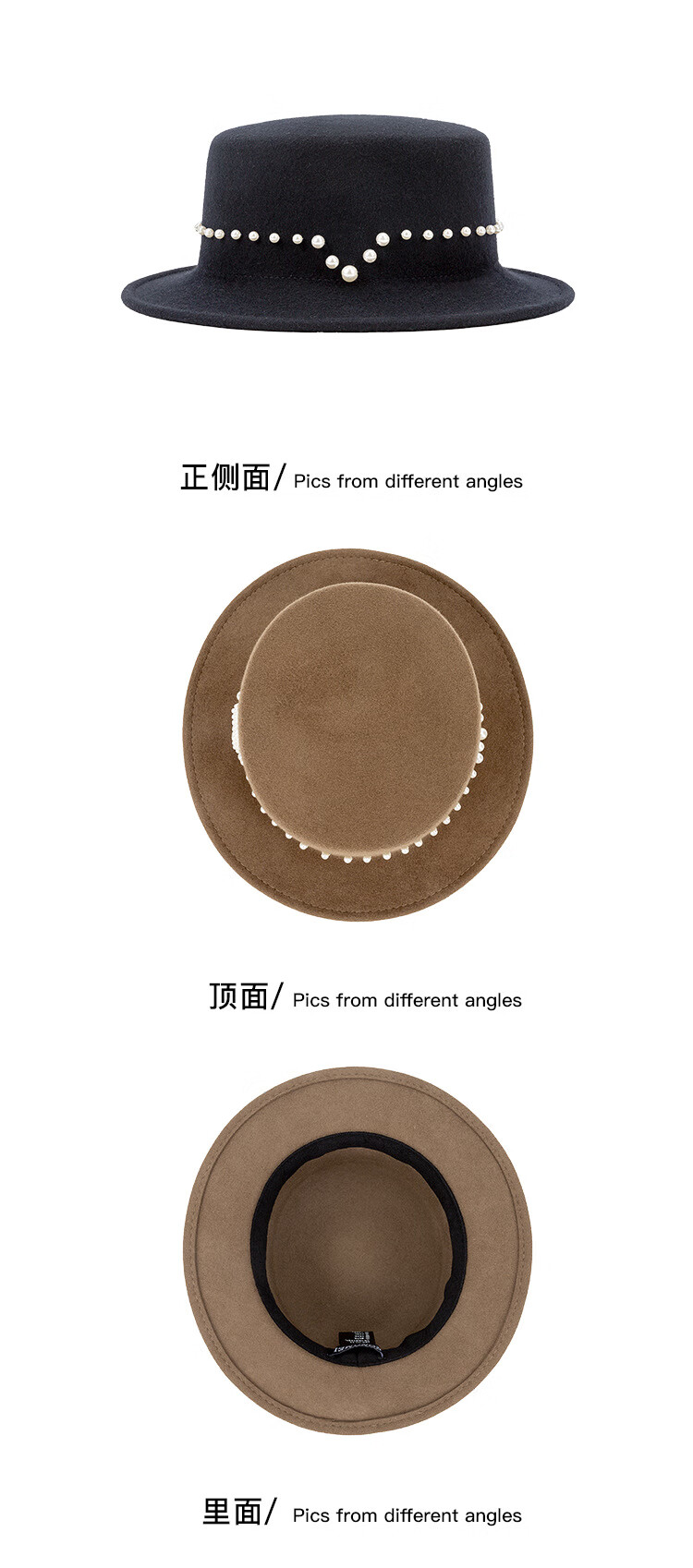 Lee dprre new autumn and winter British large brim flat top hat women's French retro elegant comfortable woolen felt top hat navy blue M size