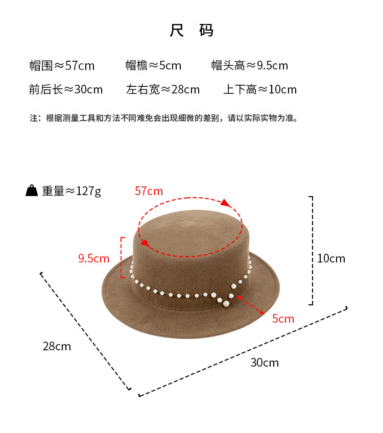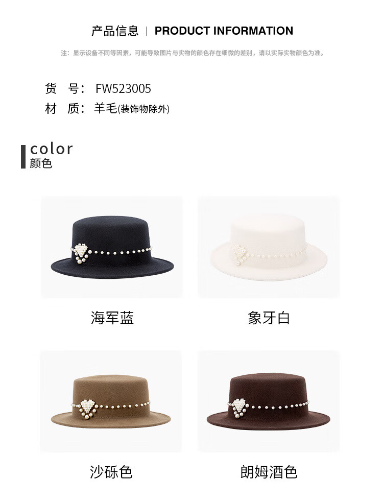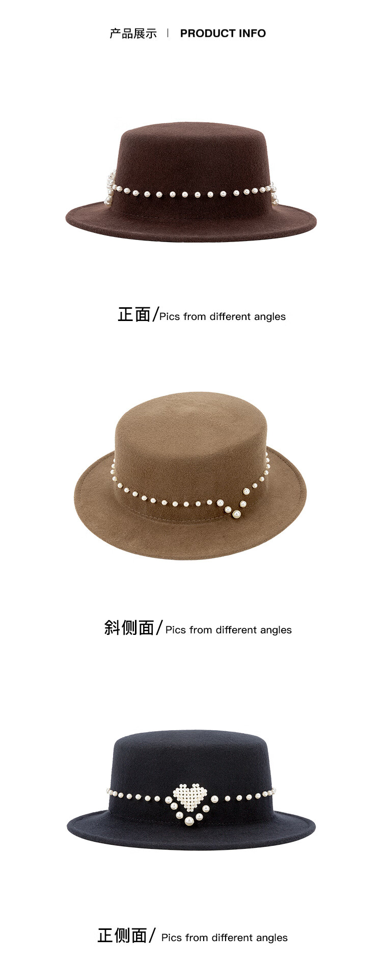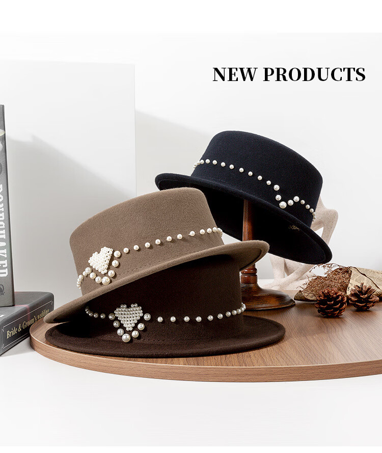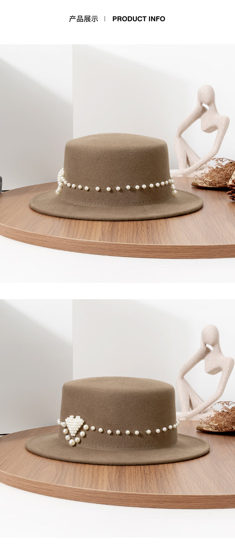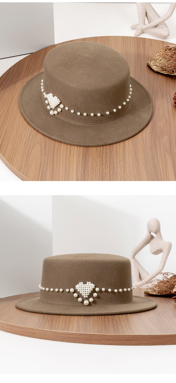 Lee dprre new autumn and winter British large brim flat top hat women's French retro elegant comfortable woolen felt top hat navy blue M size