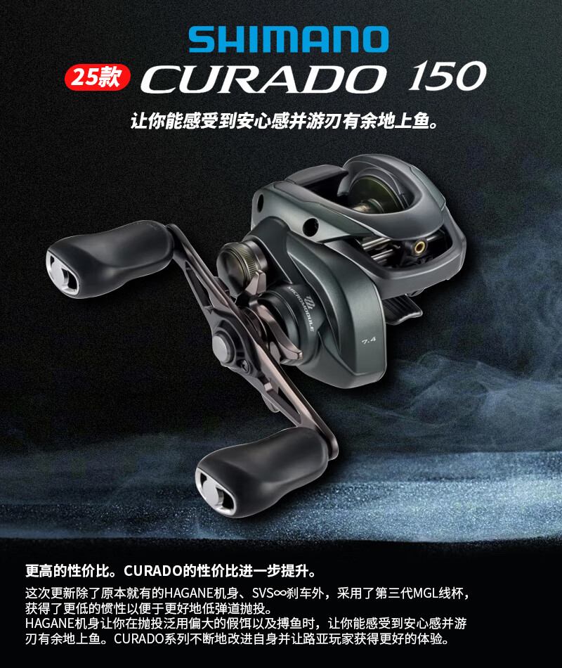 SHIMANO 25 CURADO DC/K/MGL water droplet wheel long-range anti-explosion line imported fish wheel 25 new 150HG/151HG speed ratio 7.4 left-hand type