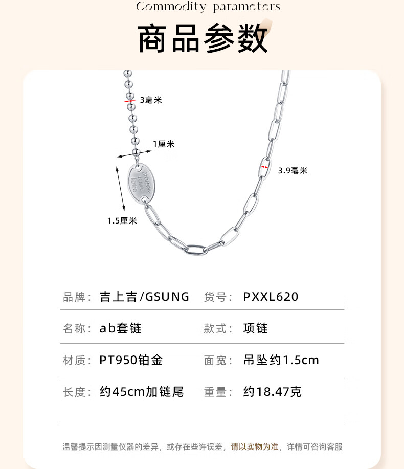 GsunG platinum ab set chain for women PT950 pure platinum necklace English brand pendant simple classic gift for wife Price by gram Contact before bidding