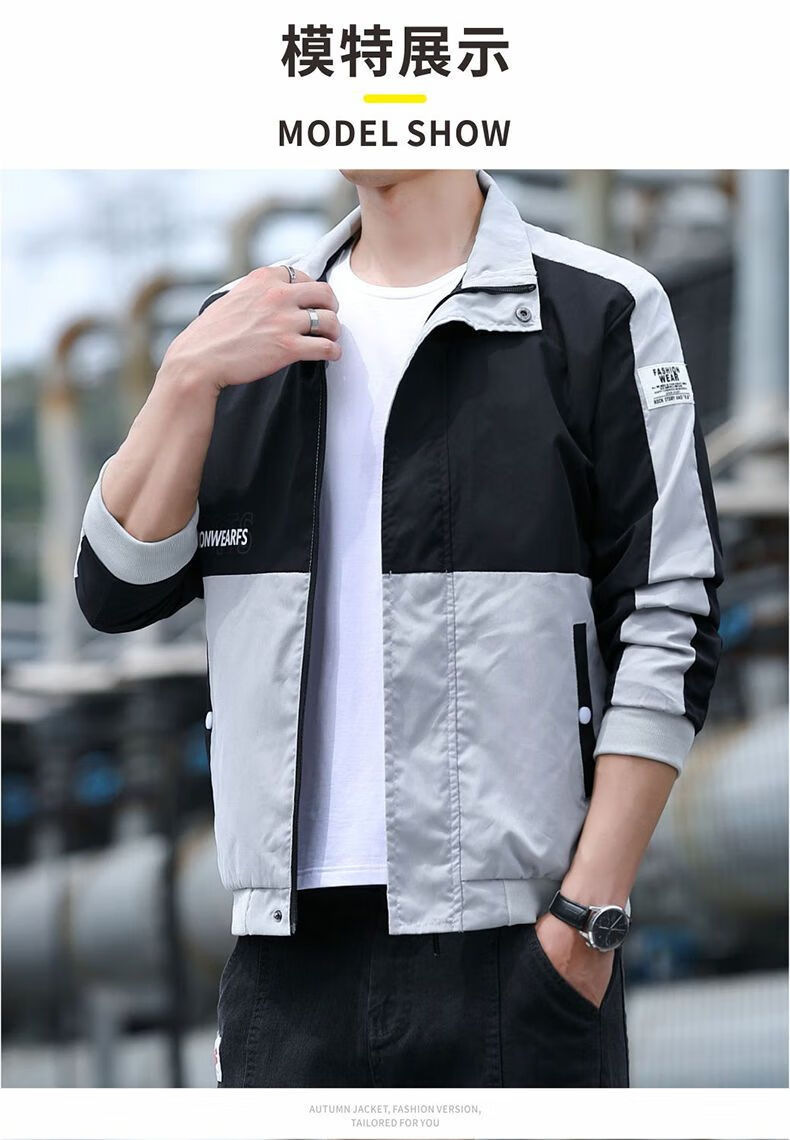 花花公子(PLAYBOY)短款风衣外套男士春秋季2025新款潮流帅气百搭上衣服男装春装夹克 5201【春秋】黑色 薄款 M 【建议85-斤左右】
