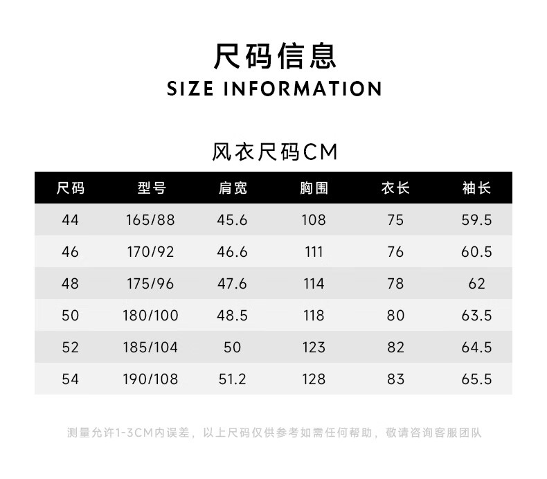 China (cm) 165 / 88-90 170 / 96-98 175 / 108-110 180 / 118-122 185 / 126-130