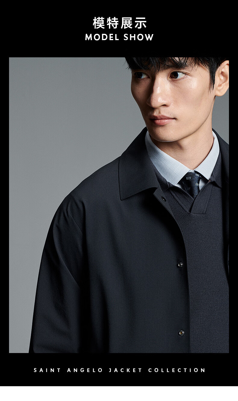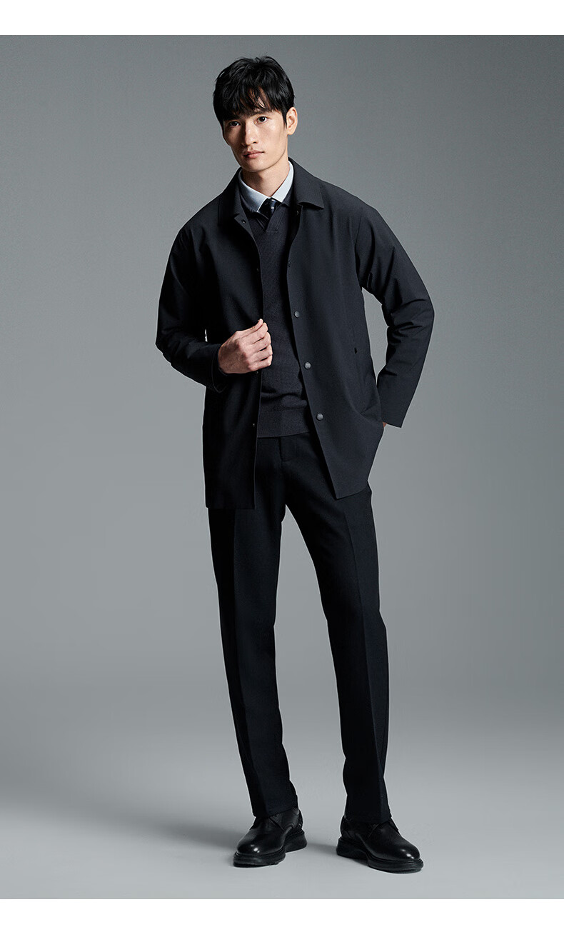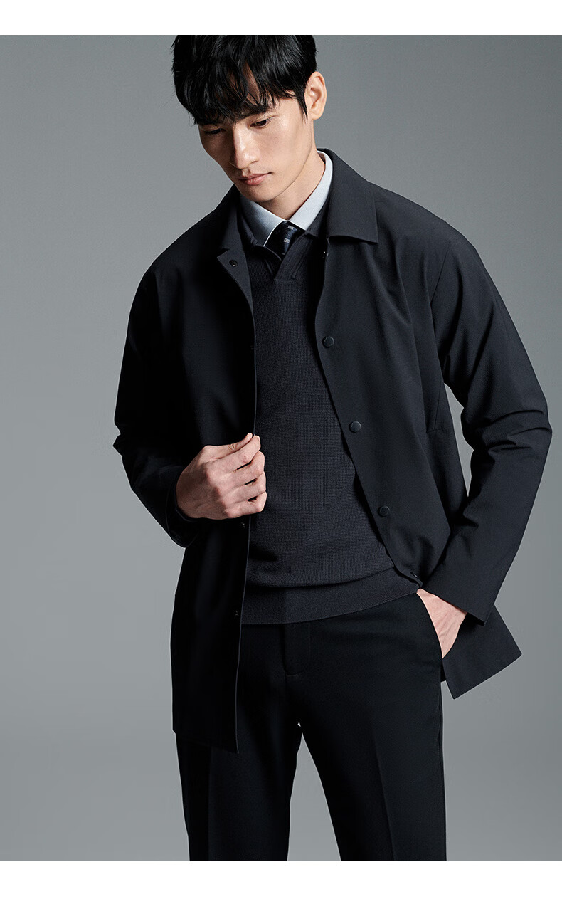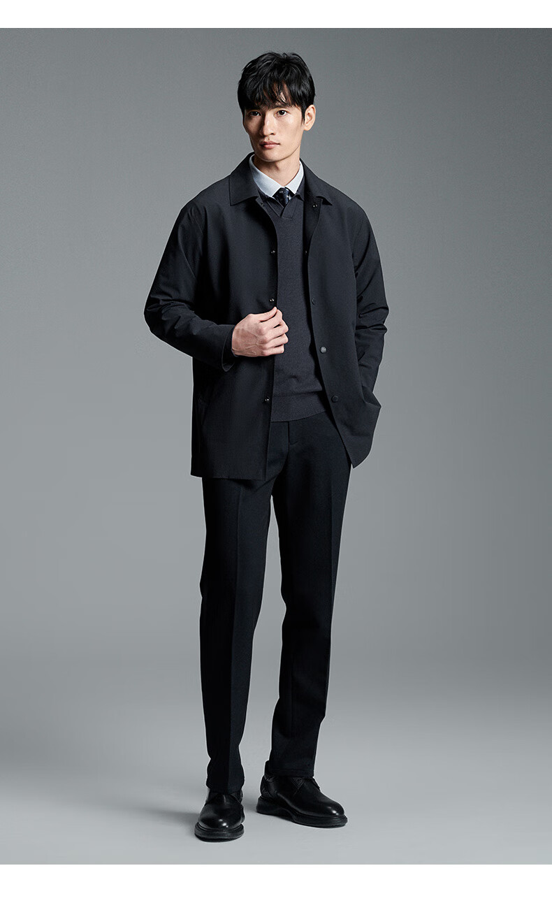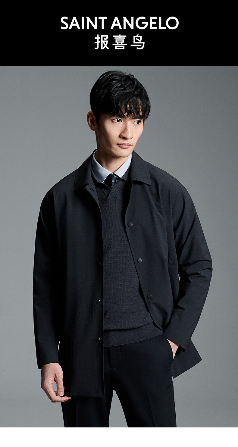 Anniversary Bird Windbreaker Men's Autumn Style Men's Business Casual Lapel Windbreaker Single-breasted Top Solid Color Jacket Men's Navy Blue XL -50(180/100)