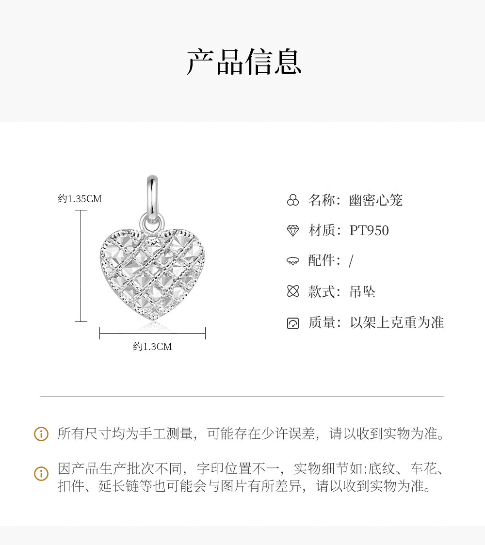 Ming brand jewelry platinum pendant Pt950 white gold secret heart cage love pendant BFC0108 platinum pendant about 3.57 grams
