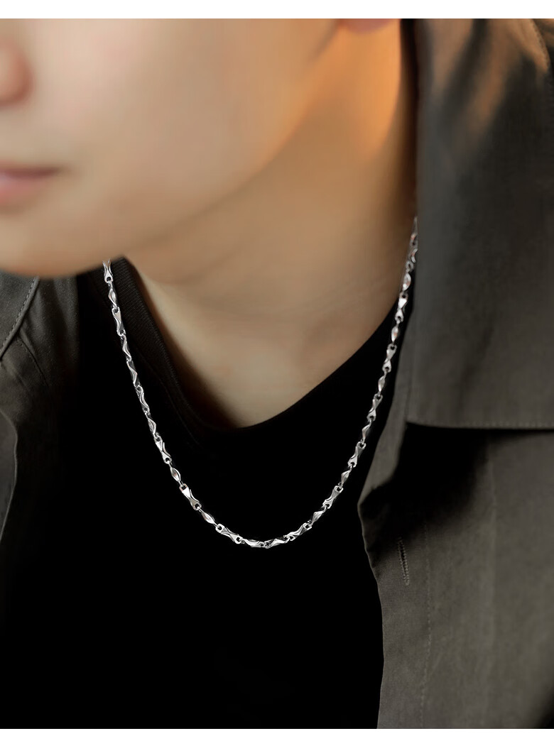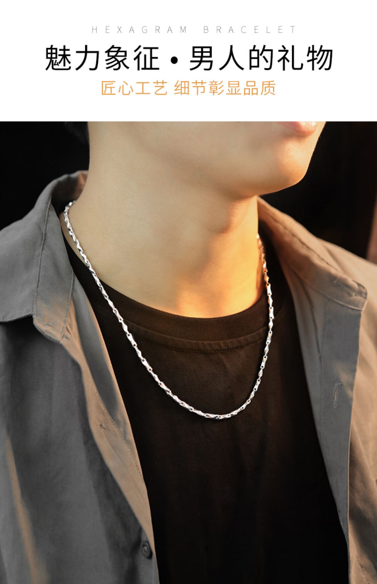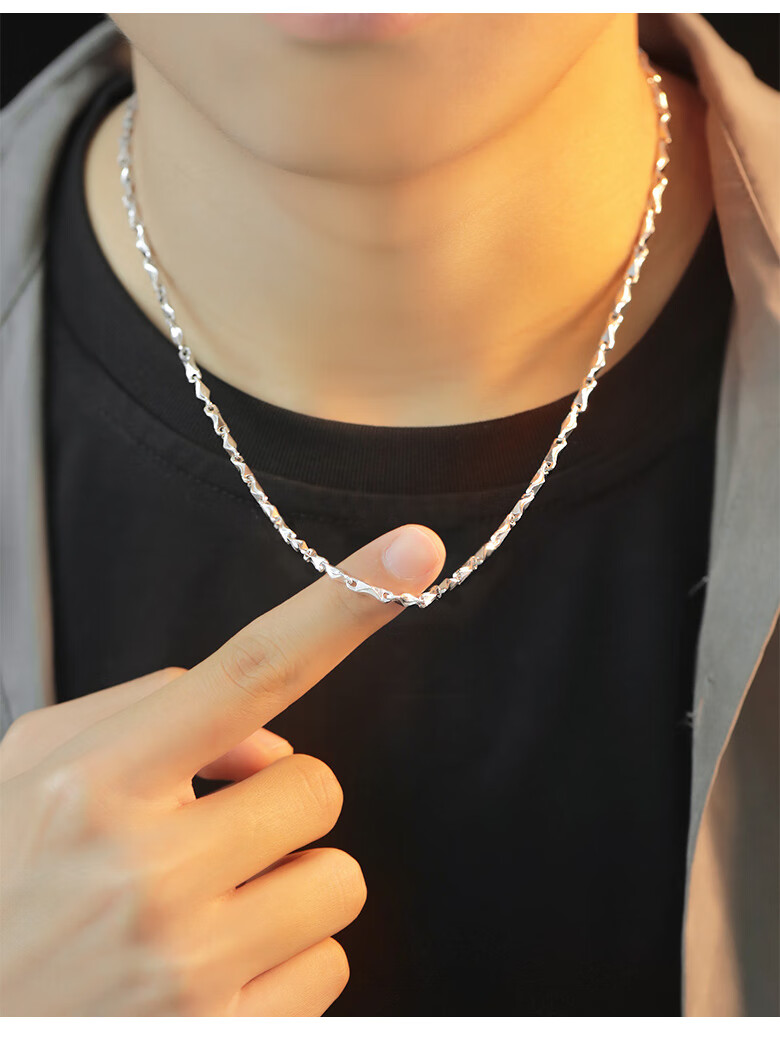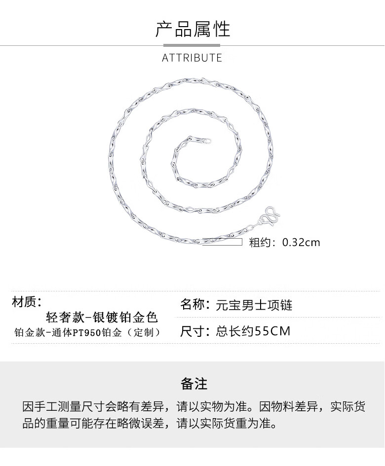 MZMZ brand PT950 platinum necklace men's ingot clavicle chain versatile trendy high-end birthday gift for boyfriend light luxury model - width 3mm long 55cm
