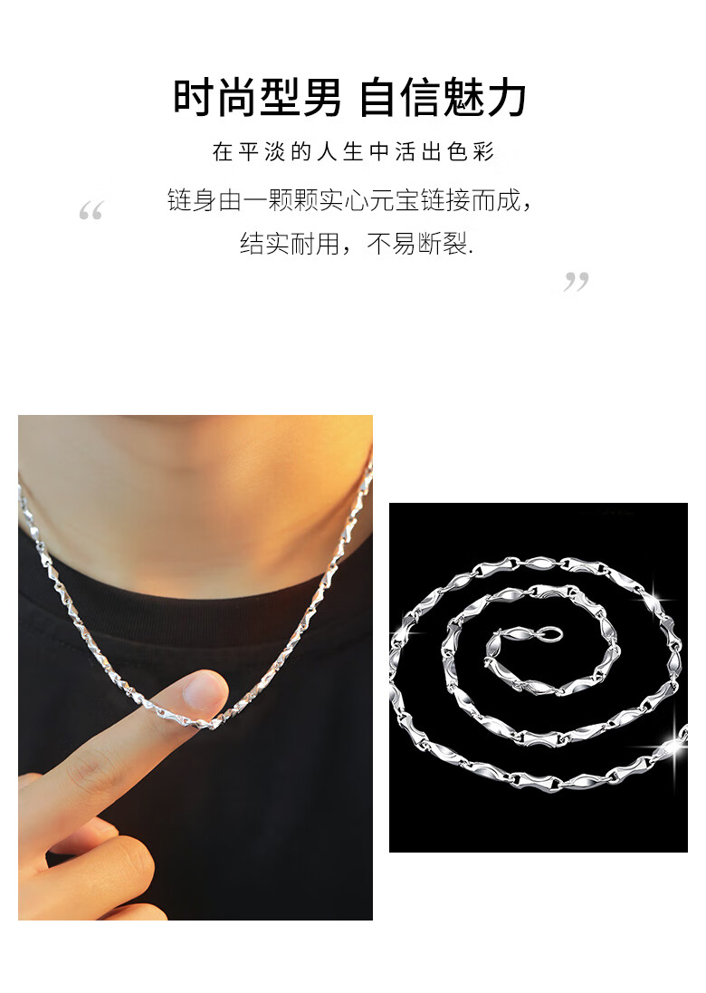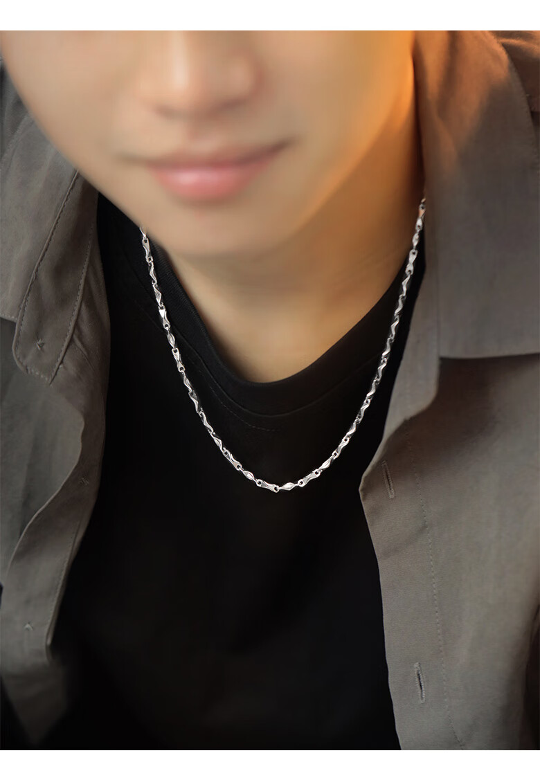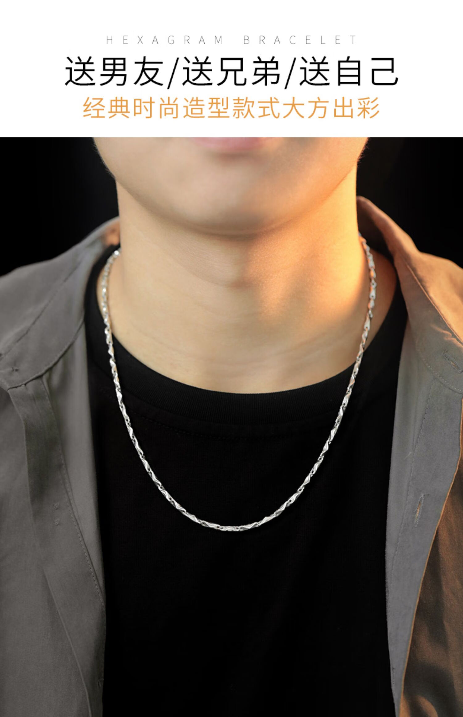 MZMZ brand PT950 platinum necklace men's ingot clavicle chain versatile trendy high-end birthday gift for boyfriend light luxury model - width 3mm long 55cm