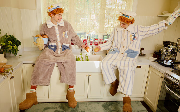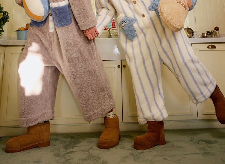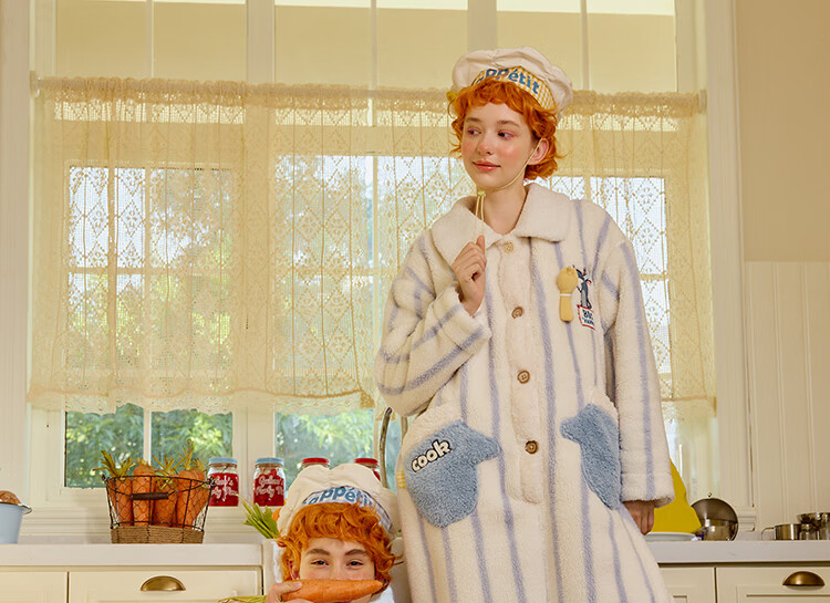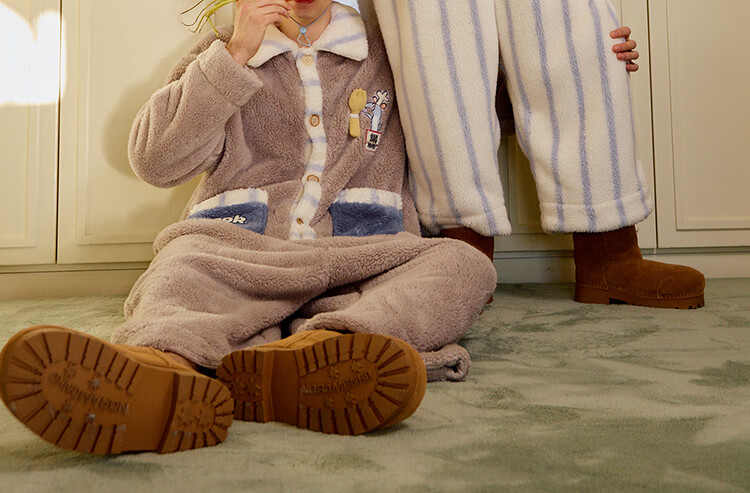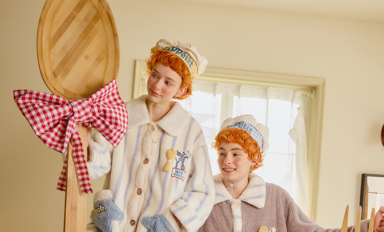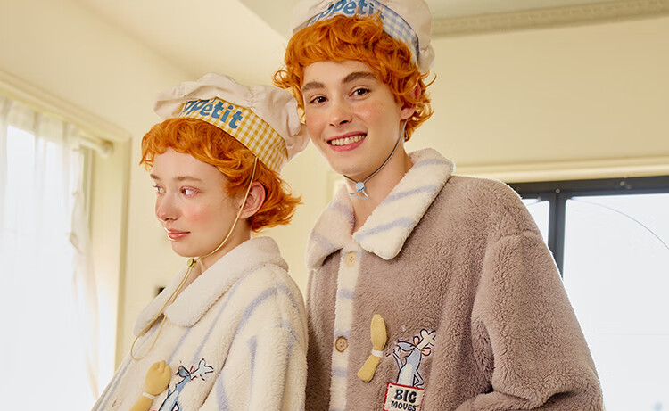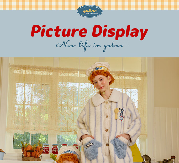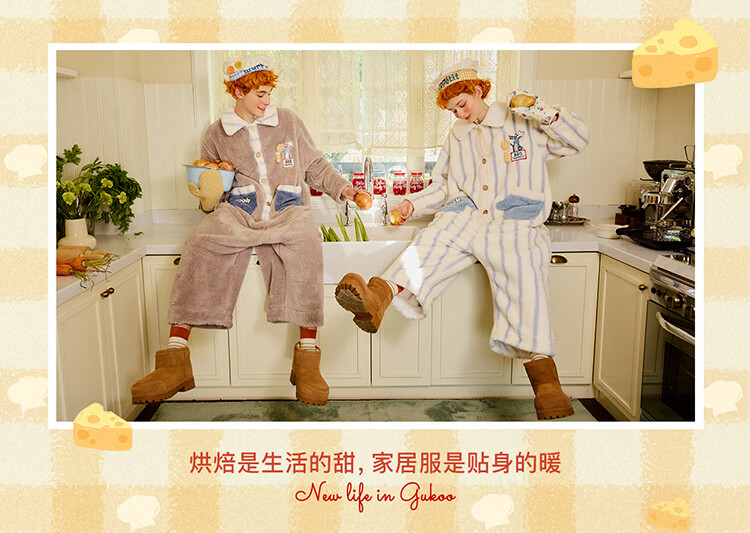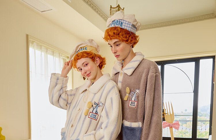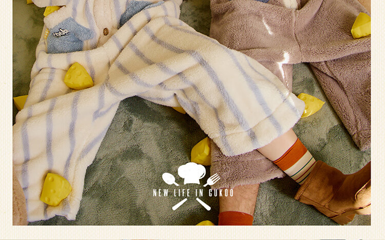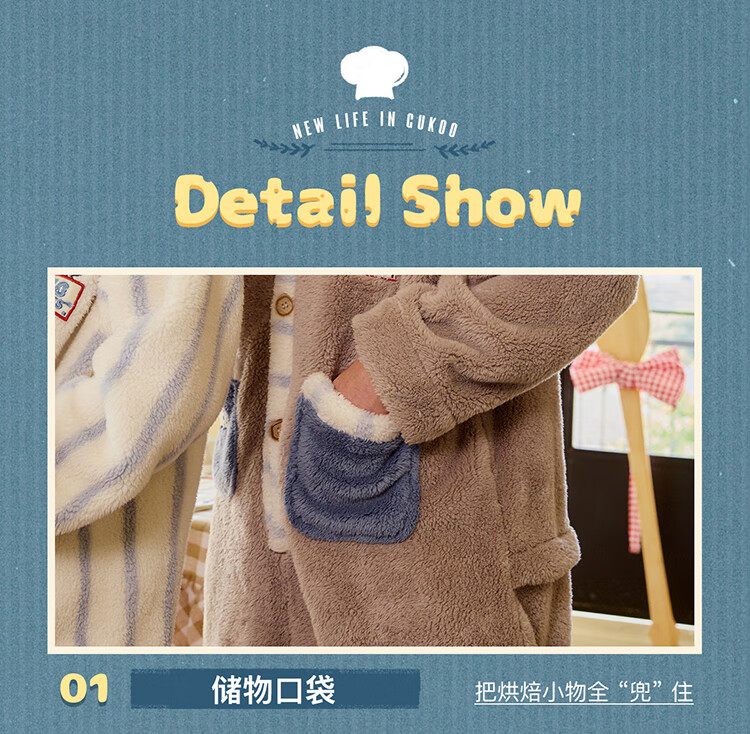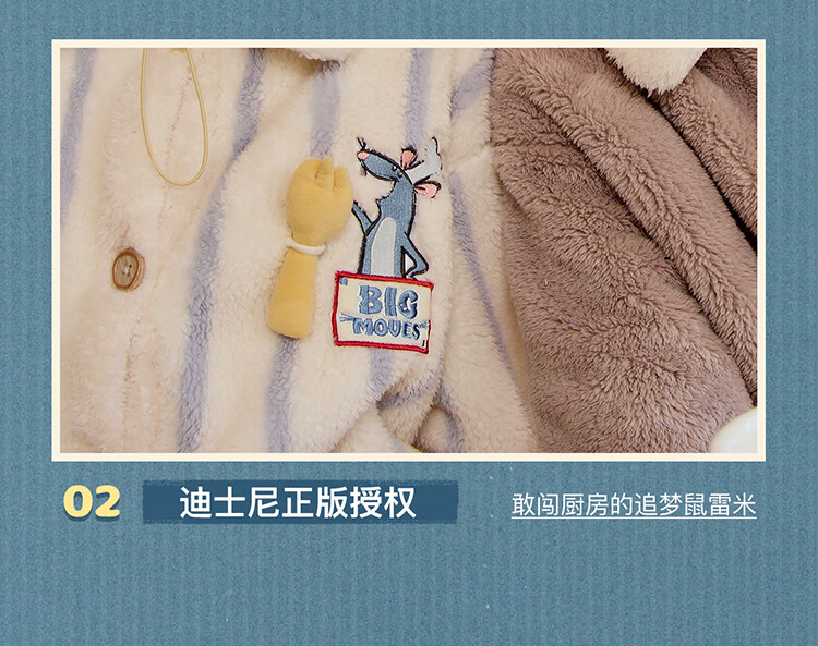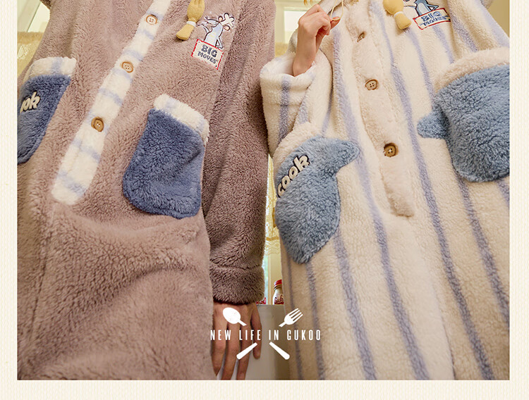 Gukoo Couple Pajamas Winter Coral Velvet New Ratatouille Joint Women's Homewear Jumpsuit Men's Pajamas D Light Blue Men's Jumpsuit XL