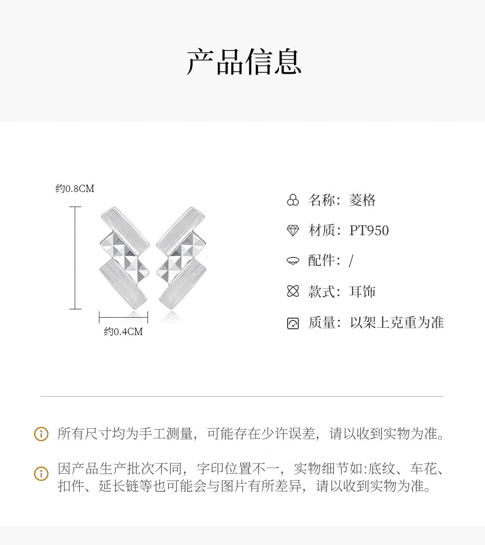 Ming brand jewelry platinum earrings Pt950 white gold diamond earrings BFH0145 platinum earrings about 0.87 grams