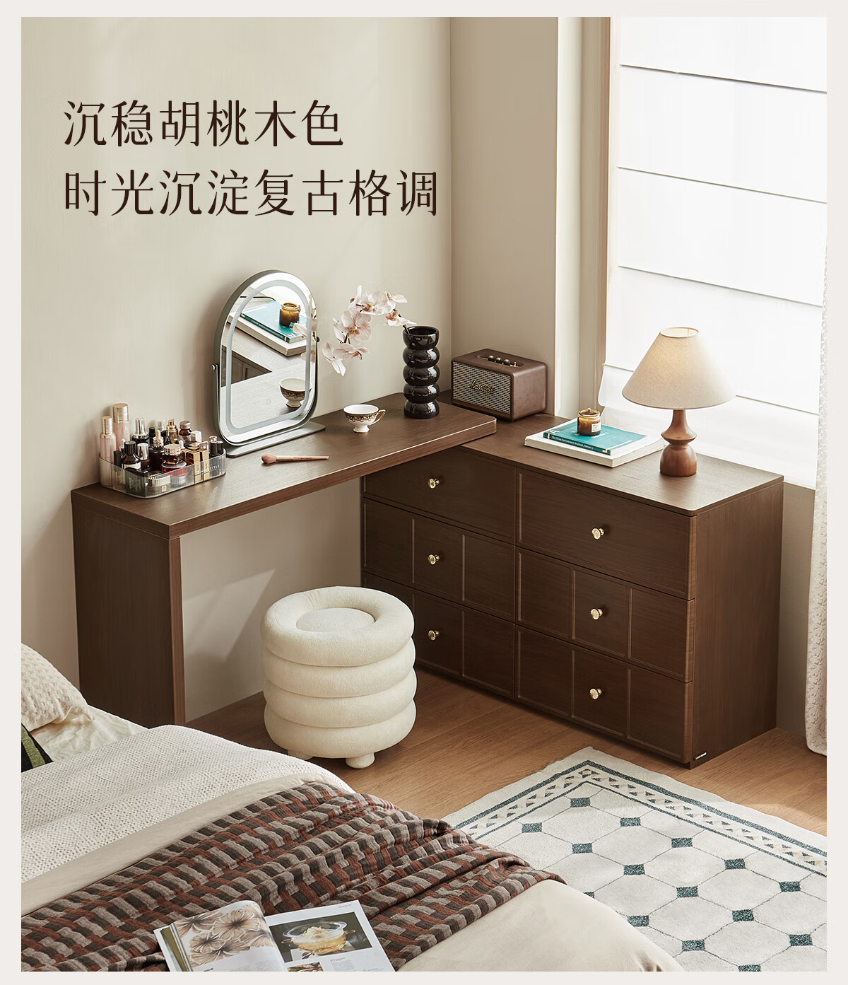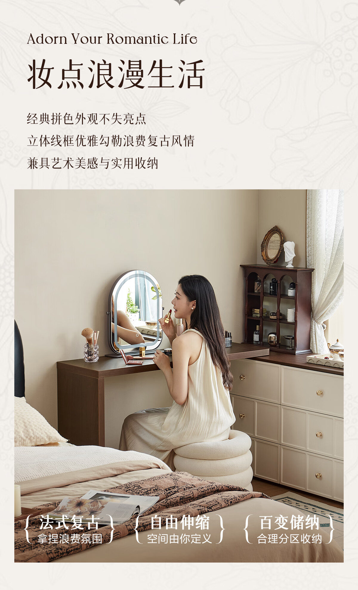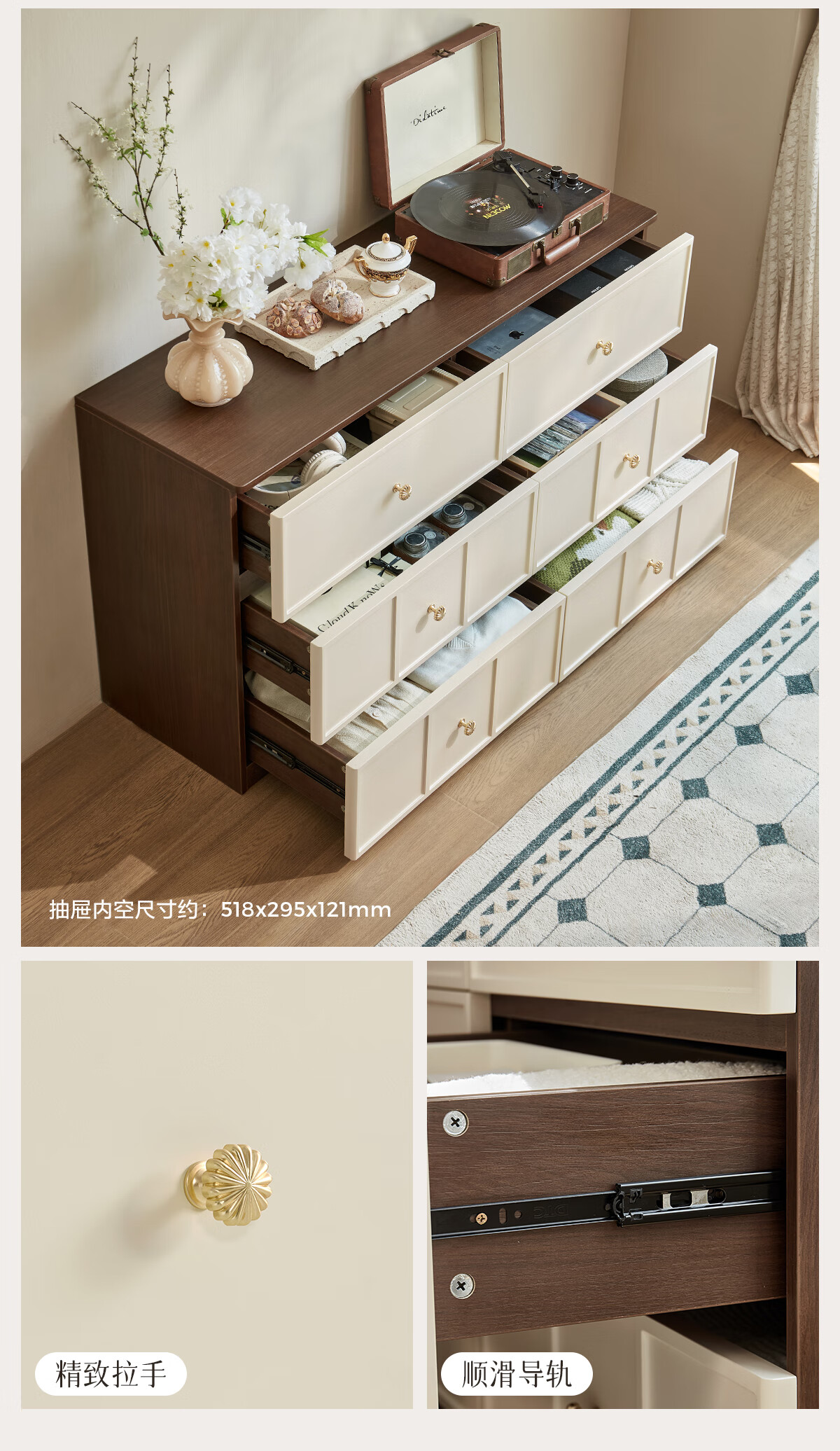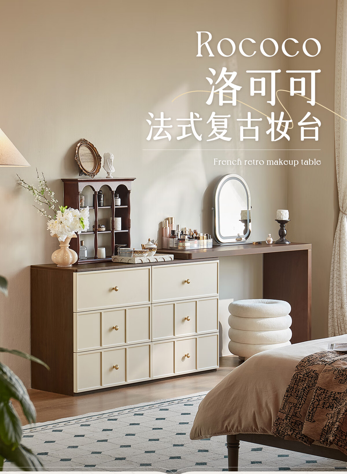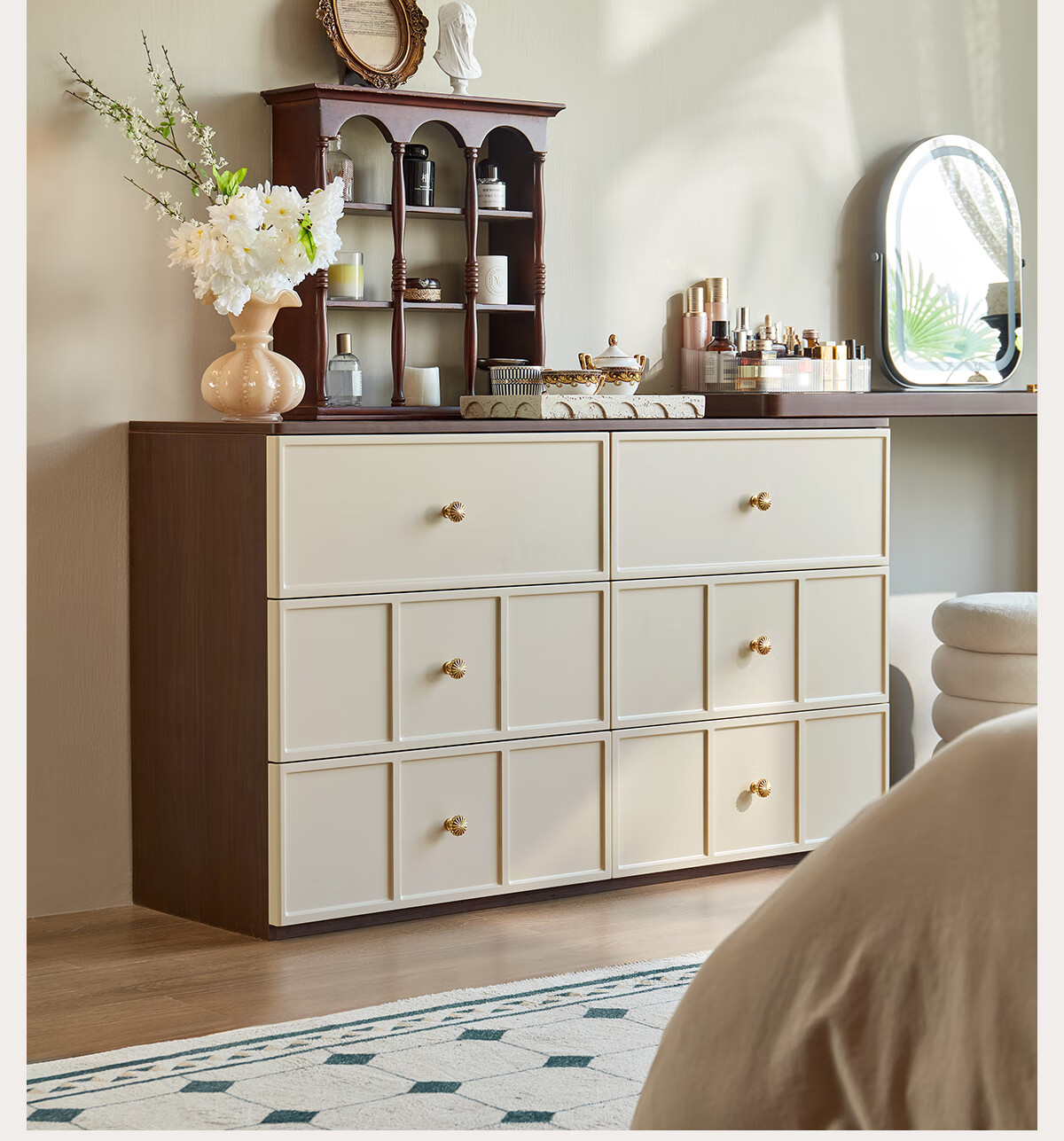 Lin's Home Retro Six Drawer Cabinet Dressing Table Integrated French Dressing Table Master Bedroom High-Quality Maple Sugar Series RC2C Cream | Six Drawer Cabinet Dressing Table