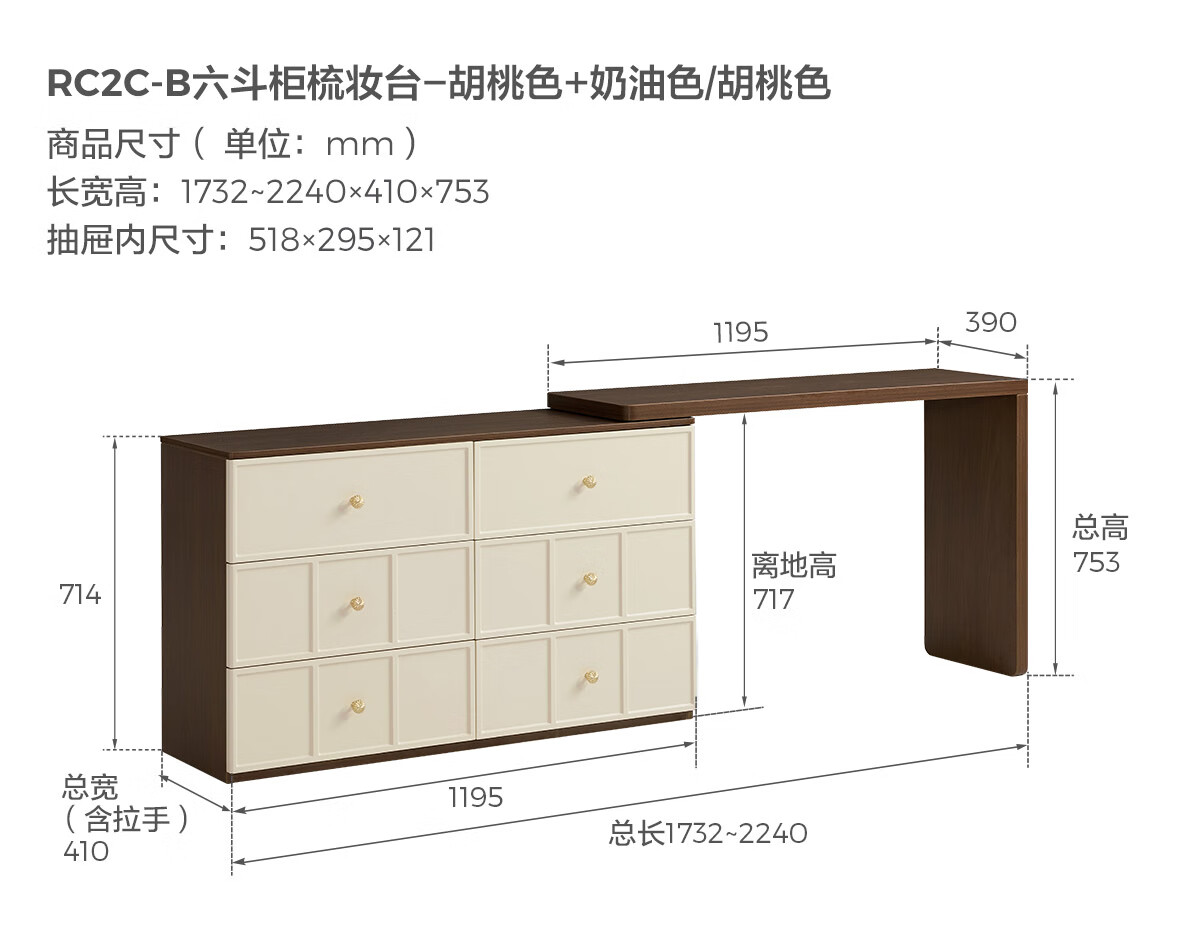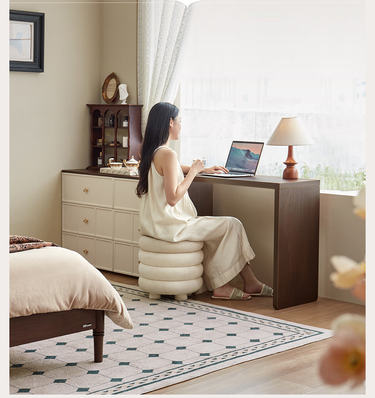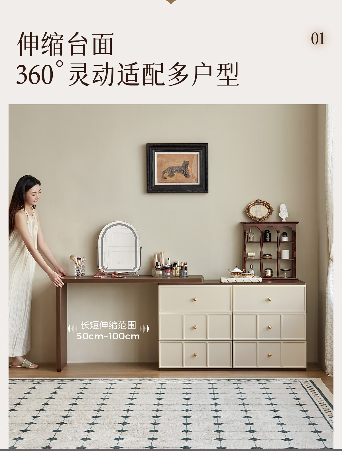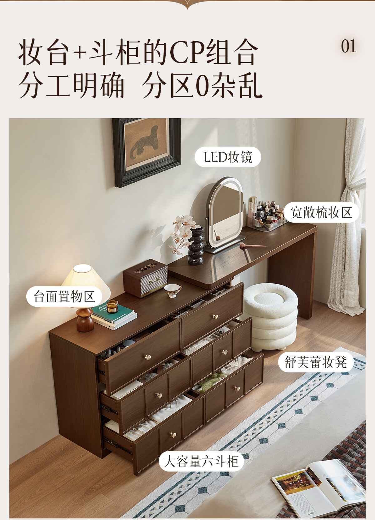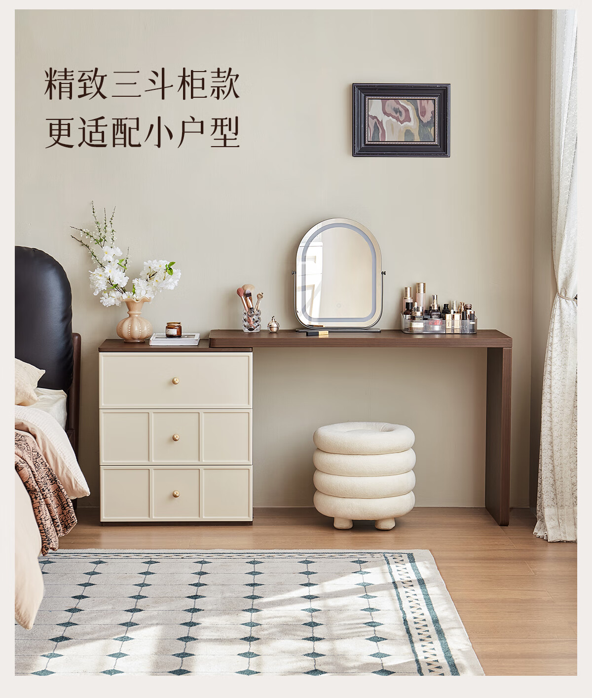 Lin's Home Retro Six Drawer Cabinet Dressing Table Integrated French Dressing Table Master Bedroom High-Quality Maple Sugar Series RC2C Cream | Six Drawer Cabinet Dressing Table