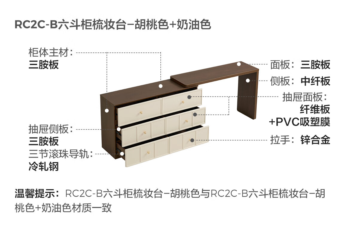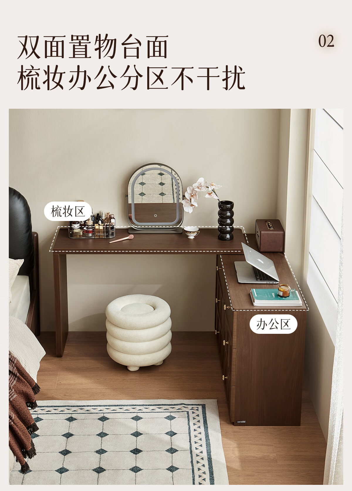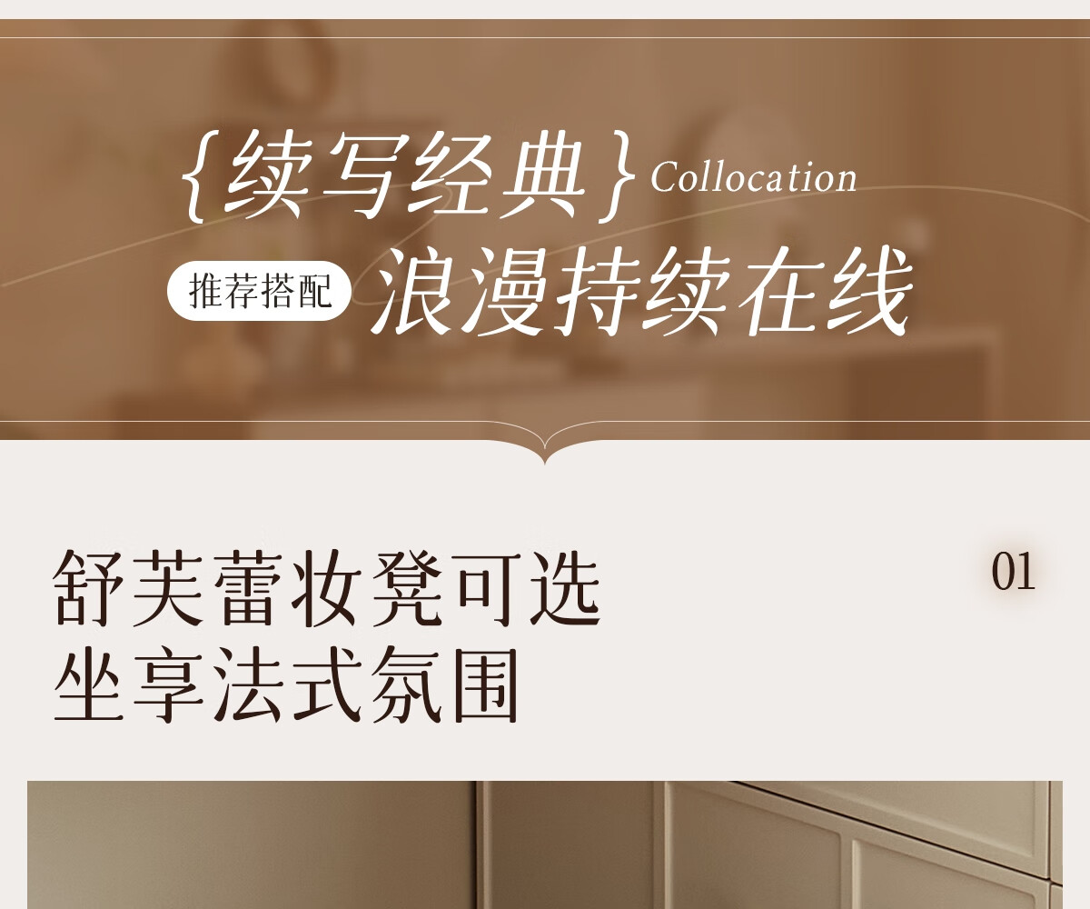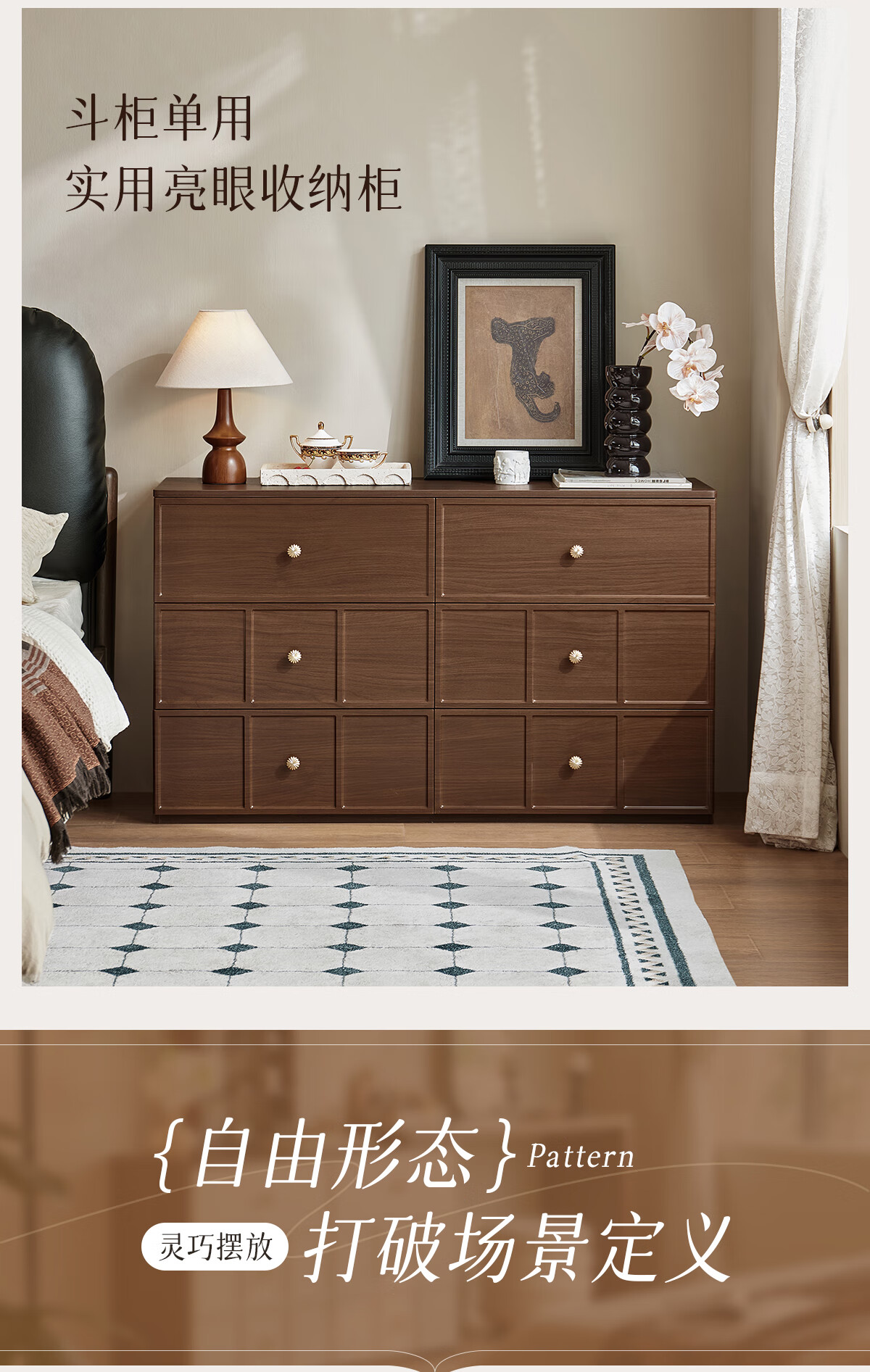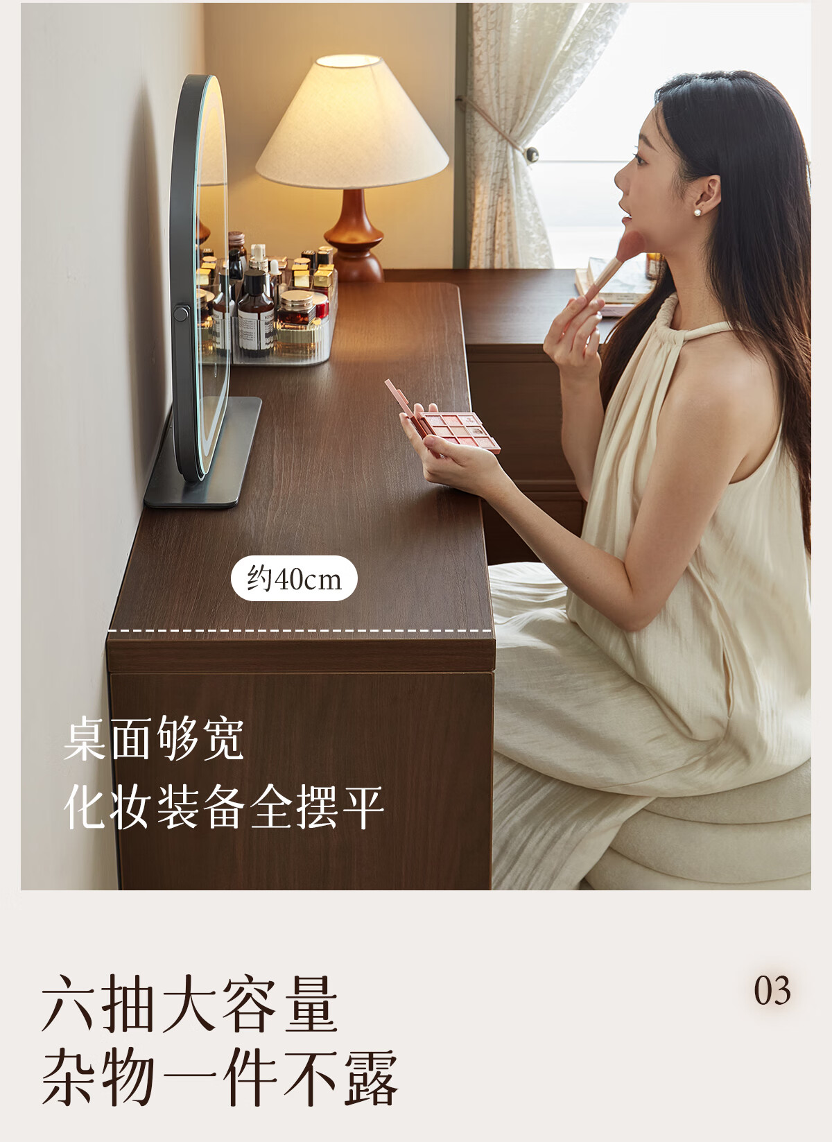 Lin's Home Retro Six Drawer Cabinet Dressing Table Integrated French Dressing Table Master Bedroom High-Quality Maple Sugar Series RC2C Cream | Six Drawer Cabinet Dressing Table