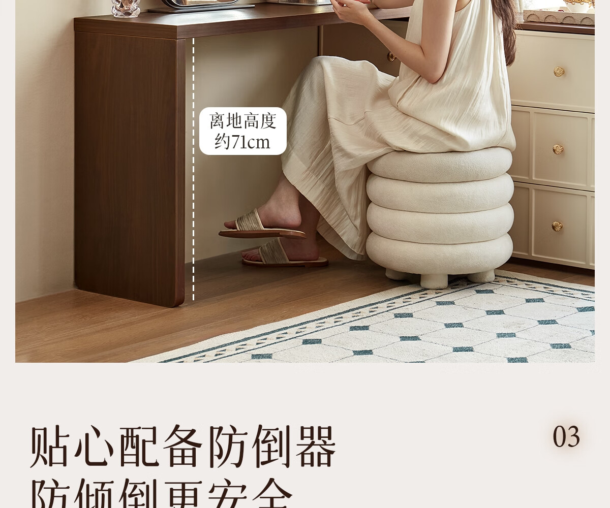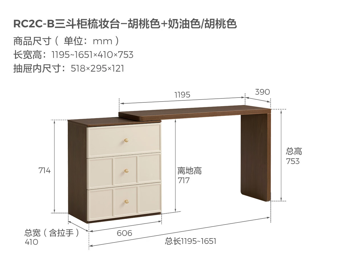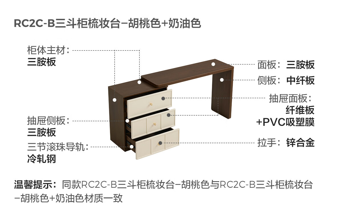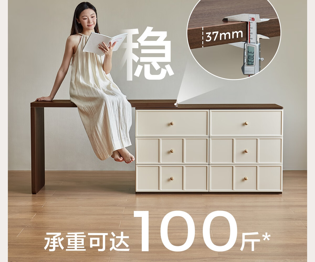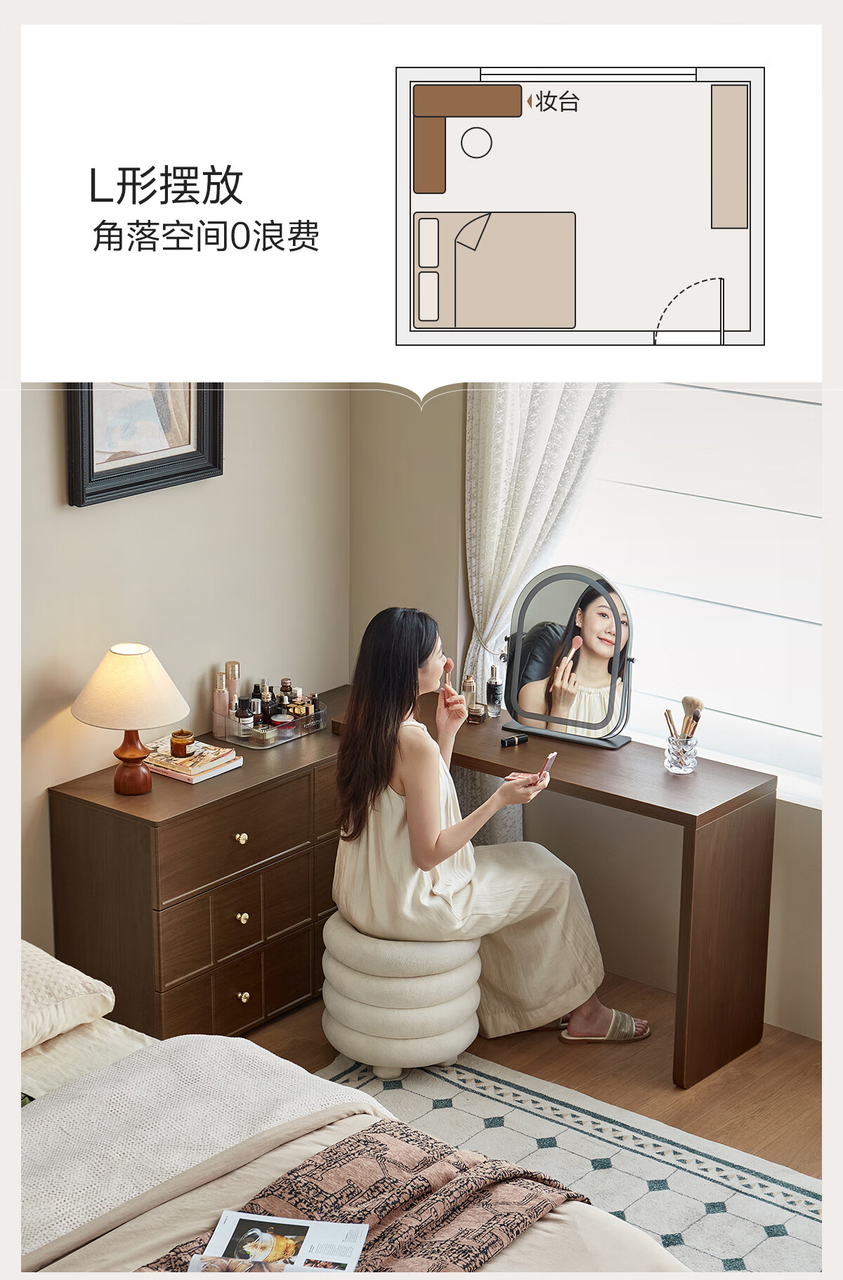 Lin's Home Retro Six Drawer Cabinet Dressing Table Integrated French Dressing Table Master Bedroom High-Quality Maple Sugar Series RC2C Cream | Six Drawer Cabinet Dressing Table