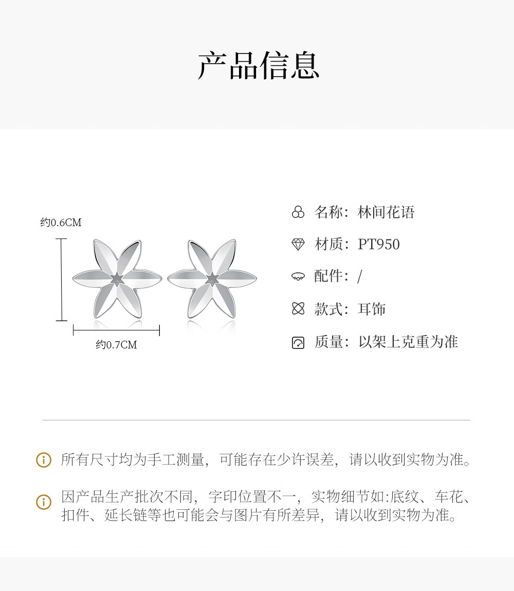 Ming brand jewelry platinum earrings Pt950 white gold forest flower earrings BFH0144 platinum earrings about 1.07 grams