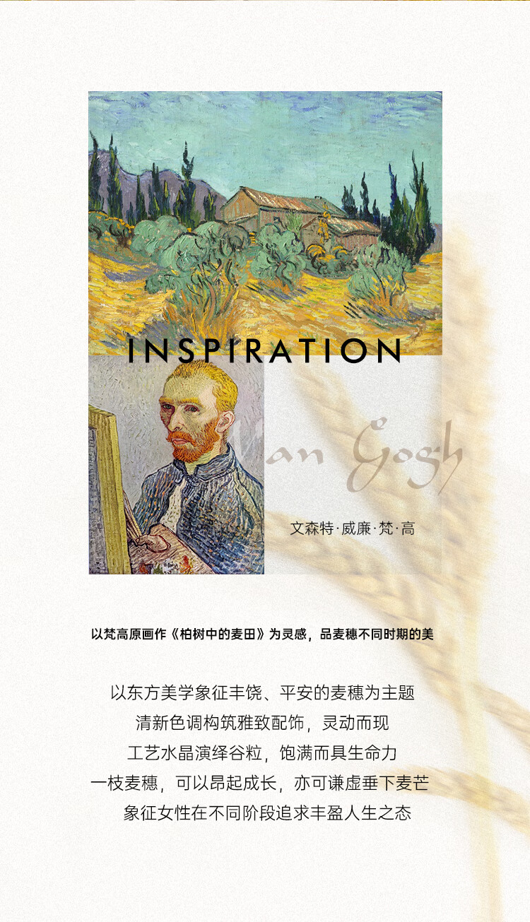 She s Qianzi Van Gogh picked up wheat ears exquisite brooch high-end corsage versatile temperament pin accessories birthday gift for women brown F0