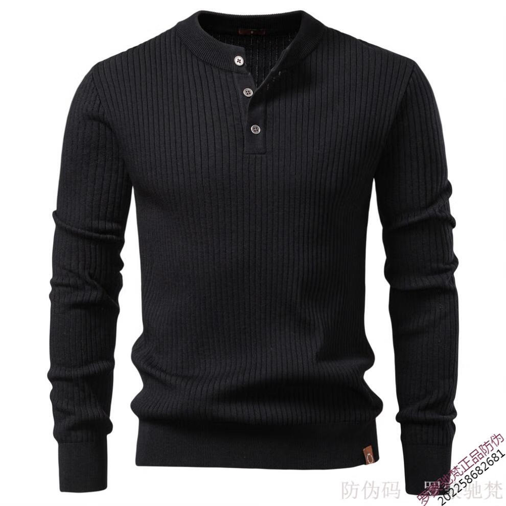 ROMON 2025 New Autumn and Winter Heavy Retro Men's Stand Collar Knitted Sweater Men's Jacket Henry Collar Knitted Sweater Anti-pilling Black S 115-130Jin Jin is equal to about 0.5 kg