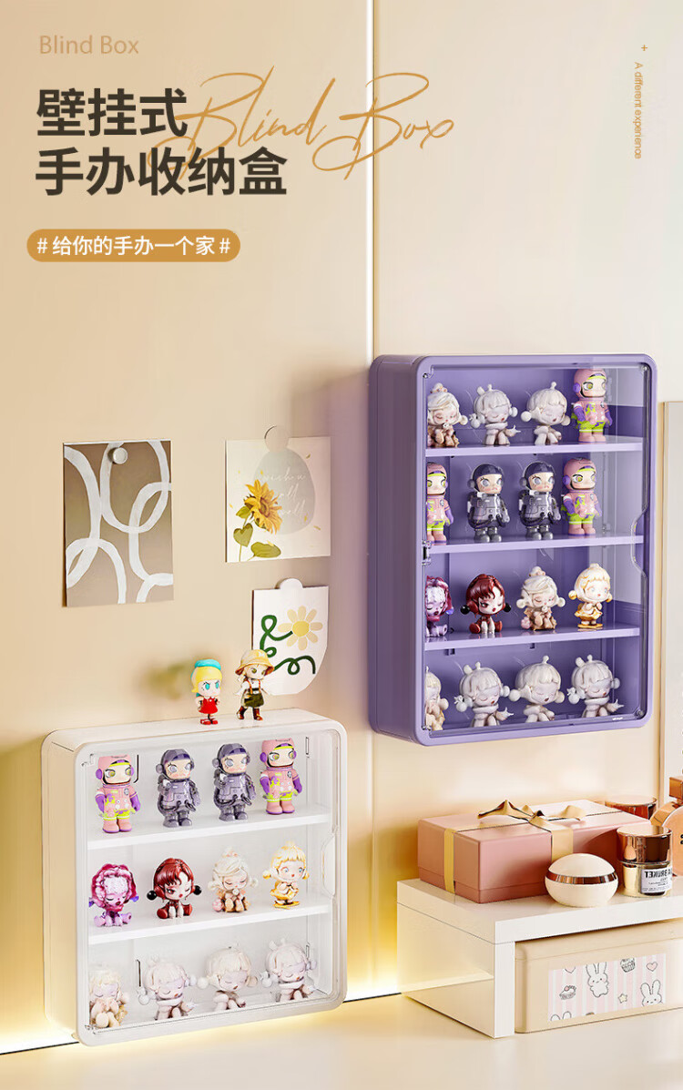 Ershanji Wall-mounted Figure Display Cabinet Transparent Blind Box Storage Box Wall Doll Bubble Mart Display Rack Blind Box Display Rack Wall-mounted White Large