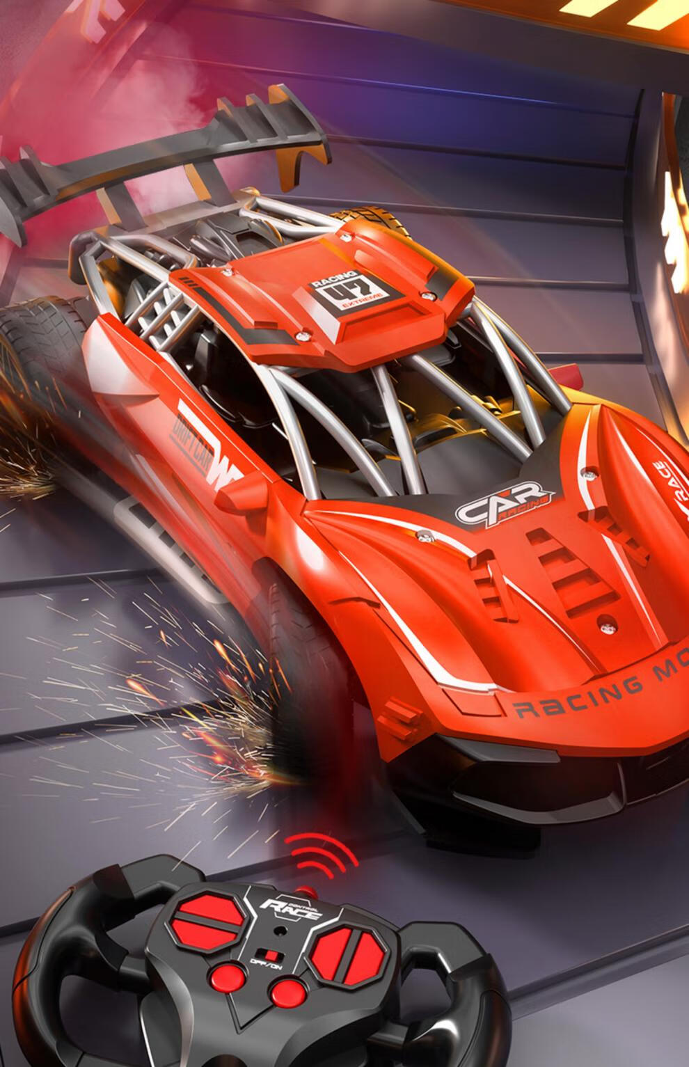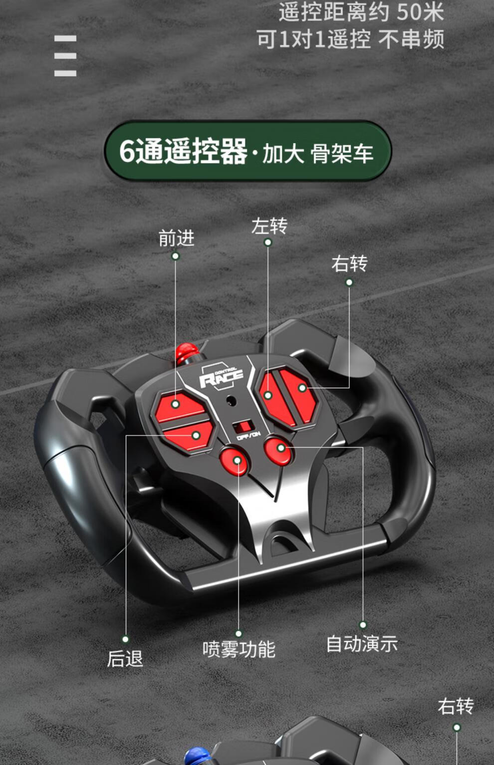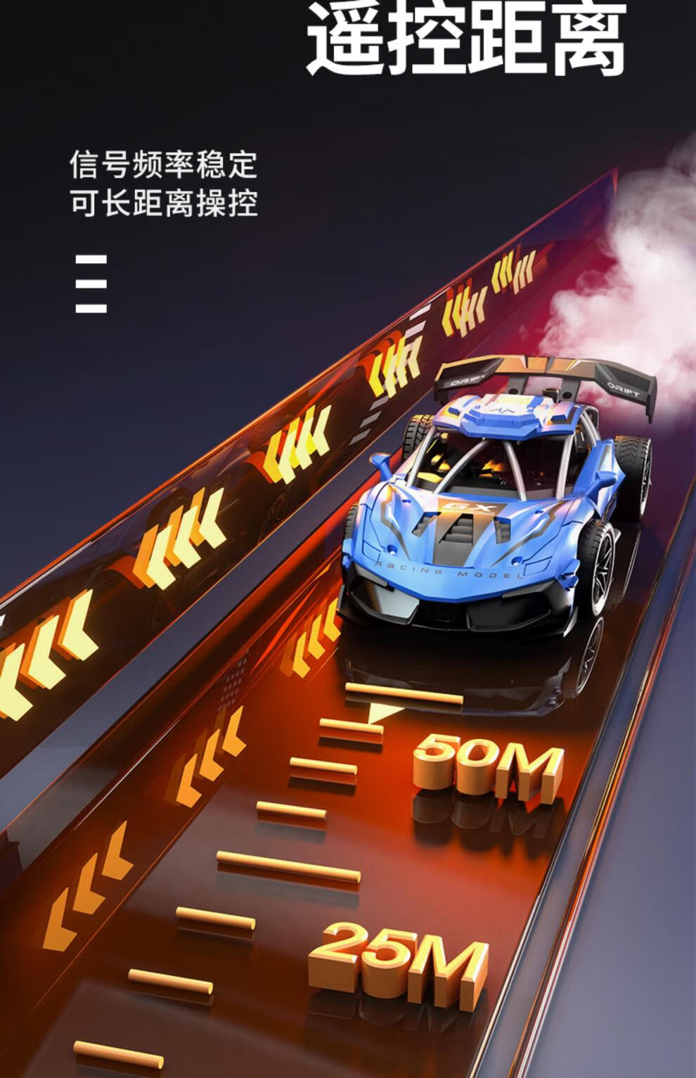 Zhouke 25 remote control cars are resistant to fall, remote control spray racing car, charging, drifting, small electric, 3 years old, 4 years old, 21cm, black and blue, Borgadi supercar, standard single battery life of 35 minutes + replacement if broken