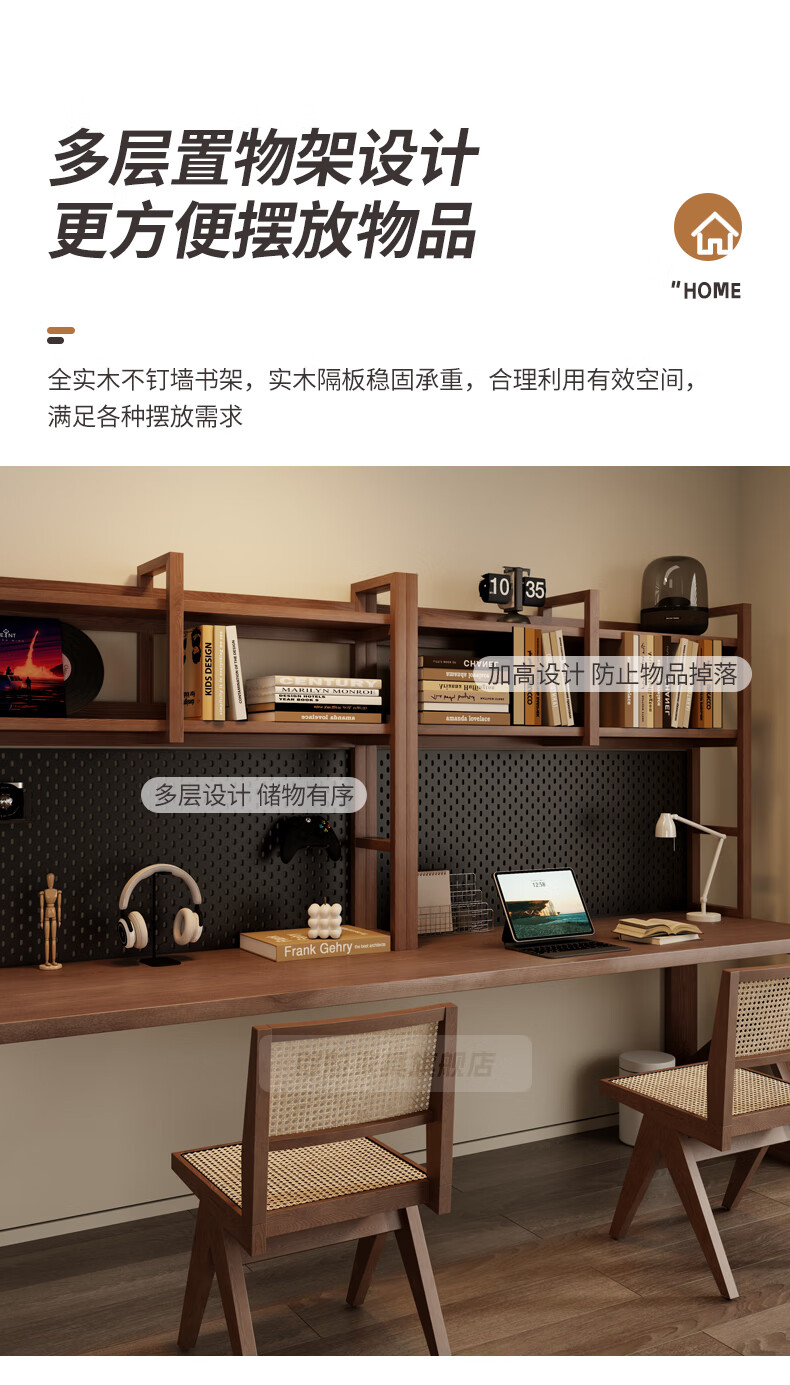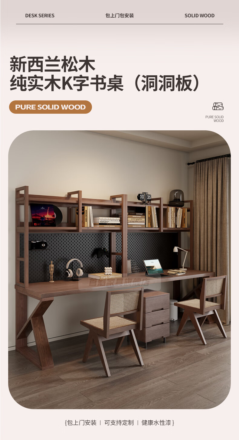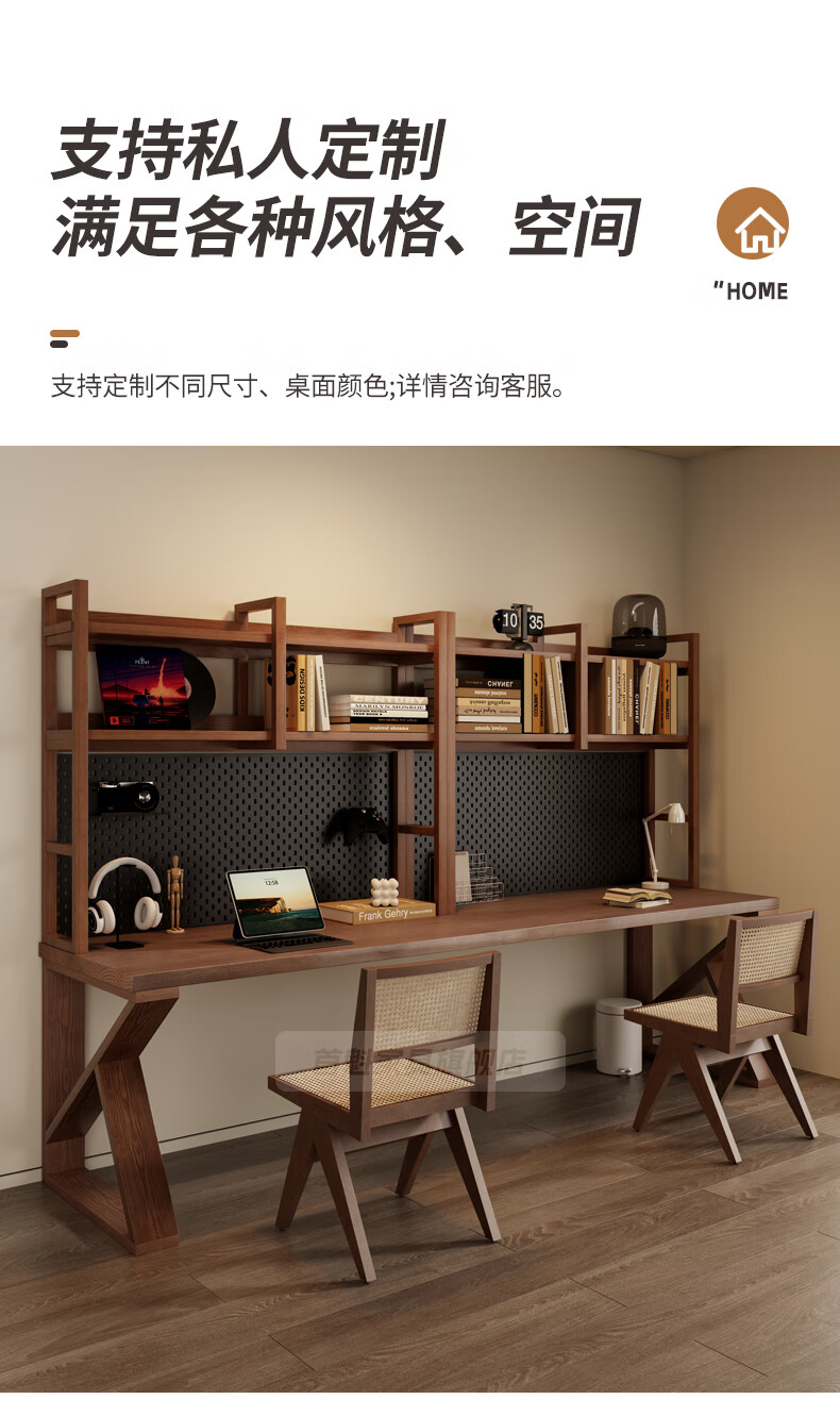 Shoukui solid wood desk bookshelf integrated office desk home double study computer table hole board desk bookcase long table deposit option, customization