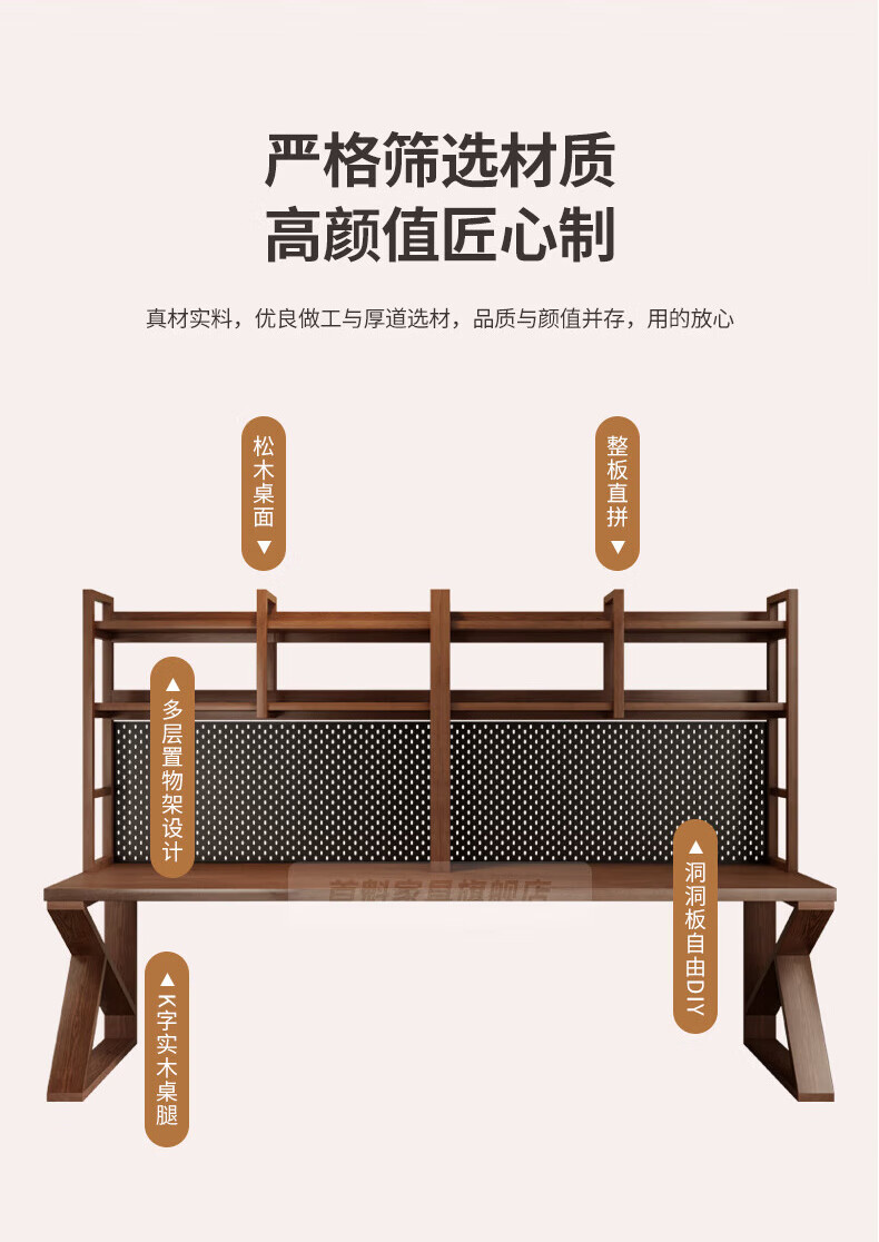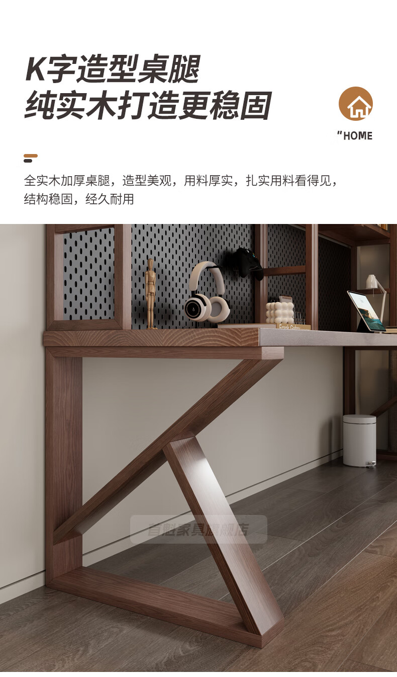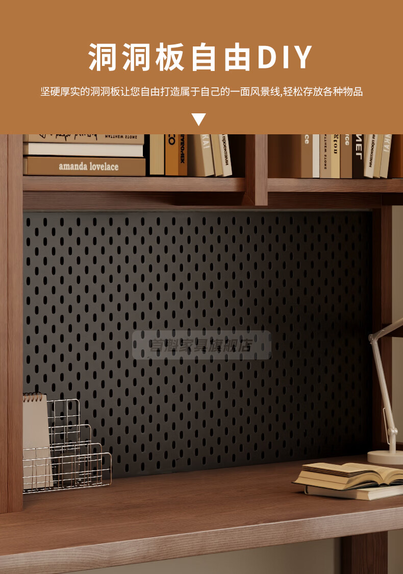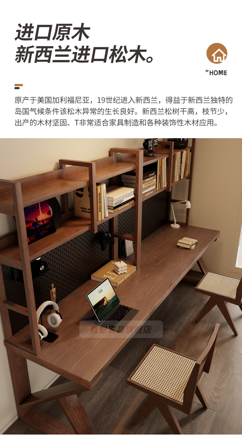 Shoukui solid wood desk bookshelf integrated office desk home double study computer table hole board desk bookcase long table deposit option, customization